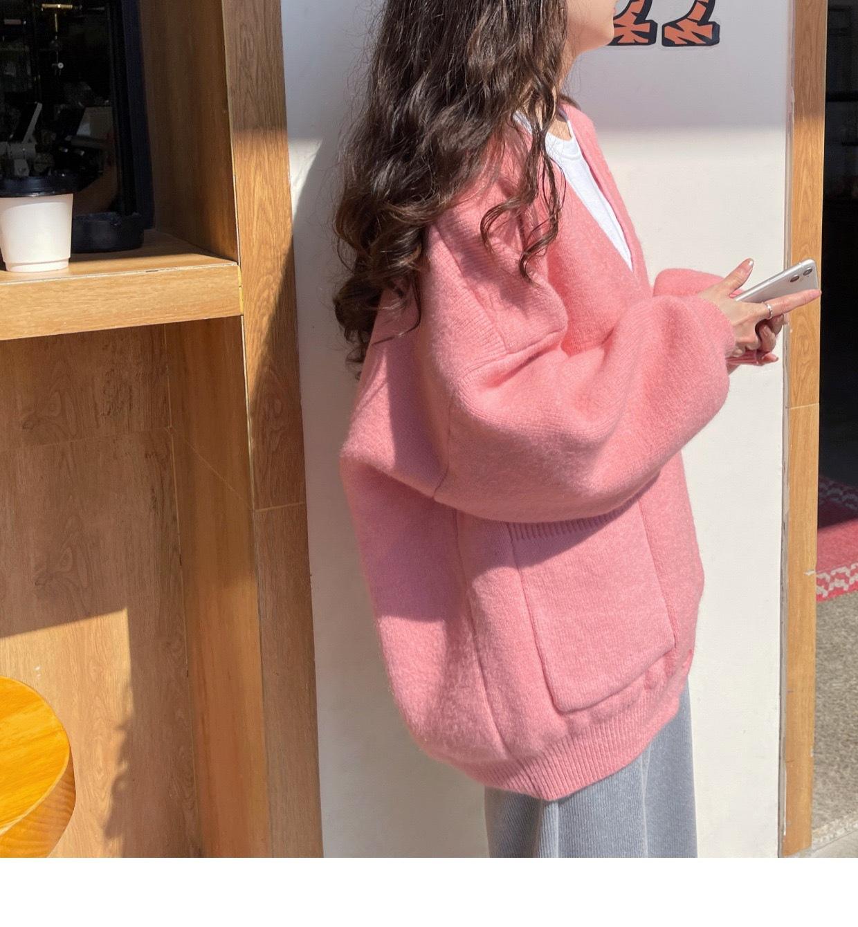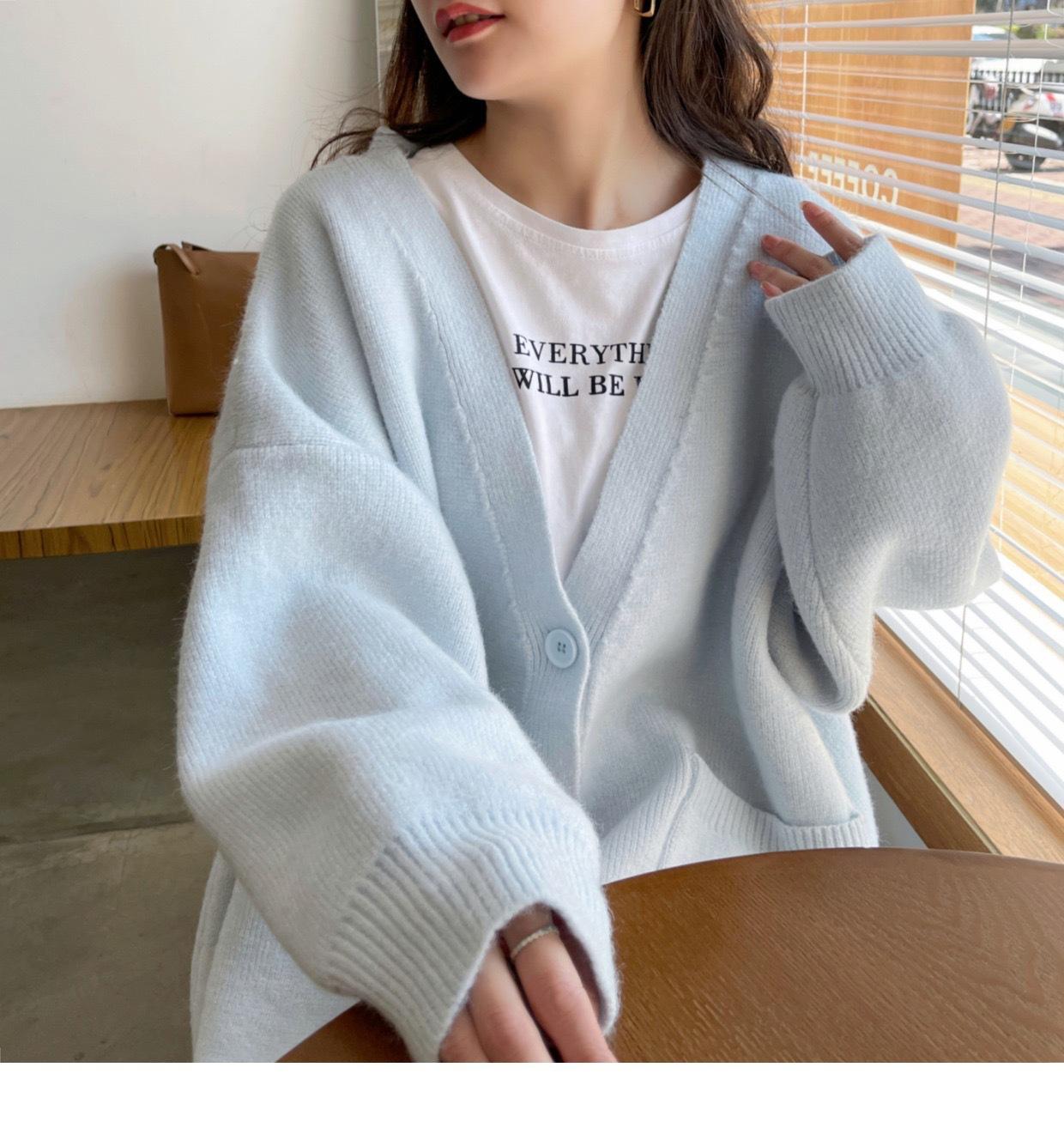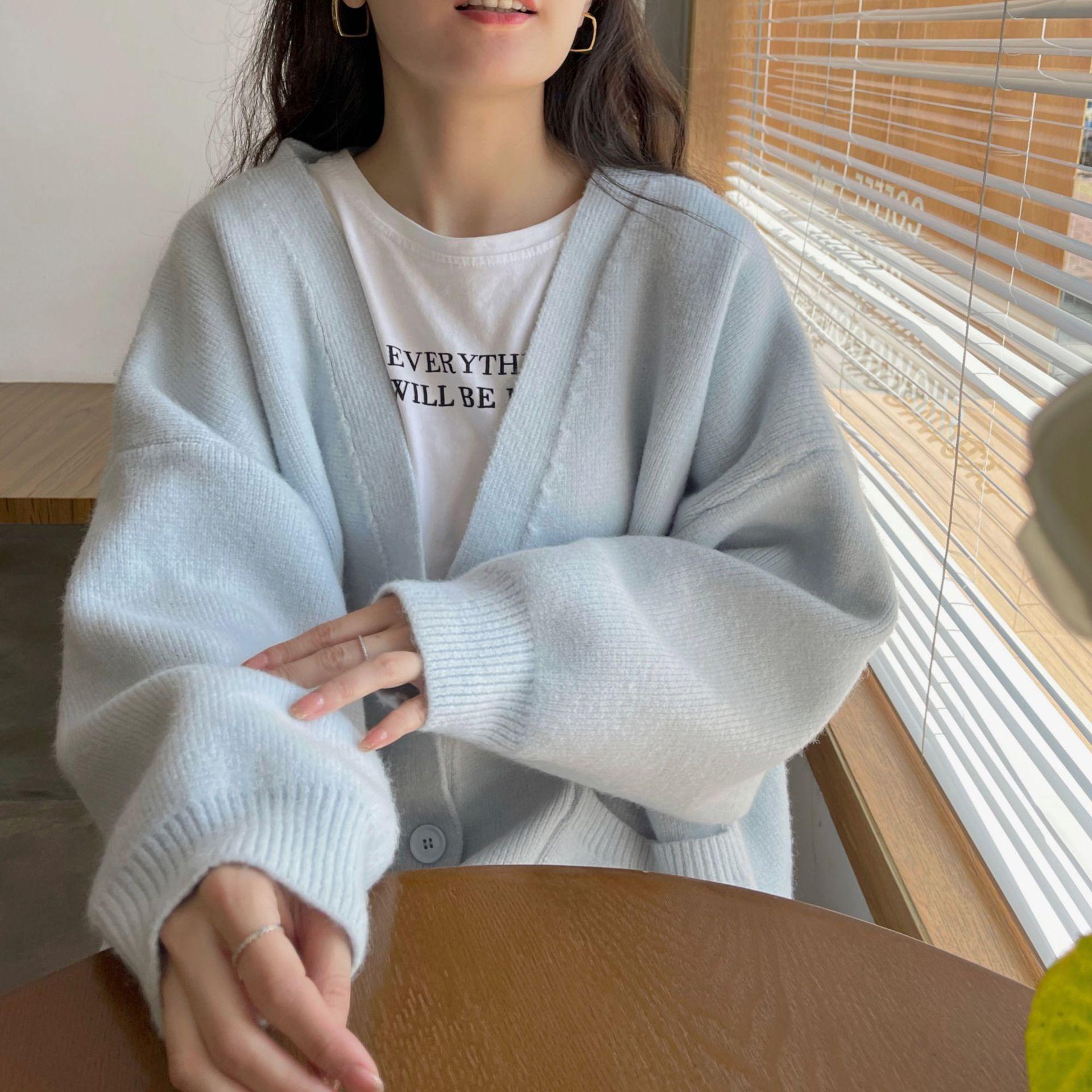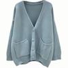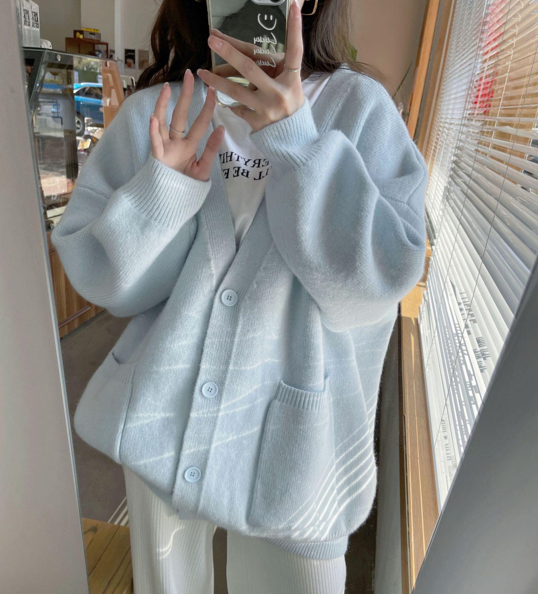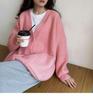 Cárdigan de Punto Estilo Coreano para Mujer 2024 Primavera y Otoño Nuevo Estilo Estilo Perezoso Holgado Cuello en V Color Puro Suave Ceroso Versátil Chaqueta Suéter