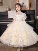 Vestido de noche para niñas, vestido de princesa, vestido de novia blanco con cola para niñas de flores, vestido de actuación de piano para espectáculos dulces