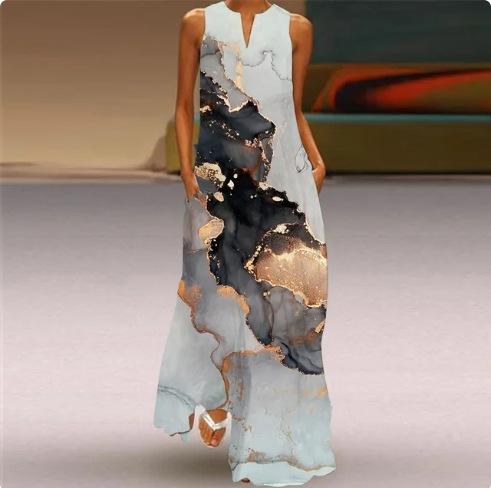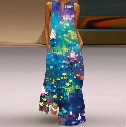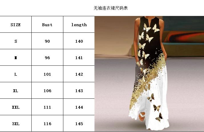 Vestido sexy estampado con cuello en V sin mangas para mujer, falda larga, exportación transfronteriza europea y americana, novedad de verano de 2024.