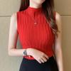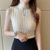 Nuevo suéter retro de cuello alto medio ajustado para mujer, top sin mangas que combina con todo