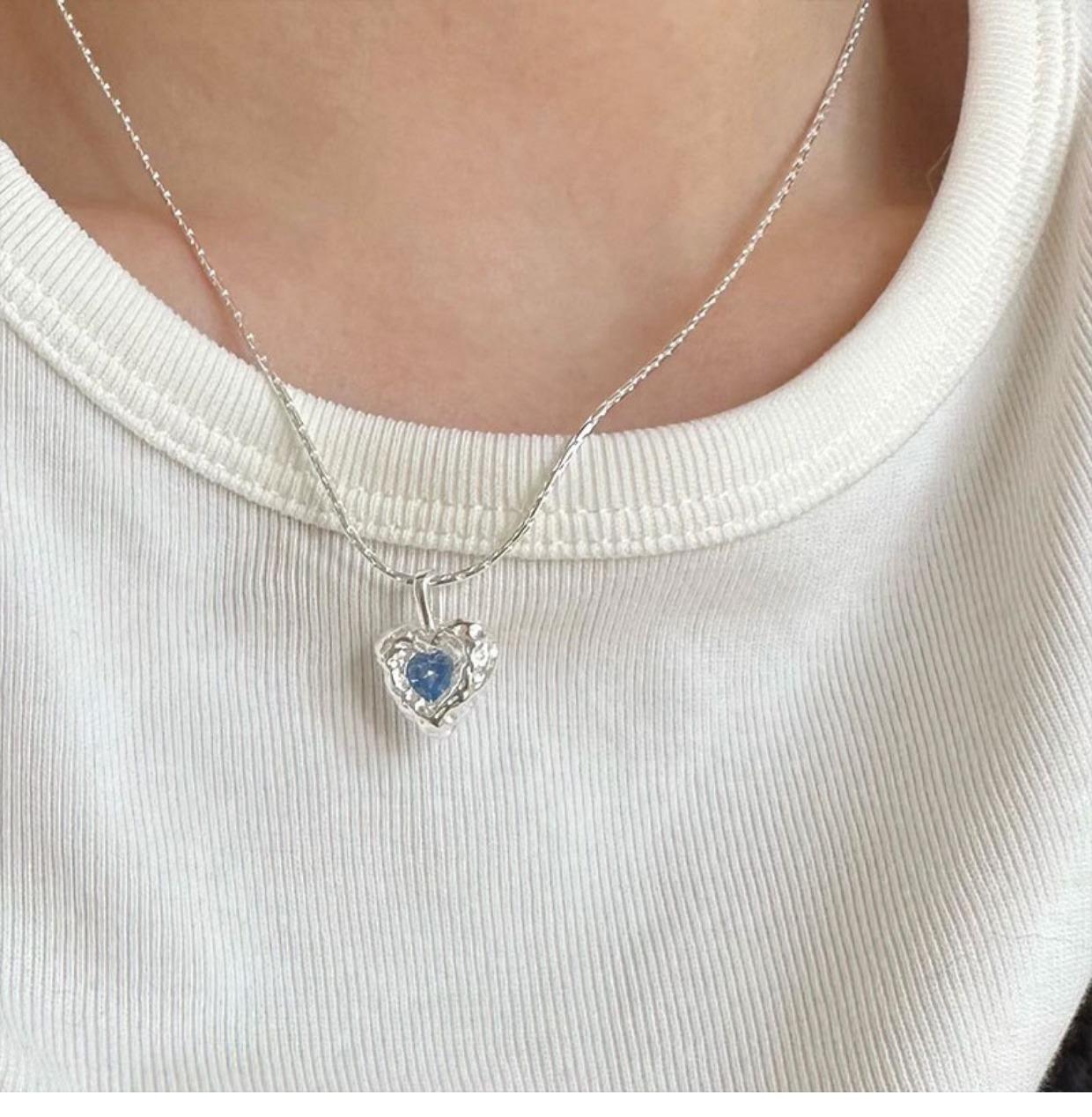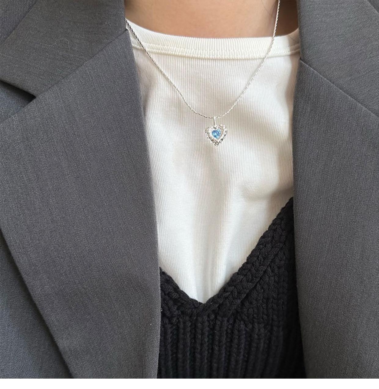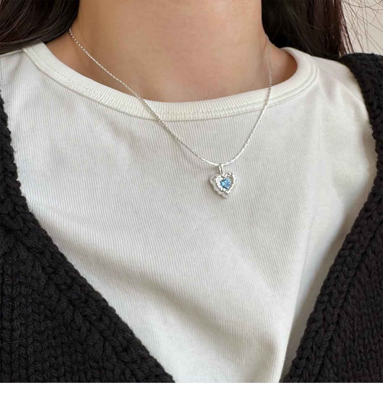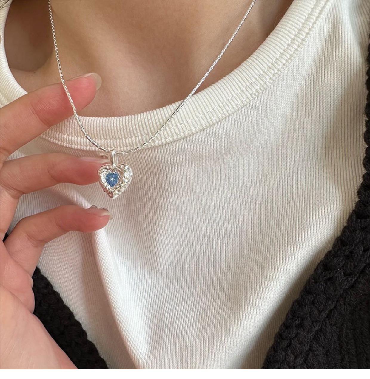 Collar de amor con textura irregular, diseño de nicho de circonita azul para mujer, cadena de clavícula elegante de lujo y alta calidad con forma de corazón.