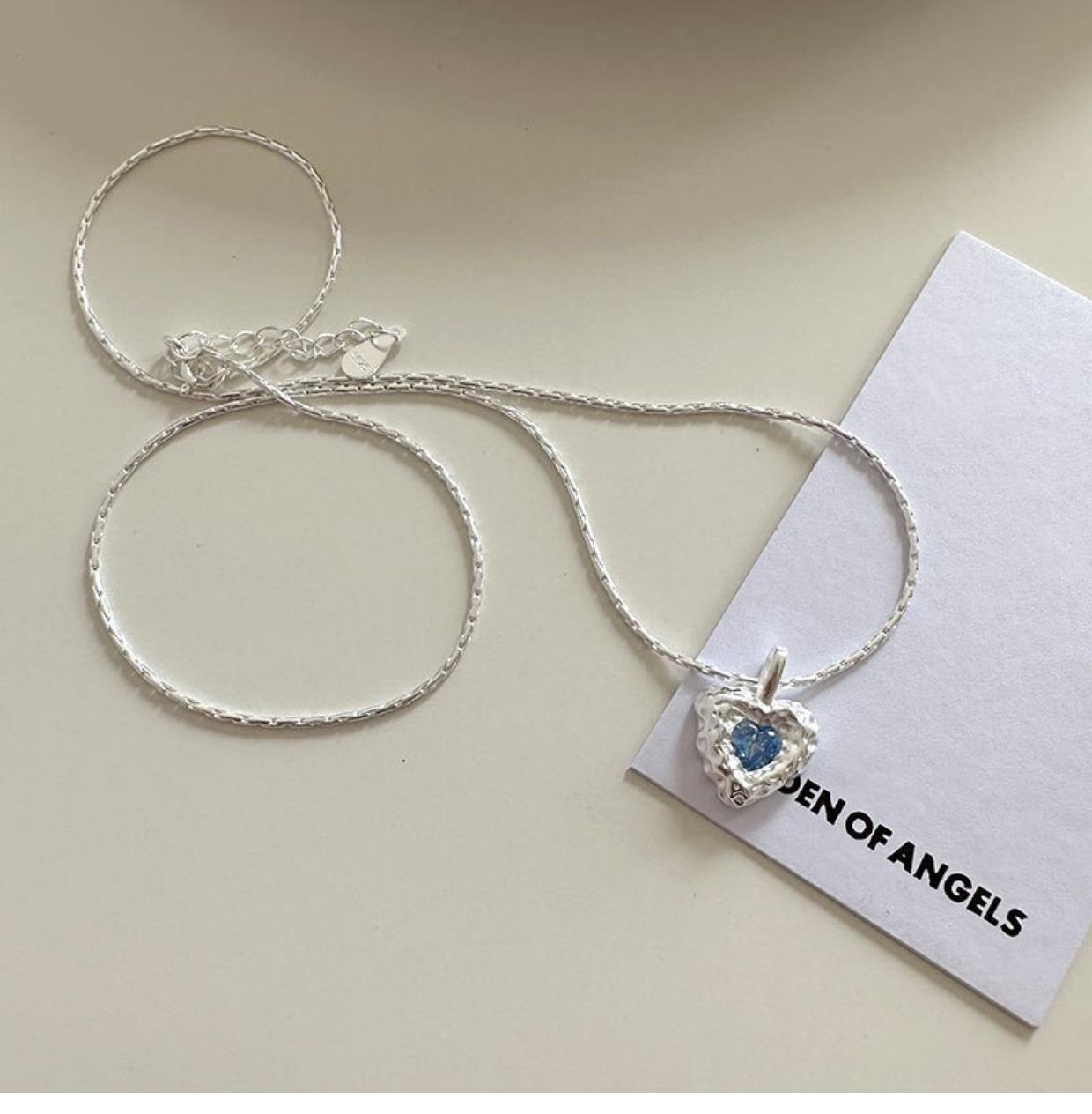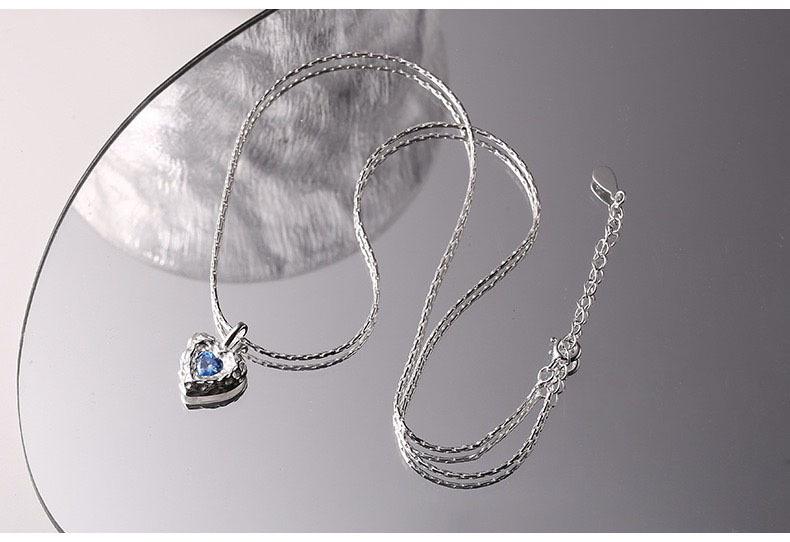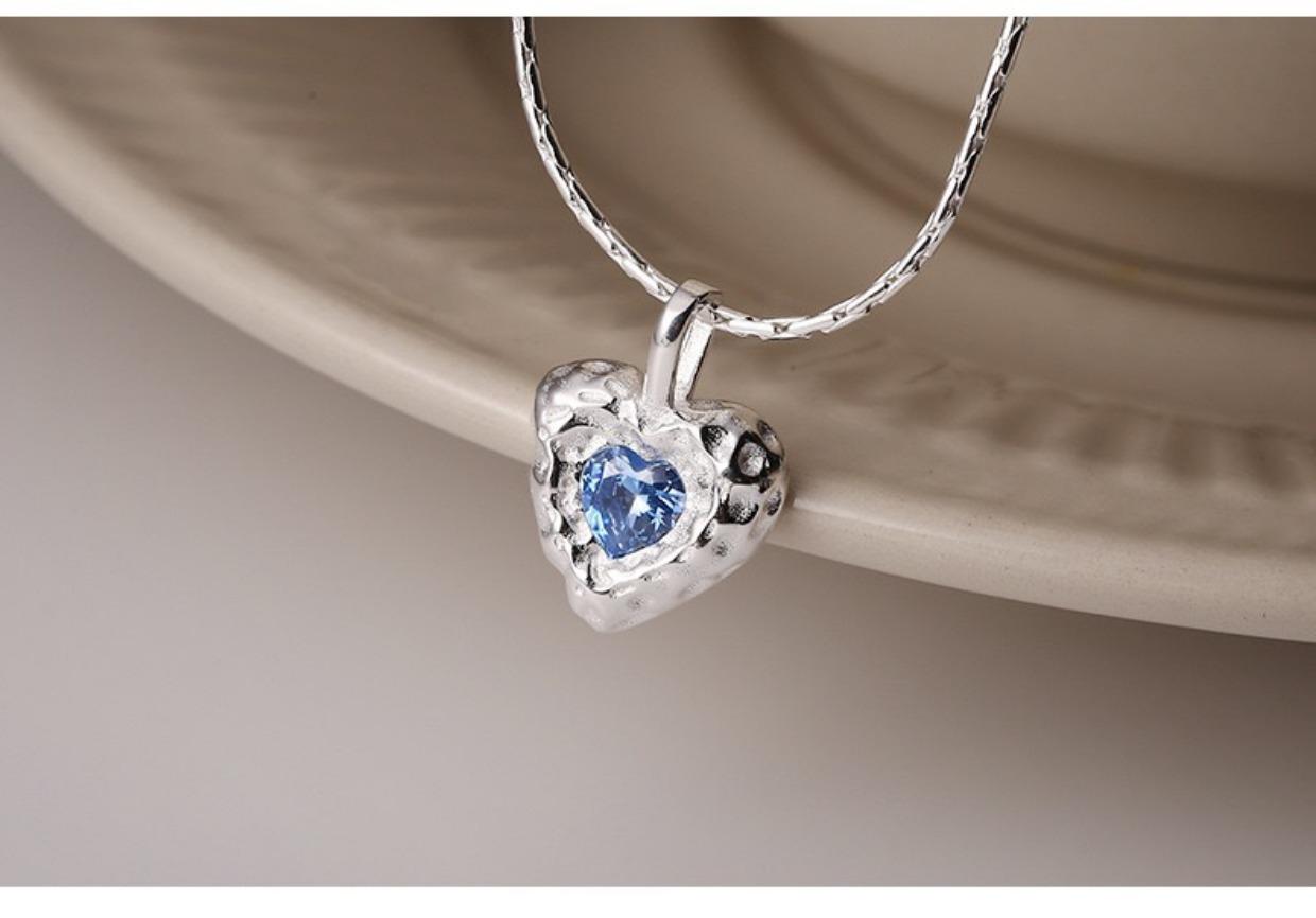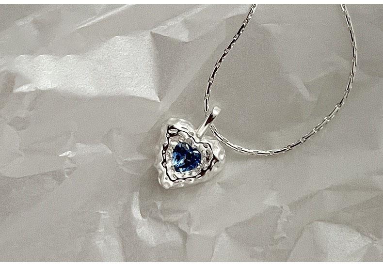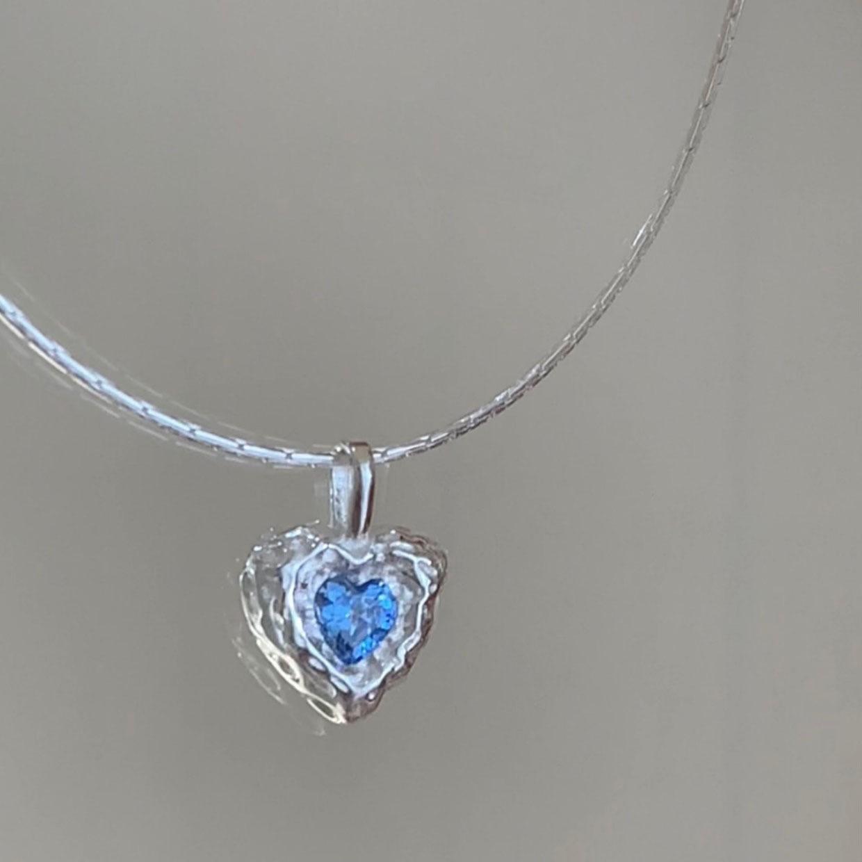 Collar de amor con textura irregular, diseño de nicho de circonita azul para mujer, cadena de clavícula elegante de lujo y alta calidad con forma de corazón.
