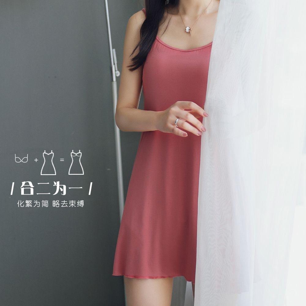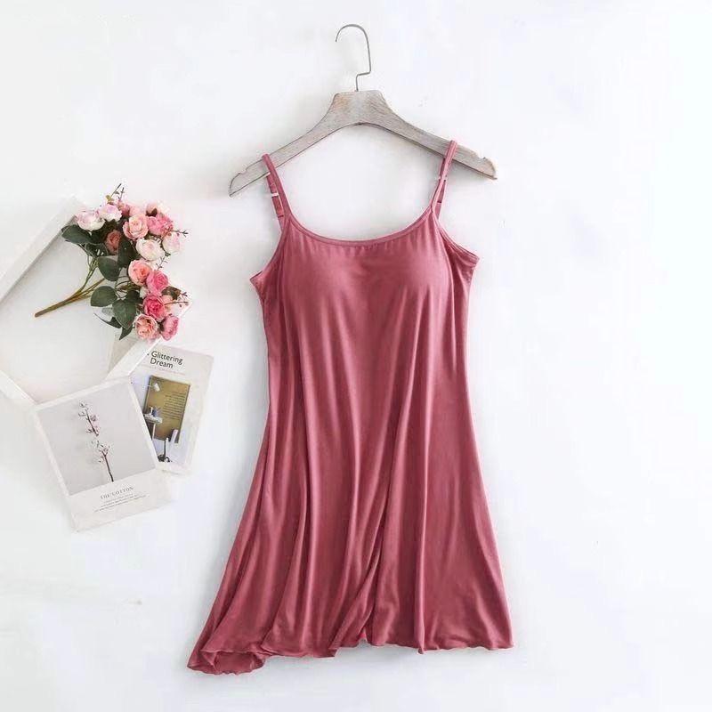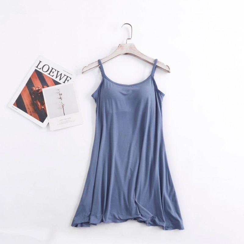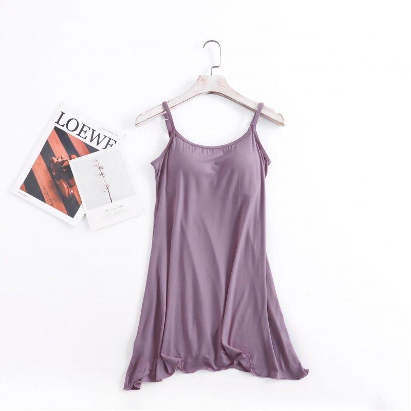Compra Pijama de modal para mujer, camisón de verano con tirantes, ropa de casa sin sujetador, falda interior corta sin mangas con almohadilla para el pecho al por mayor en Joom.pro