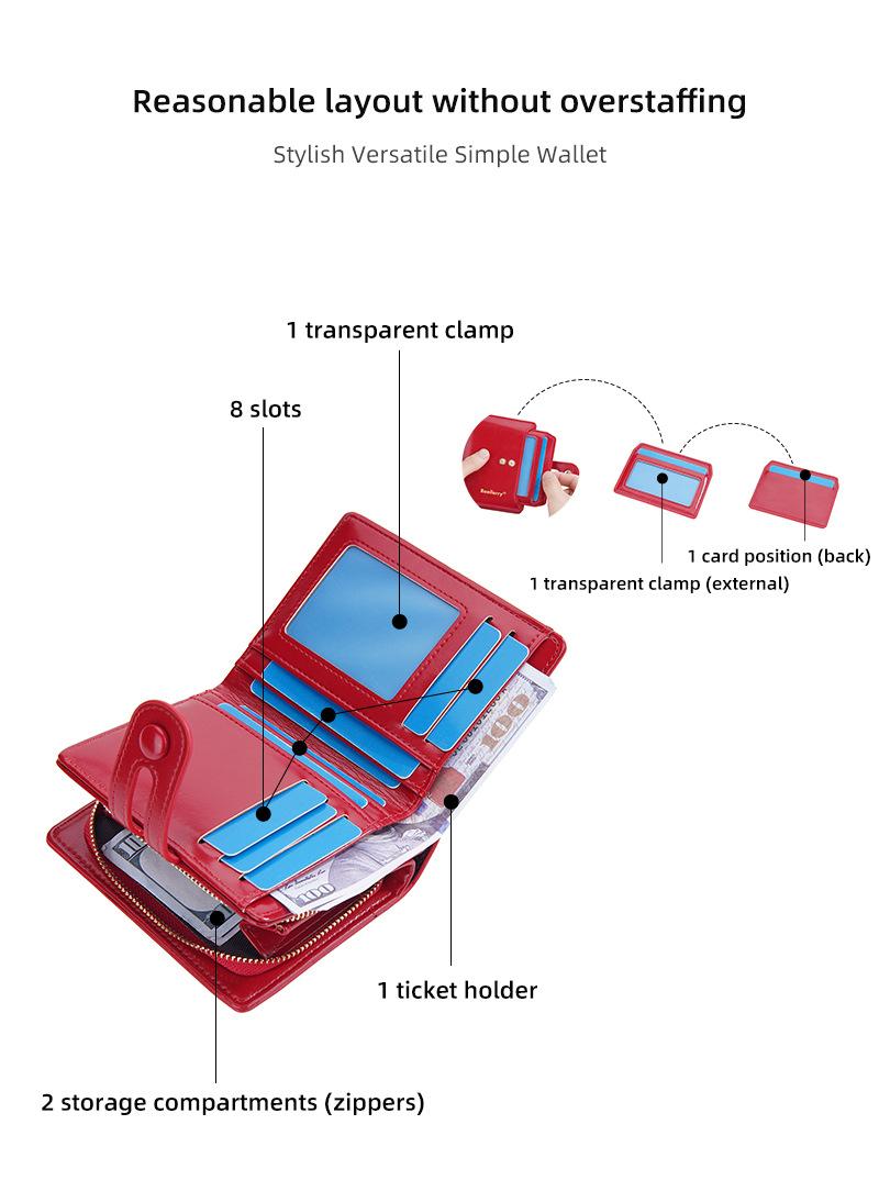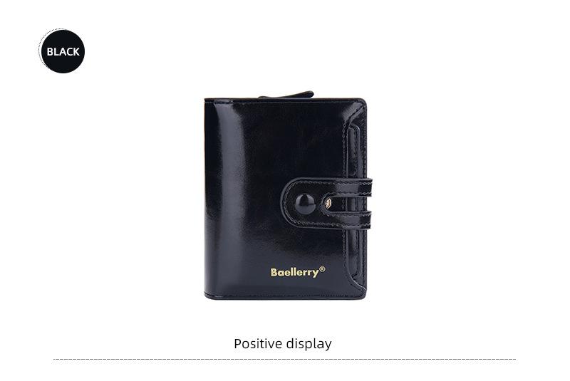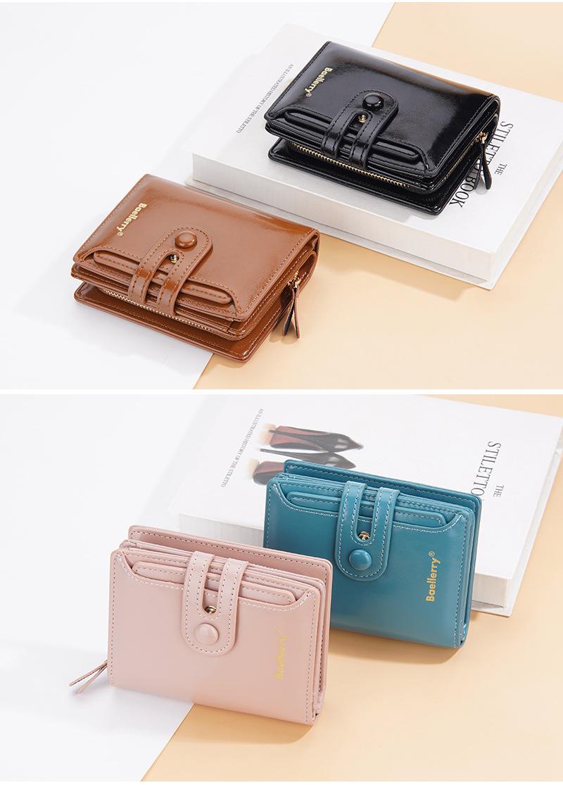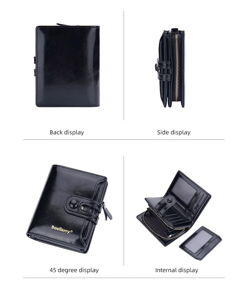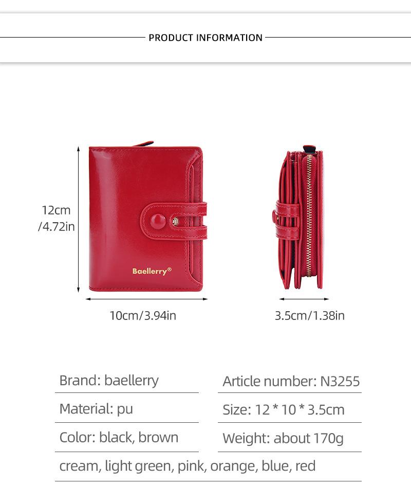 Compra Cartera Corta para Mujer baellerry Nueva Europea y Americana Cuero Cera de Aceite Multi Tarjeta Hebilla Cartera Monedero con Cremallera al por mayor en Joom.pro