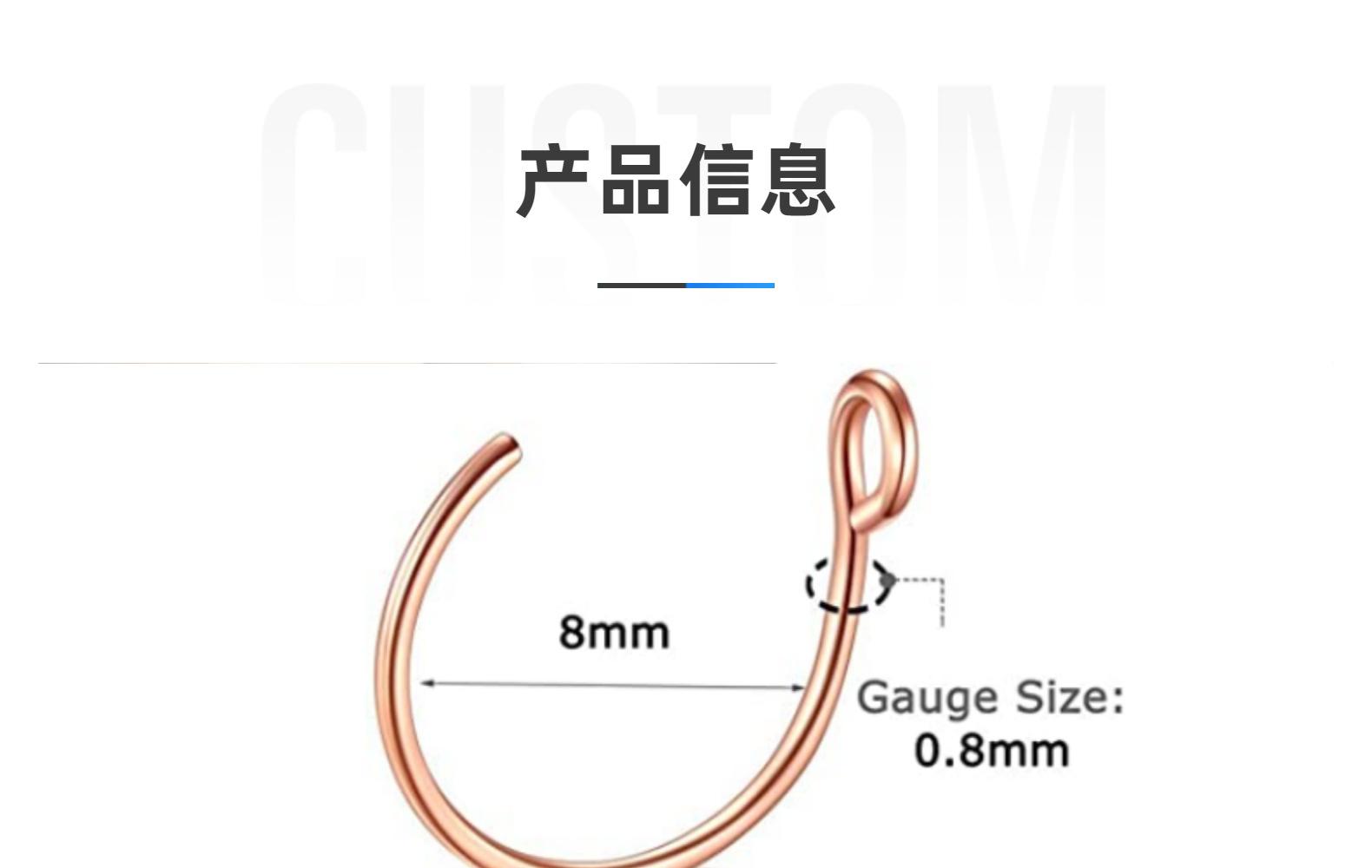 Exclusivamente transfronterizo para personalidad de la moda europea y americana, anillo de nariz sin orificio, joyería de perforación de nariz tipo C de acero inoxidable.