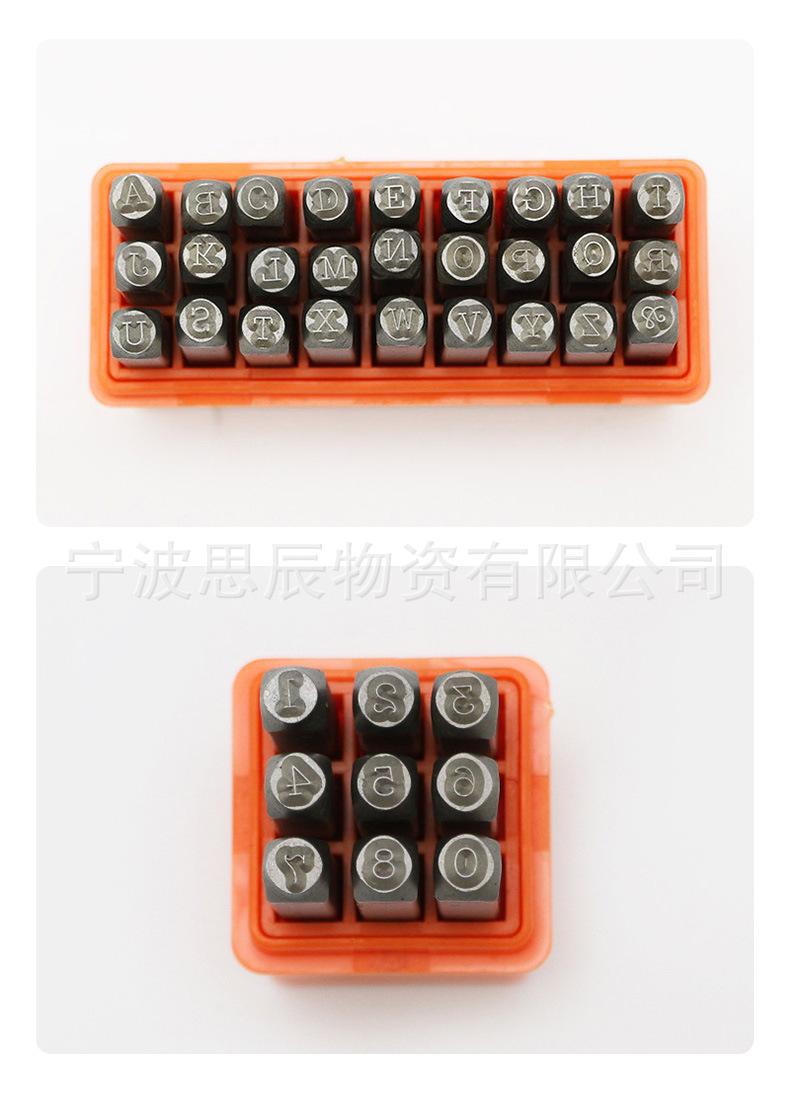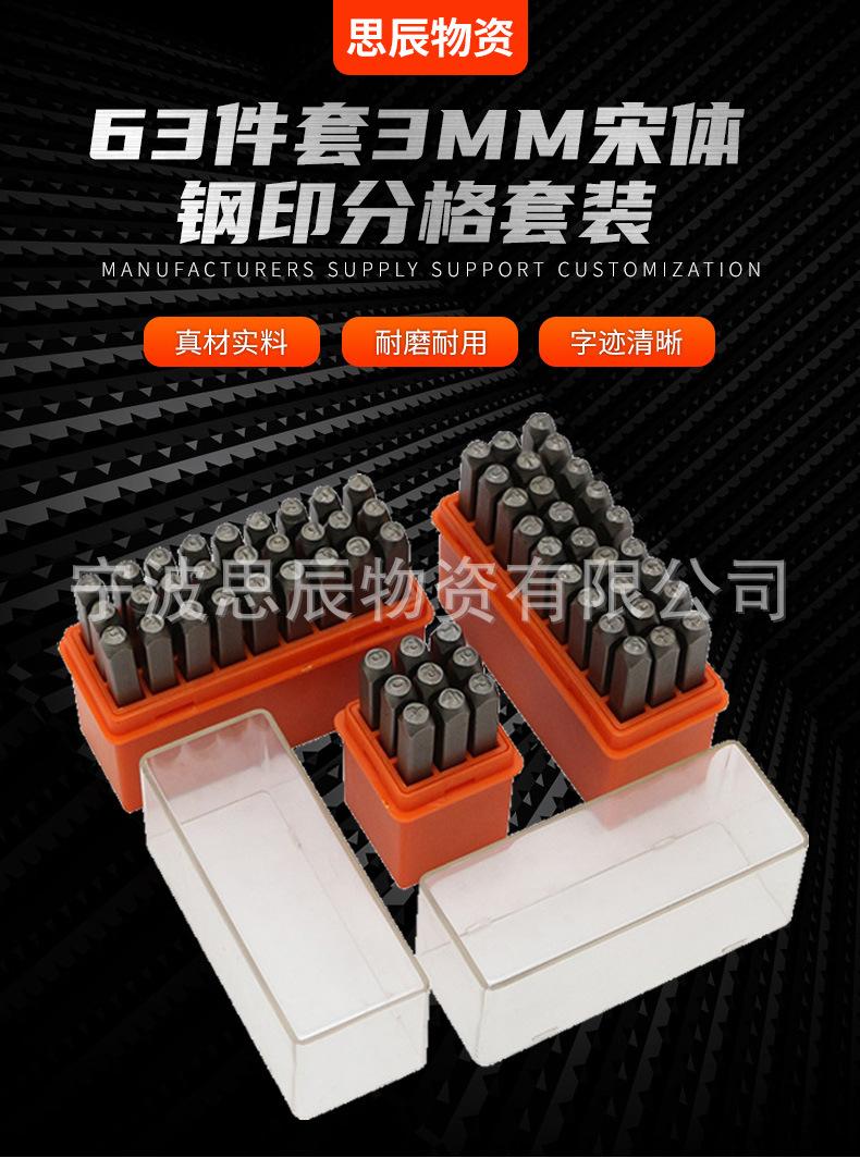 Estuche de 63 piezas de 3 mm con números, letras inglesas y símbolos, cabeza de acero, troquelado de caracteres numéricos de acero, impresión de acero, juego de tres piezas