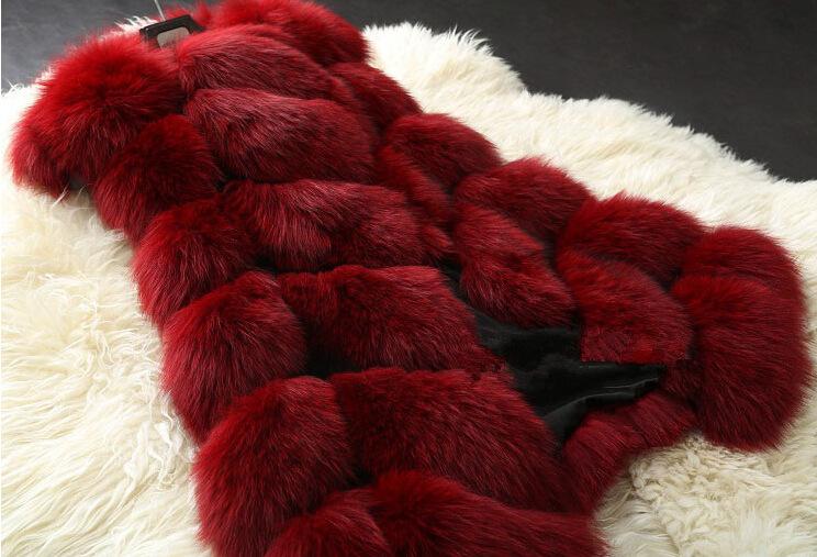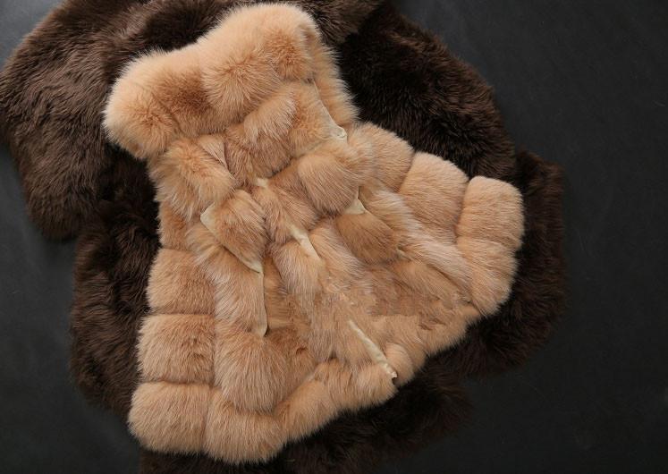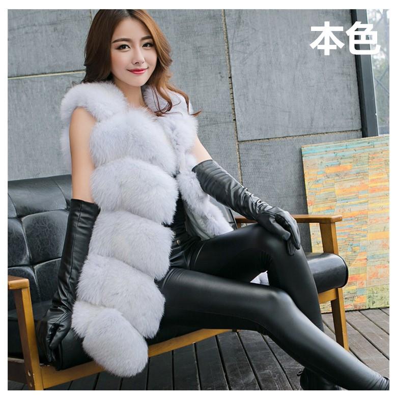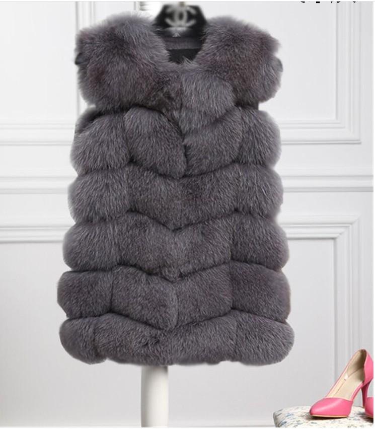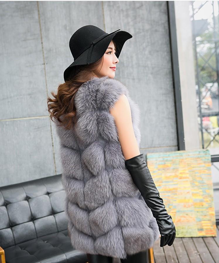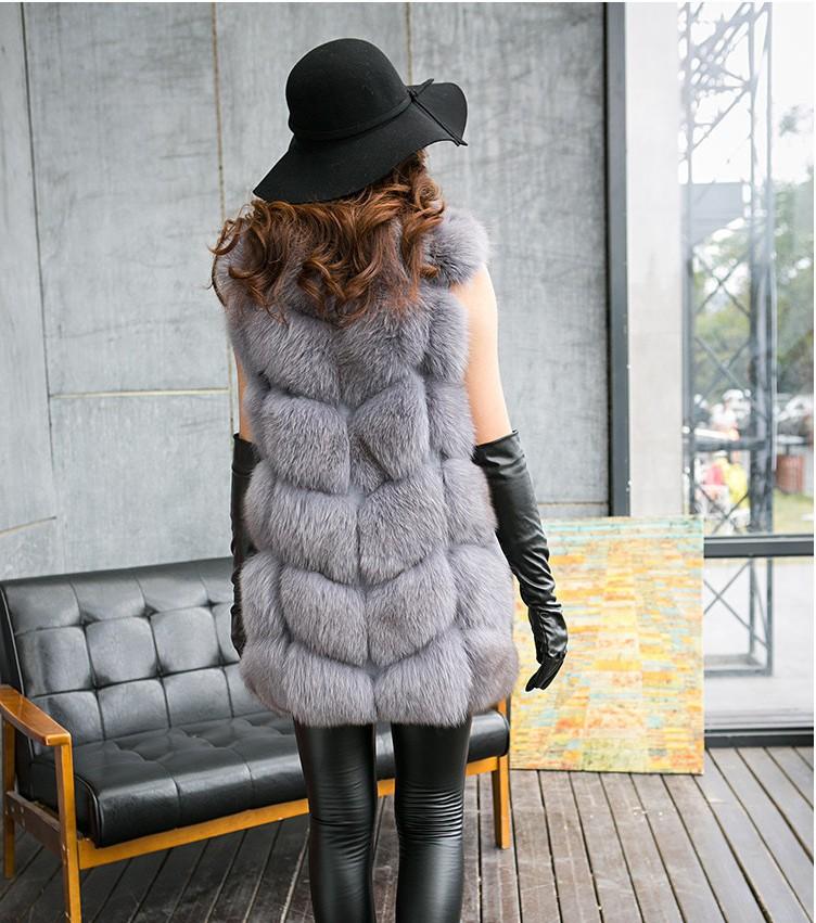 Fábrica de pieles de Haining, venta al por mayor, otoño e invierno, nuevo abrigo de piel de zorro para mujer, abrigo de piel informal largo, chaleco de piel sintética