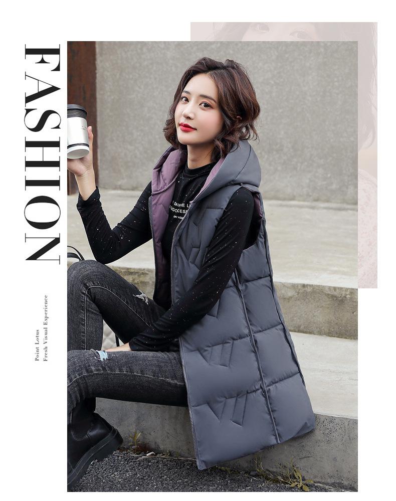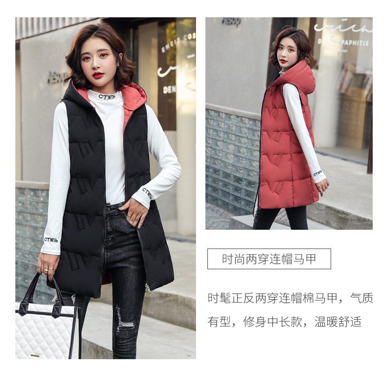 Chaleco de plumón de algodón de doble cara para mujer, nuevo chaleco de plumón de invierno 2024, grueso, de longitud media y doble cara.