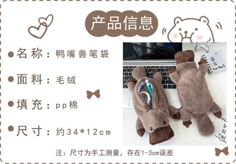 Estuche de Lápices de Peluche de Dibujos Animados de Gran Capacidad Ornitorrinco Papelería Niños Lindo Estuche para Lápices Bolsa de Almacenamiento Multifuncional Venta al por Mayor