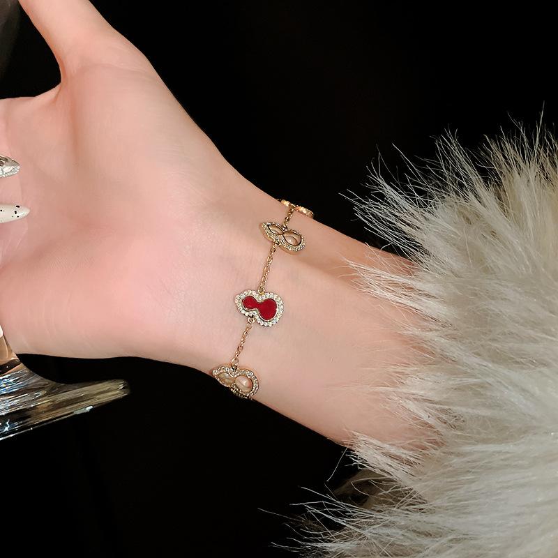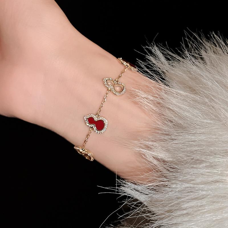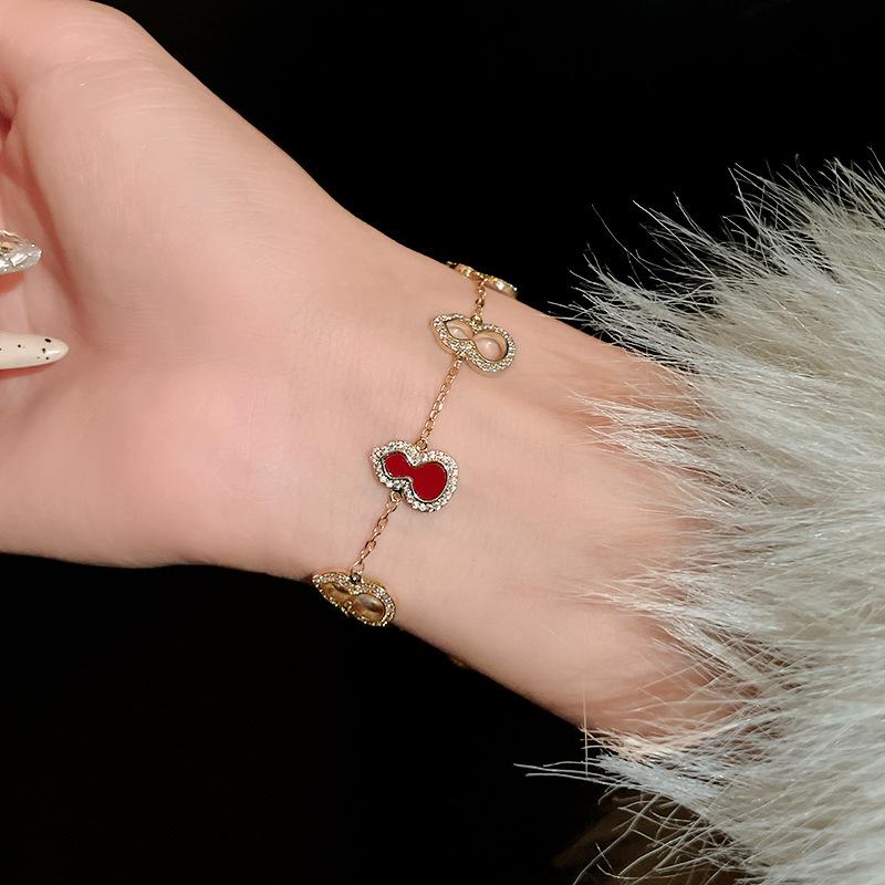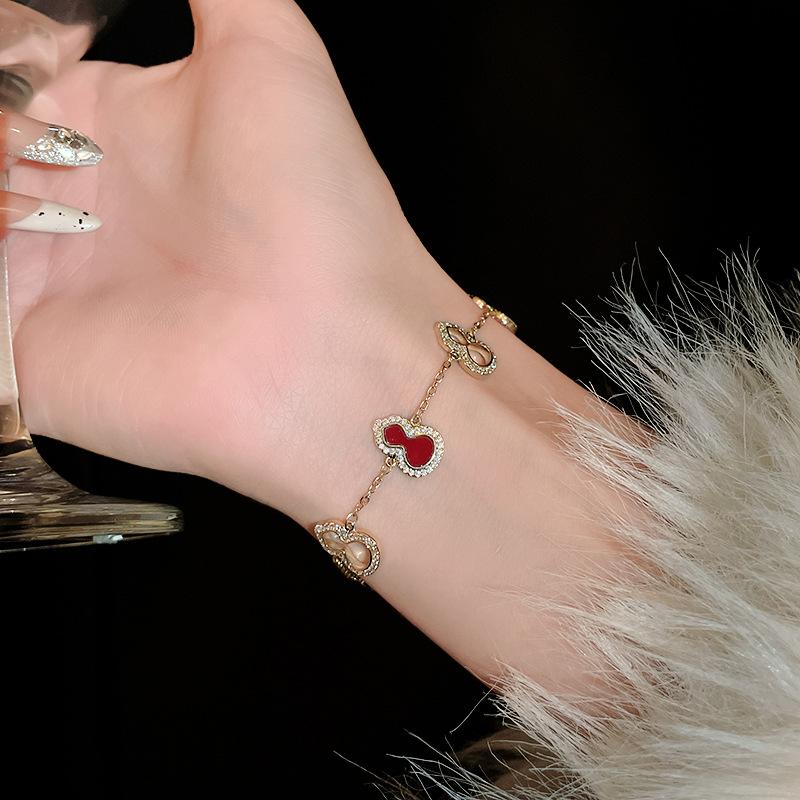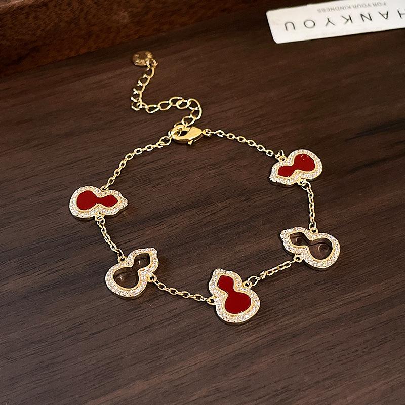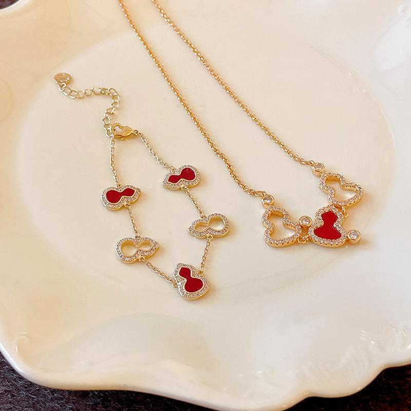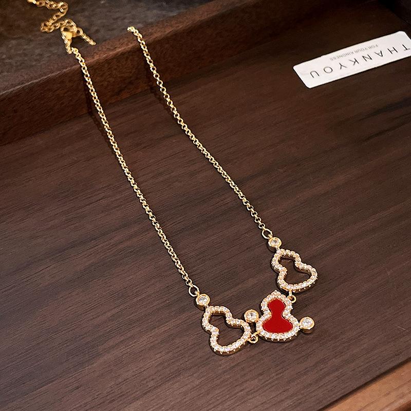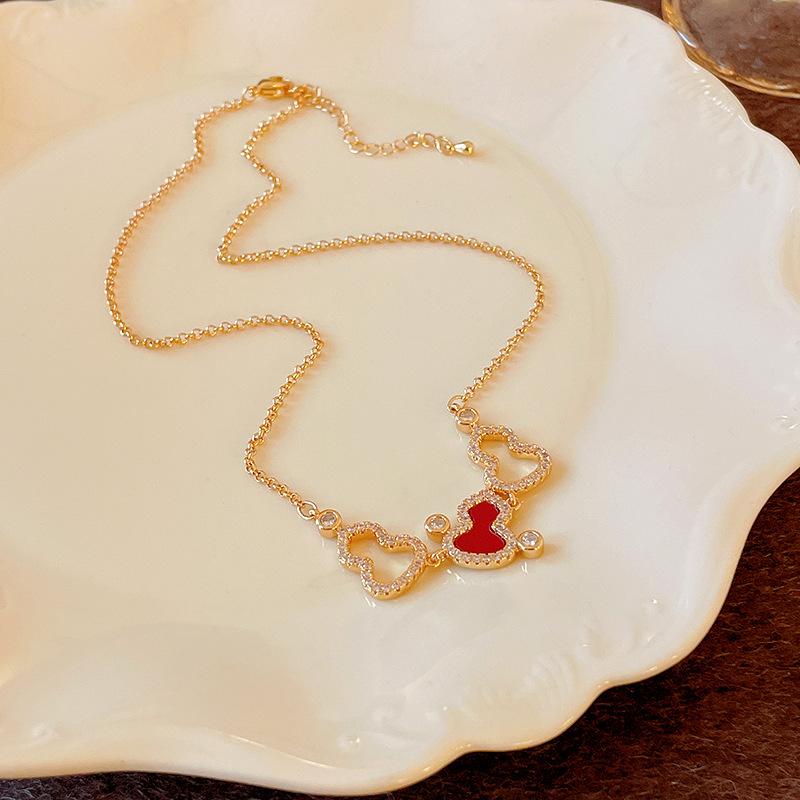 Collar con colgante hueco de calabaza de circón electrochapado en oro real Nuevo estilo chino Lujo ligero Elegante Cadena para clavícula Collar de moda