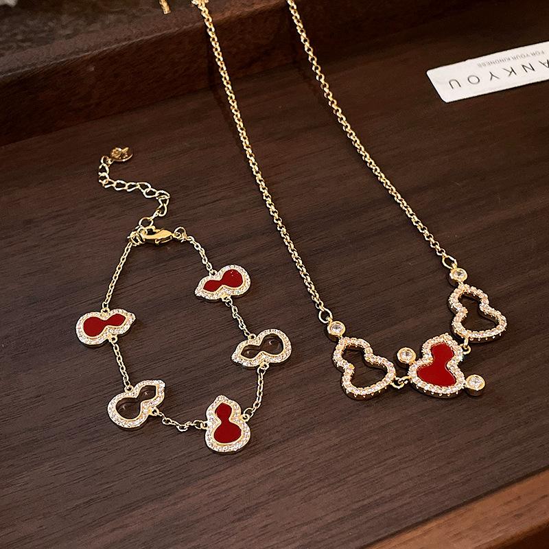 Necklace-gold-red (real gold plating), Bracelet-Gold-Red, Bracelet-silver