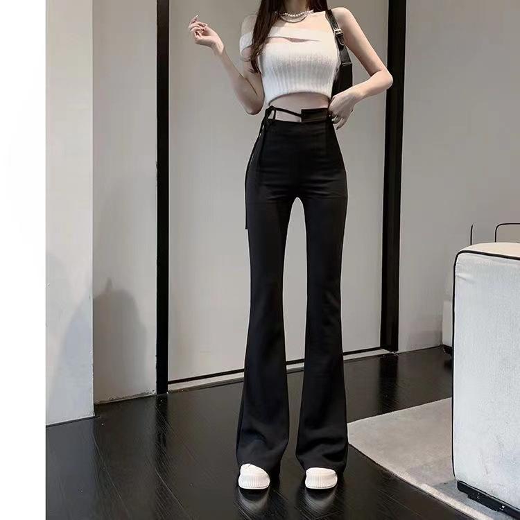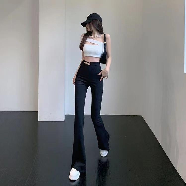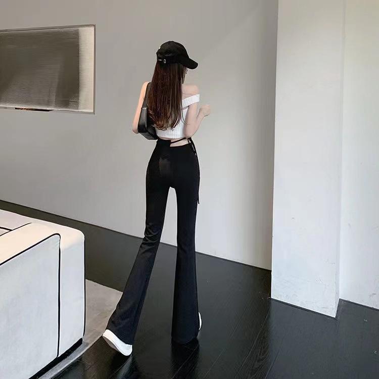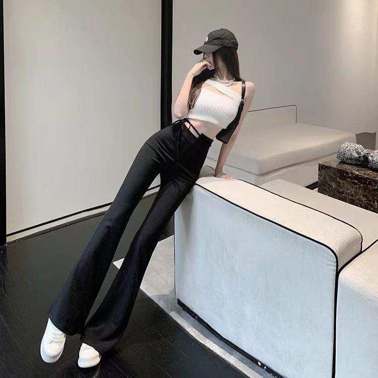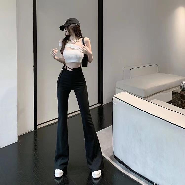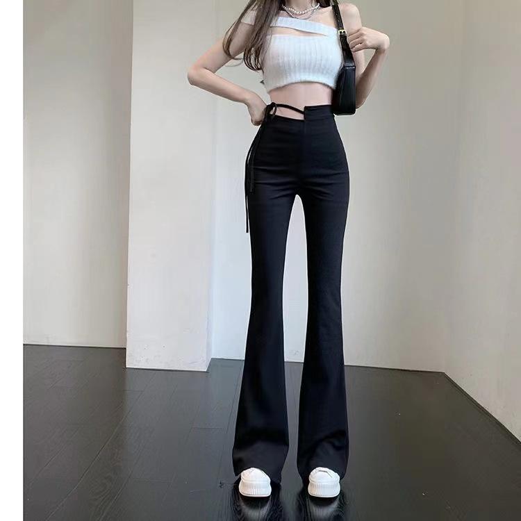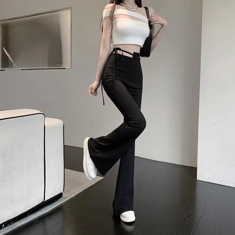 Pantalones acampanados micro para mujer, verano 2023, sexys, de cintura alta irregulares, con cordones, ajustados, adelgazantes, con diseño de herradura, pantalones casuales para fregar