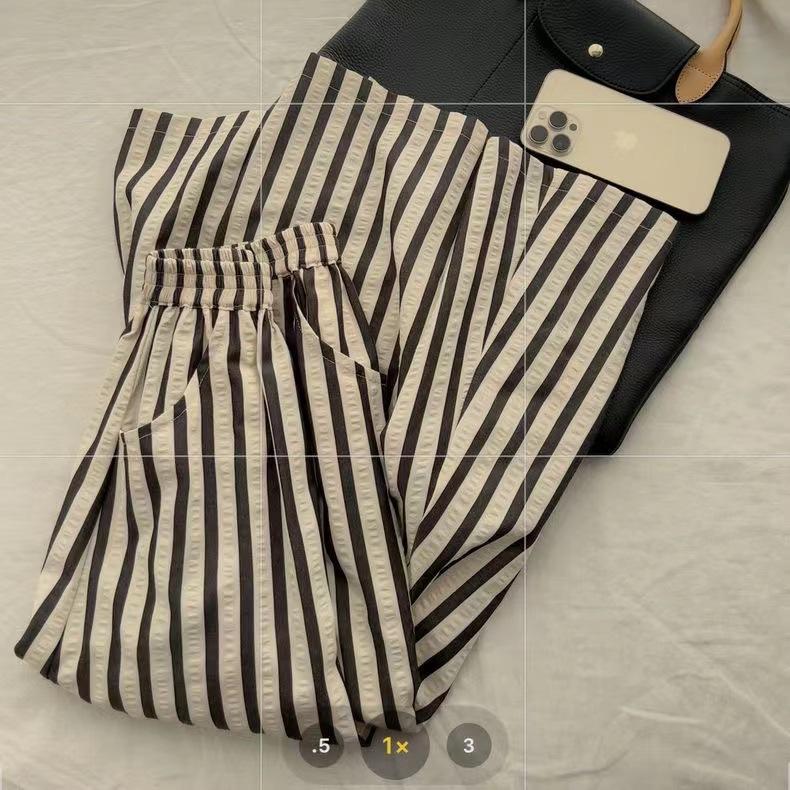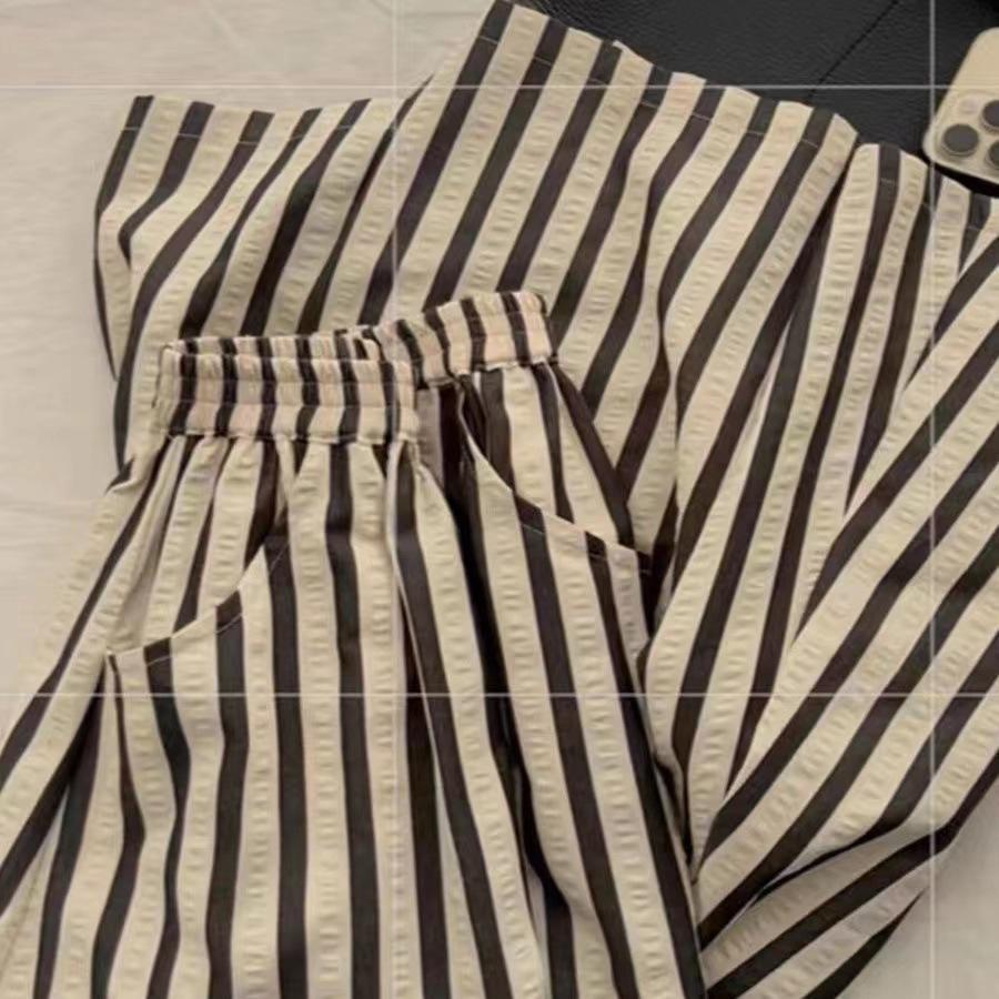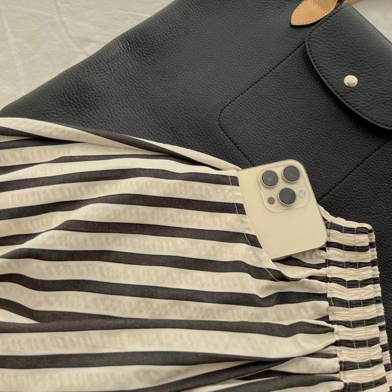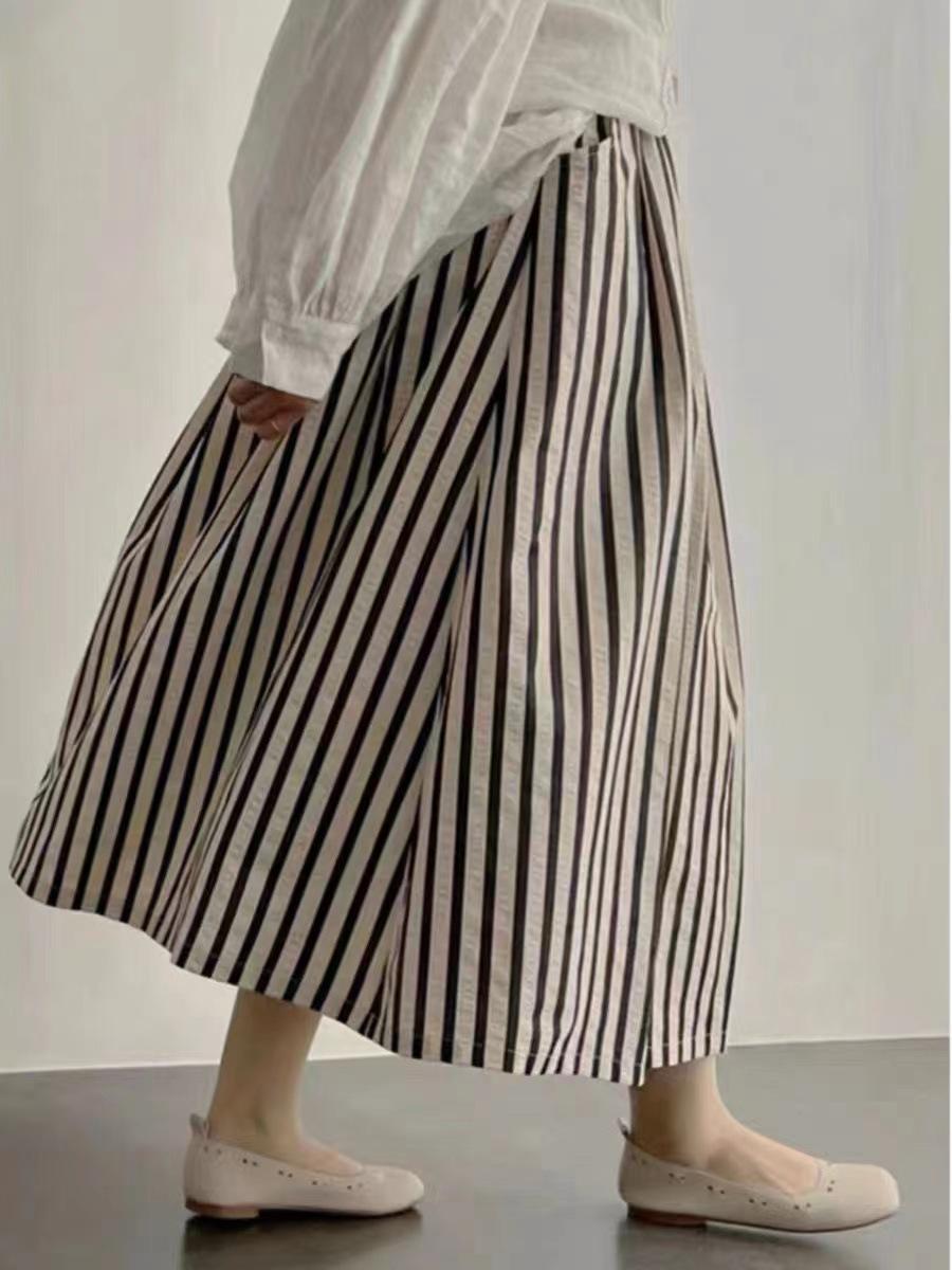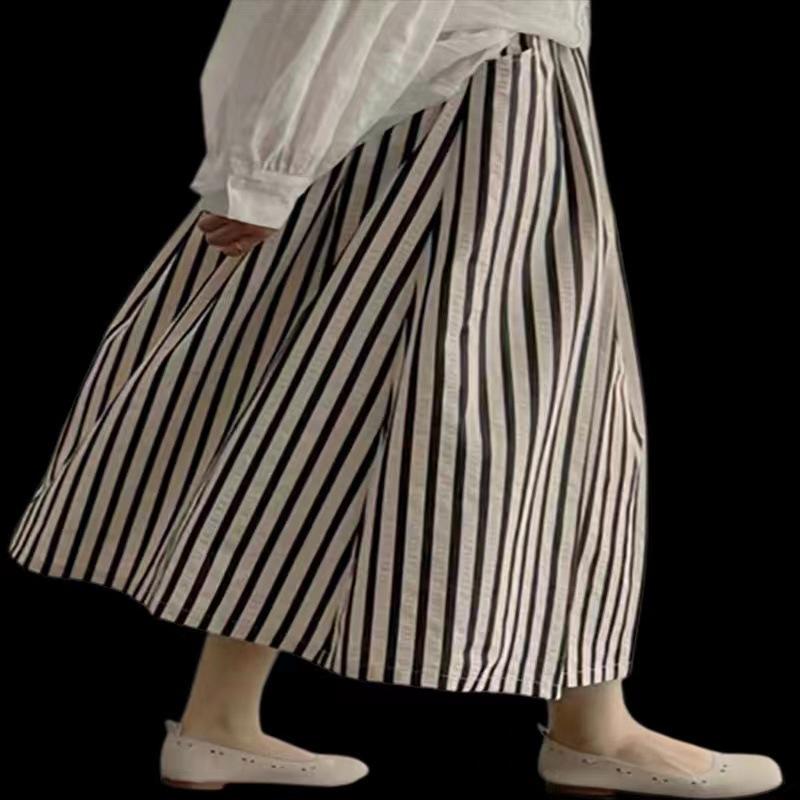 Falda Elástica Midi Línea A Falda Grande con Vuelo Falda Paraguas para Mujer Verano Nuevo Estampado a Rayas Color Cintura Alta Versátil