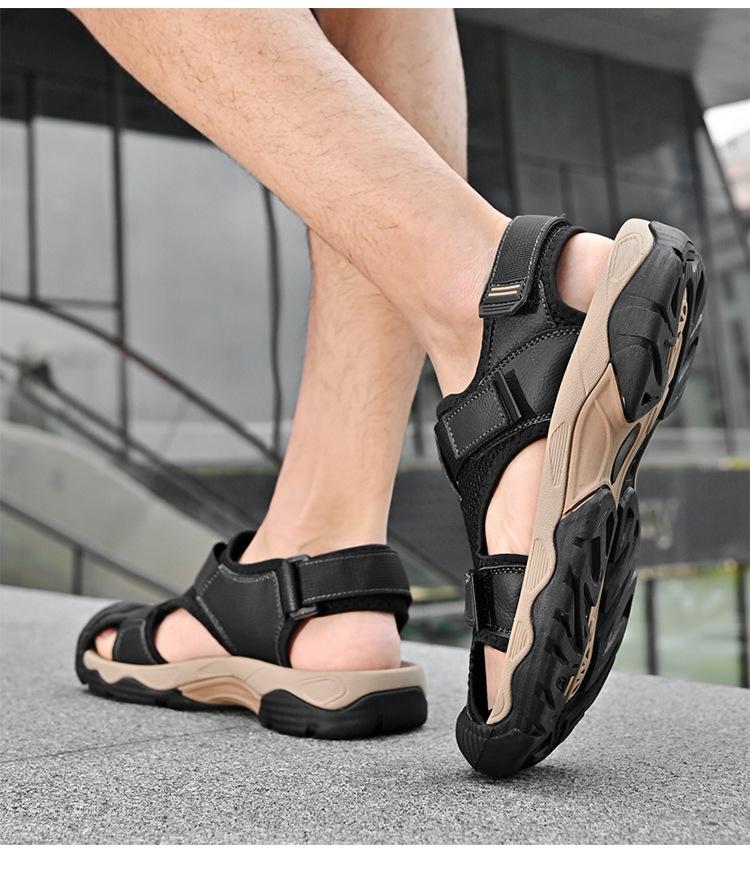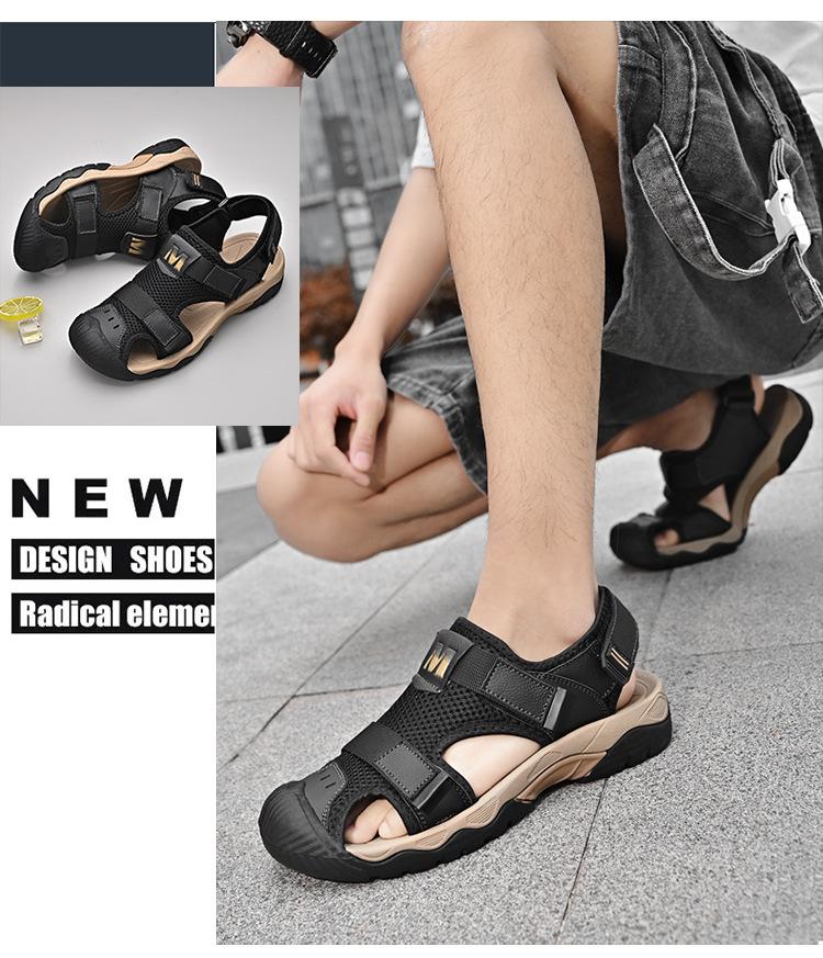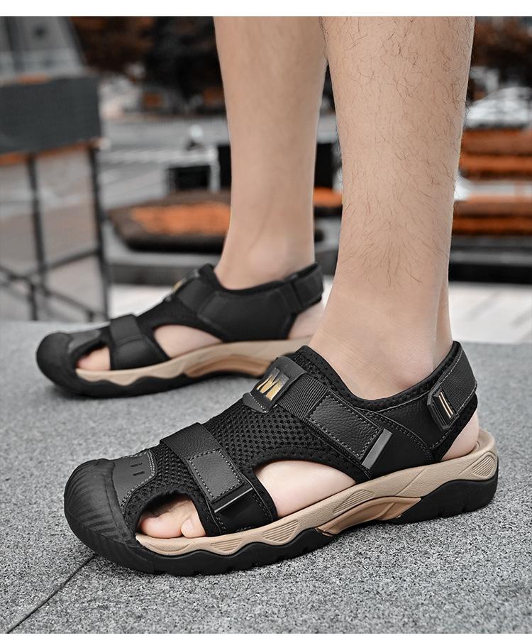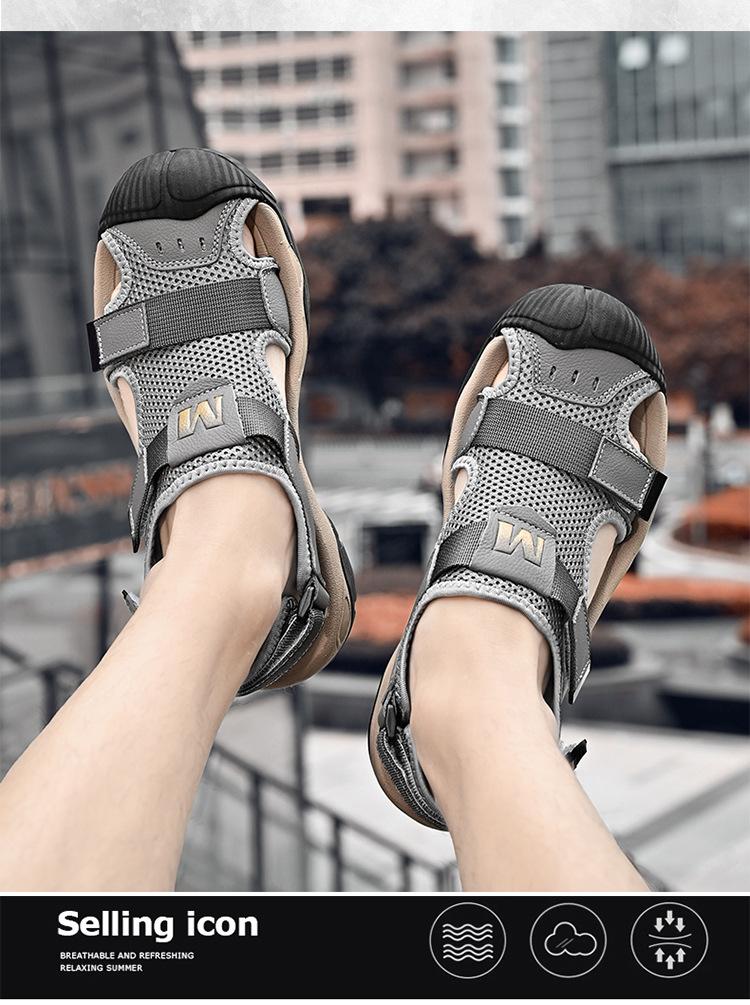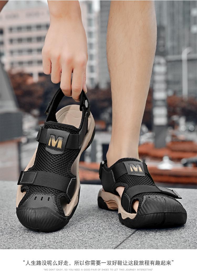 Nuevas sandalias de punta cerrada de talla grande transfronterizas, sandalias deportivas de playa de alta calidad para hombre, zapatos de hombre con agujero hueco y velcro.
