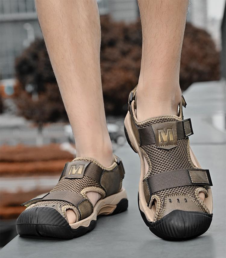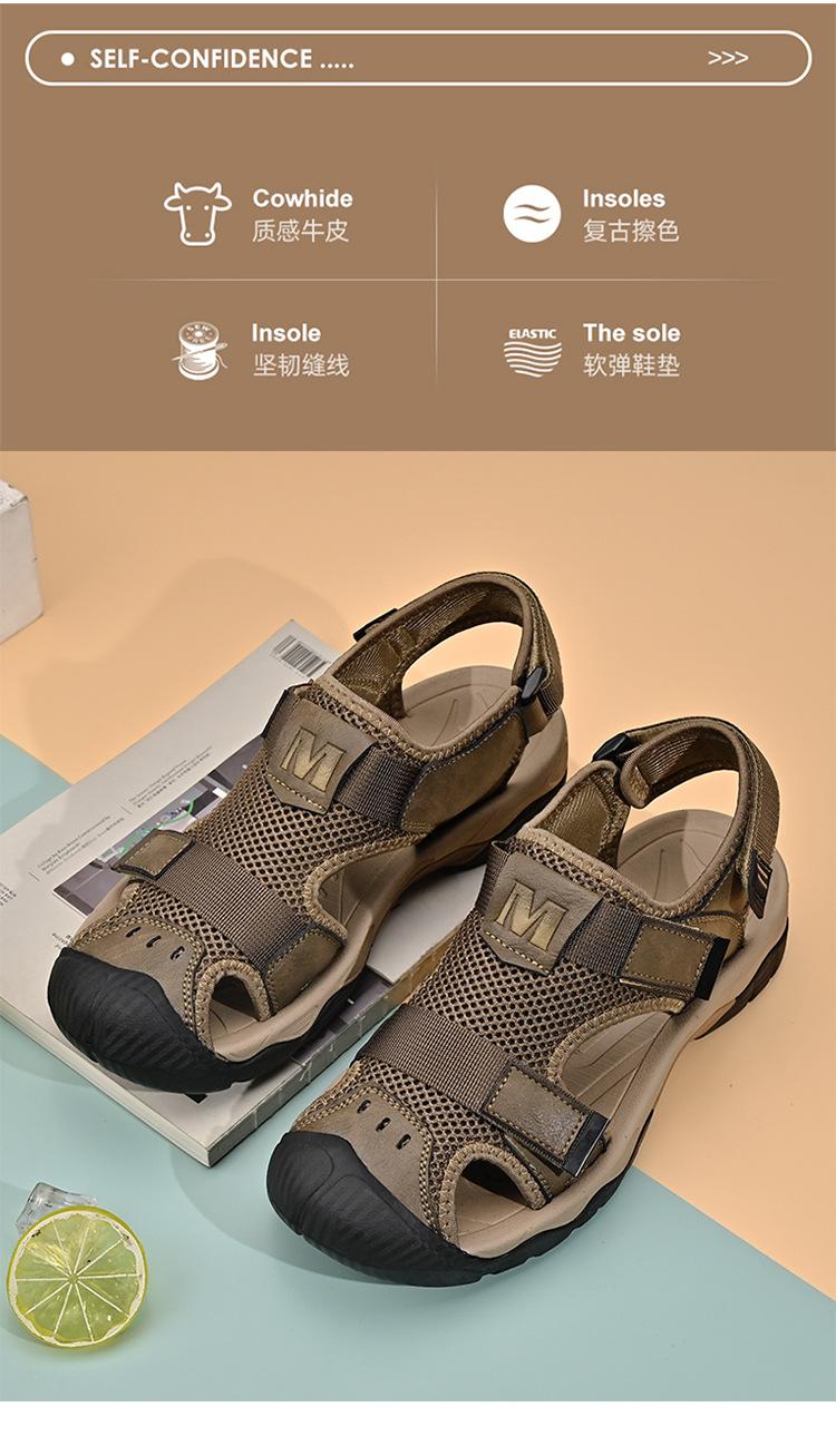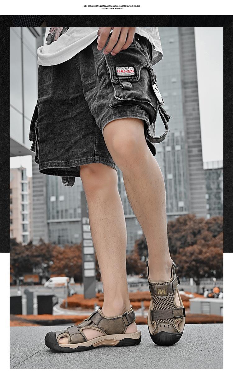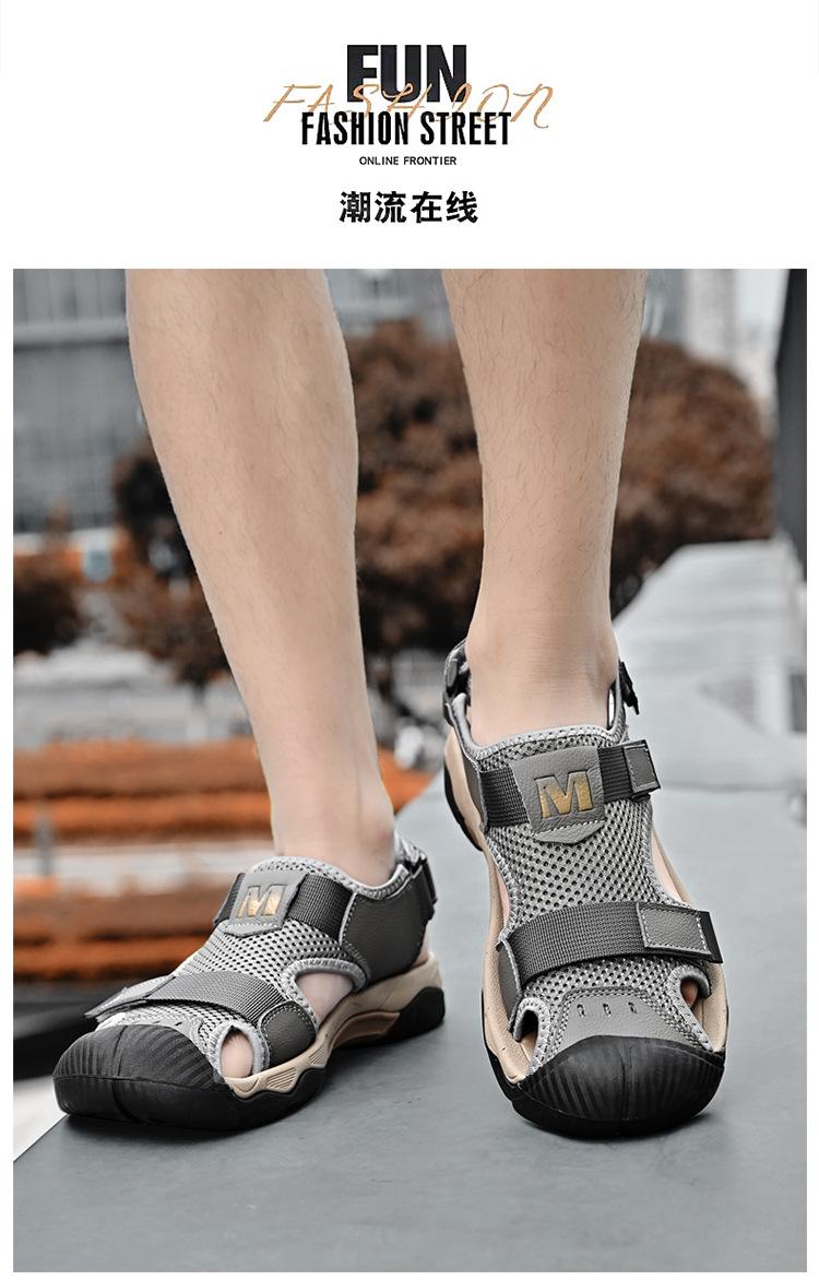 Nuevas sandalias de punta cerrada de talla grande transfronterizas, sandalias deportivas de playa de alta calidad para hombre, zapatos de hombre con agujero hueco y velcro.