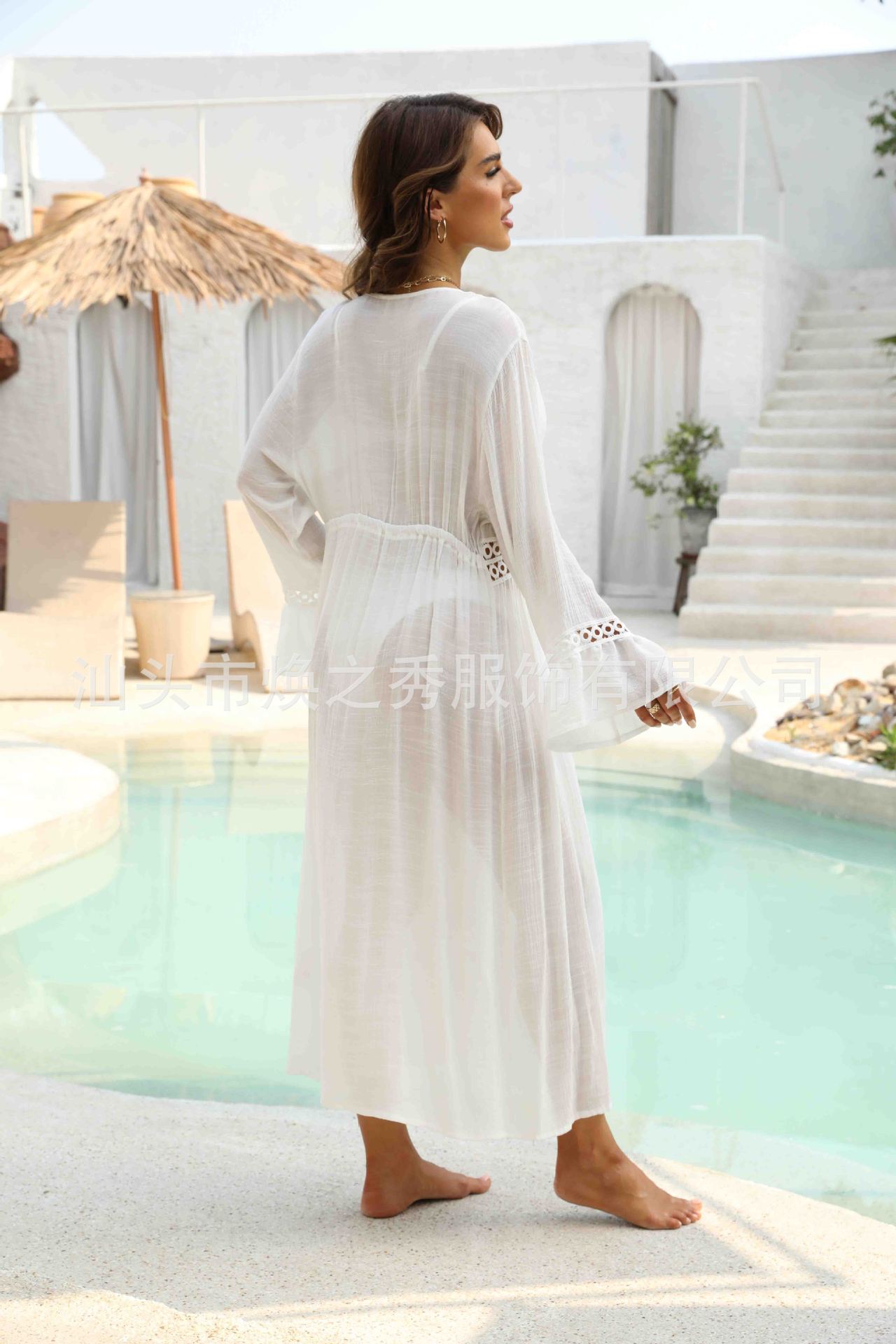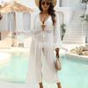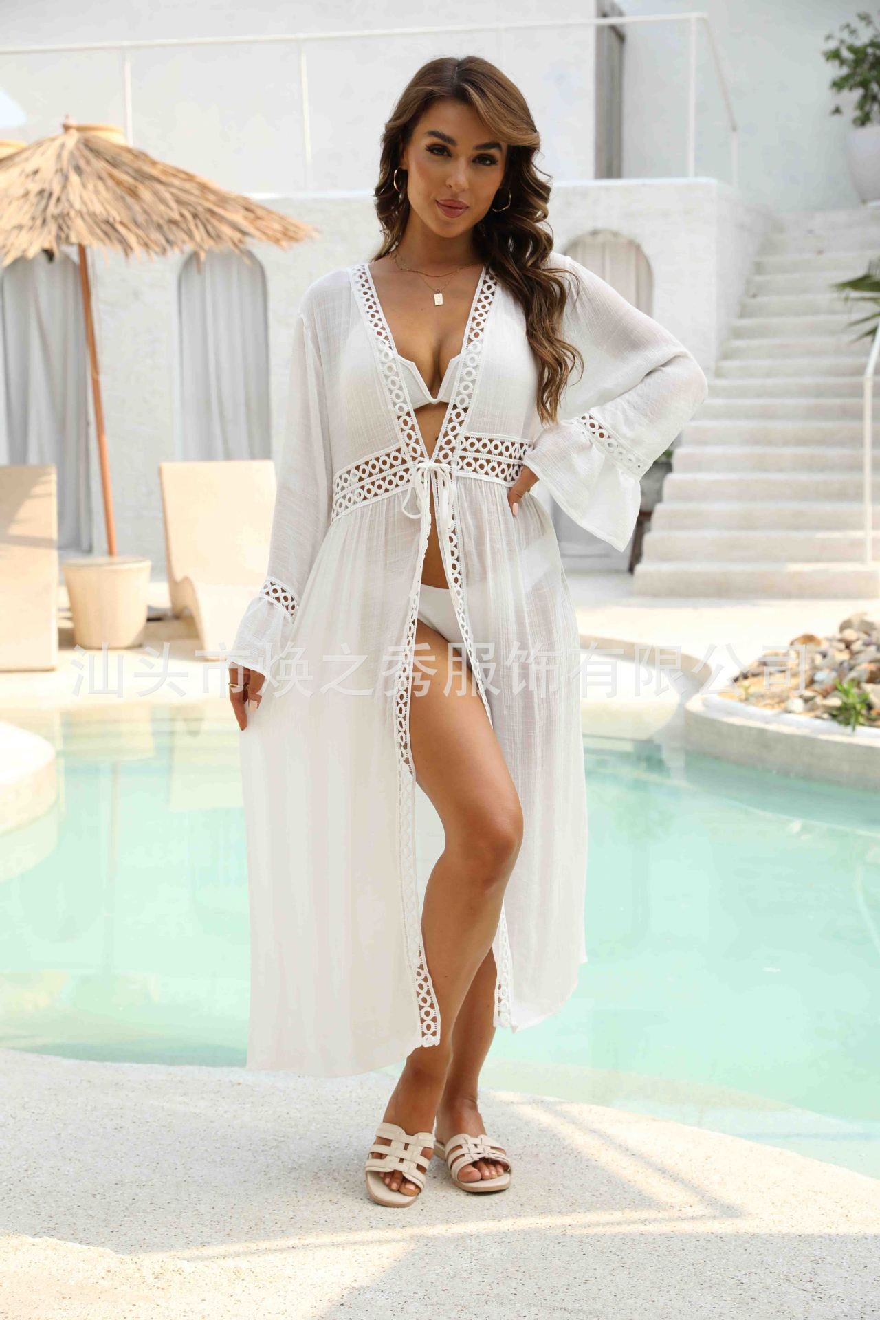 Blusa de Traje de Baño de Encaje de Círculo Largo Estilo Europeo y Americano Transfronterizo Cárdigan para Vacaciones en la Playa Protector Solar Blusa Bikini