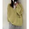 Abrigo de suéter holgado para mujer, otoño e invierno 2023, nuevo cárdigan de punto de un solo pecho con cuello en V holgado versátil de color sólido para mujer