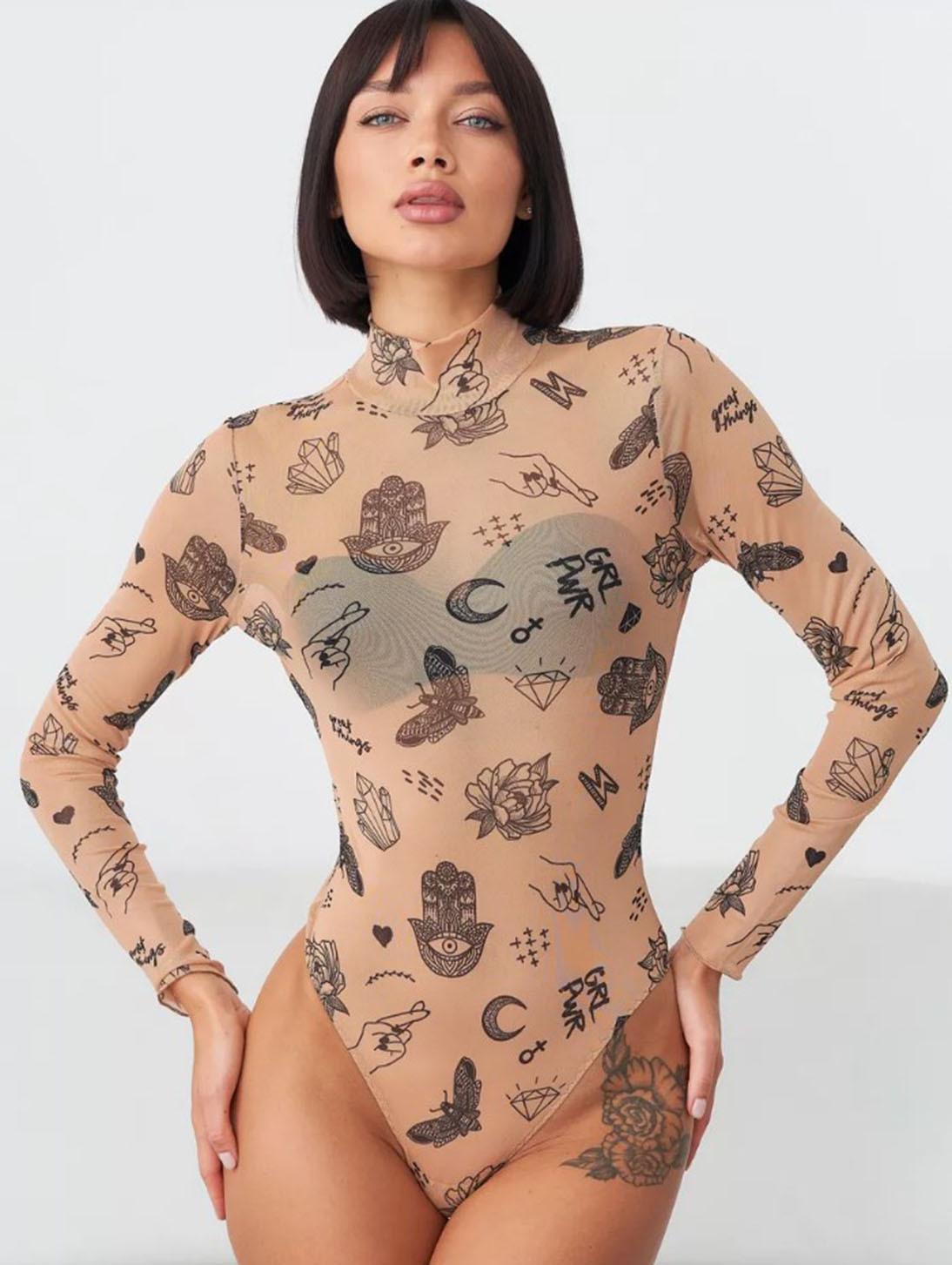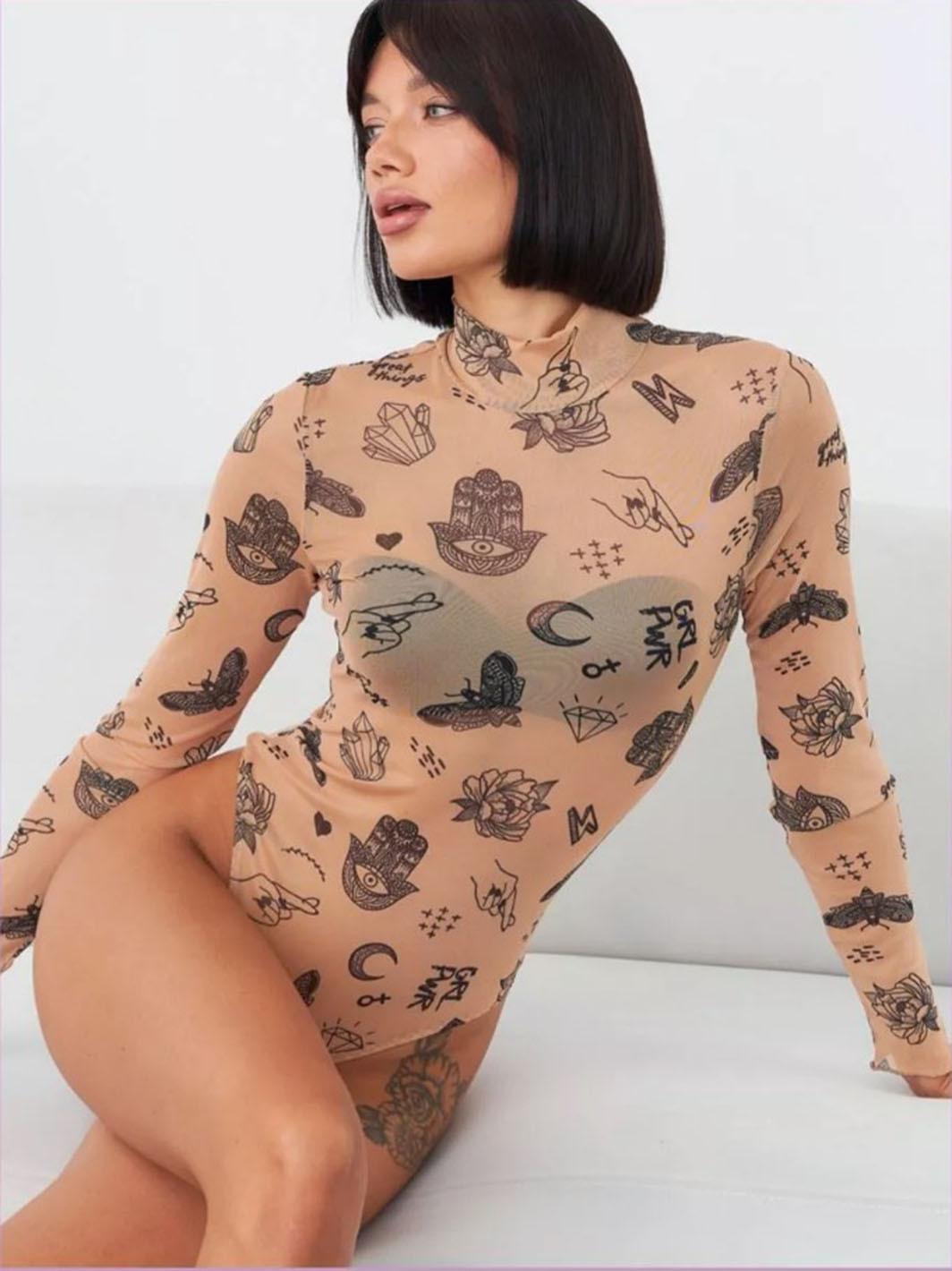 Mono ajustado de manga larga con cuello redondo estampado y perspectiva sexy para mujer de verano transfronterizo europeo y americano 2024