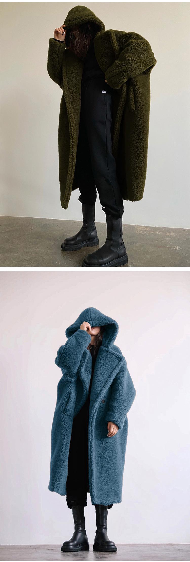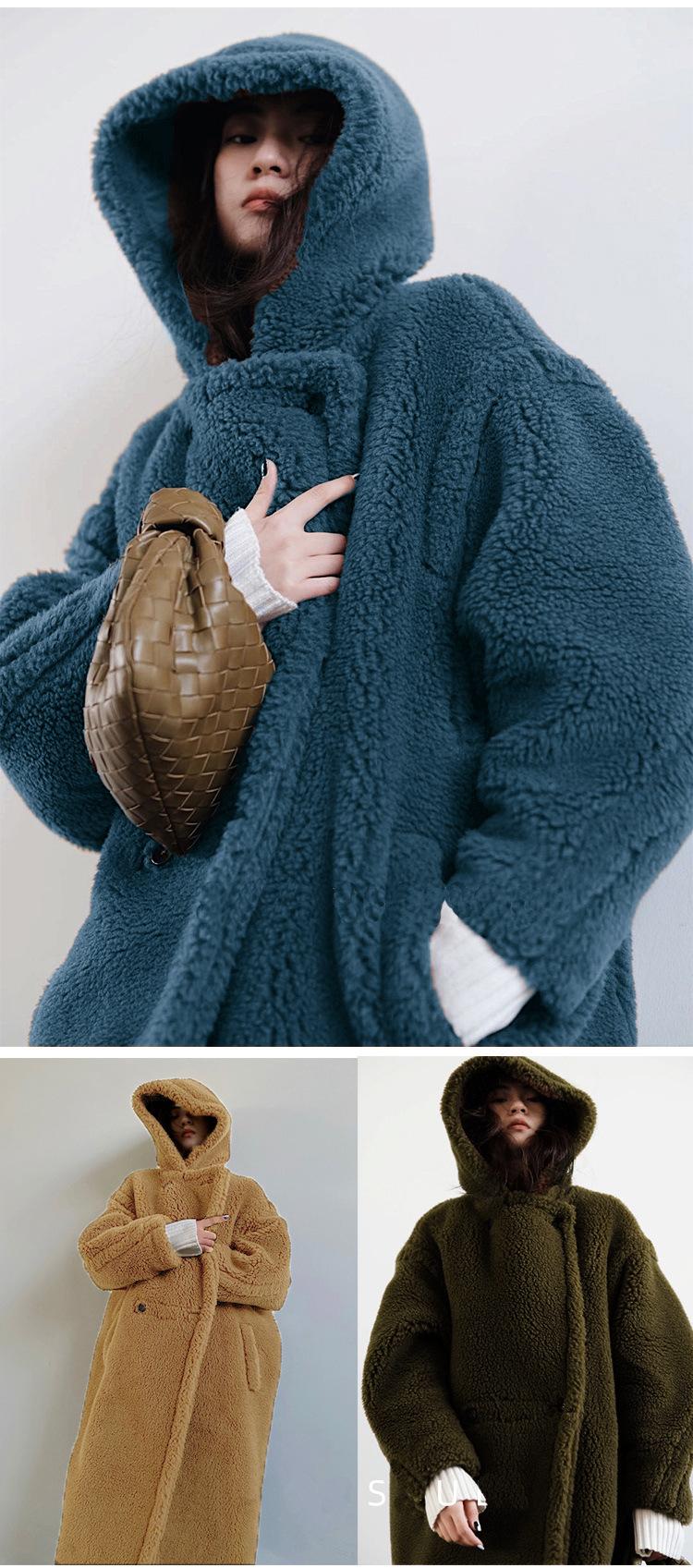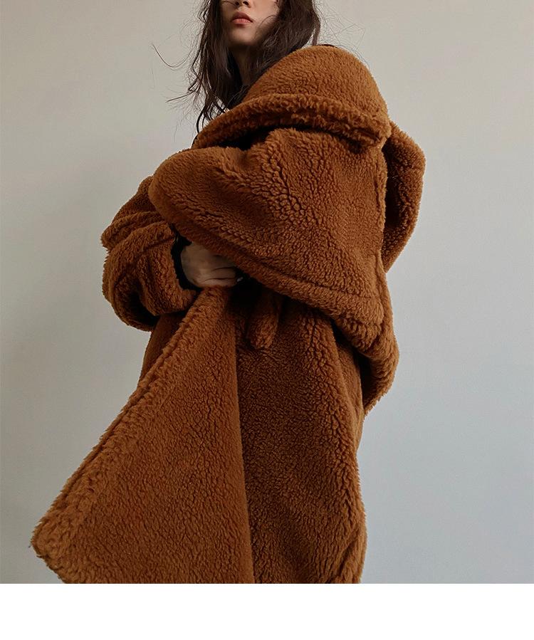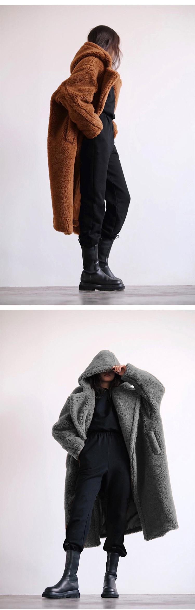 Abrigo de piel sintética informal de otoño e invierno para mujer, abrigo de longitud media con capucha europea y americana, solapa, moda de lana de cordero, elegante y moderno.