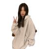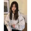Suéter con capucha y forro polar para mujer, estilo coreano holgado, adelgazante, con estampado de letras, para otoño e invierno, para estudiantes
