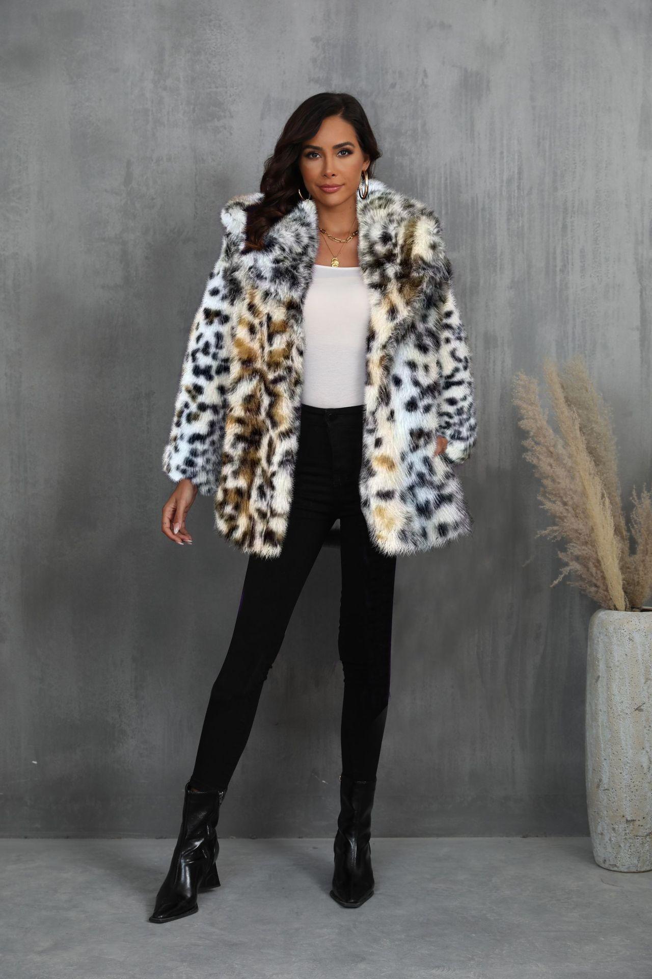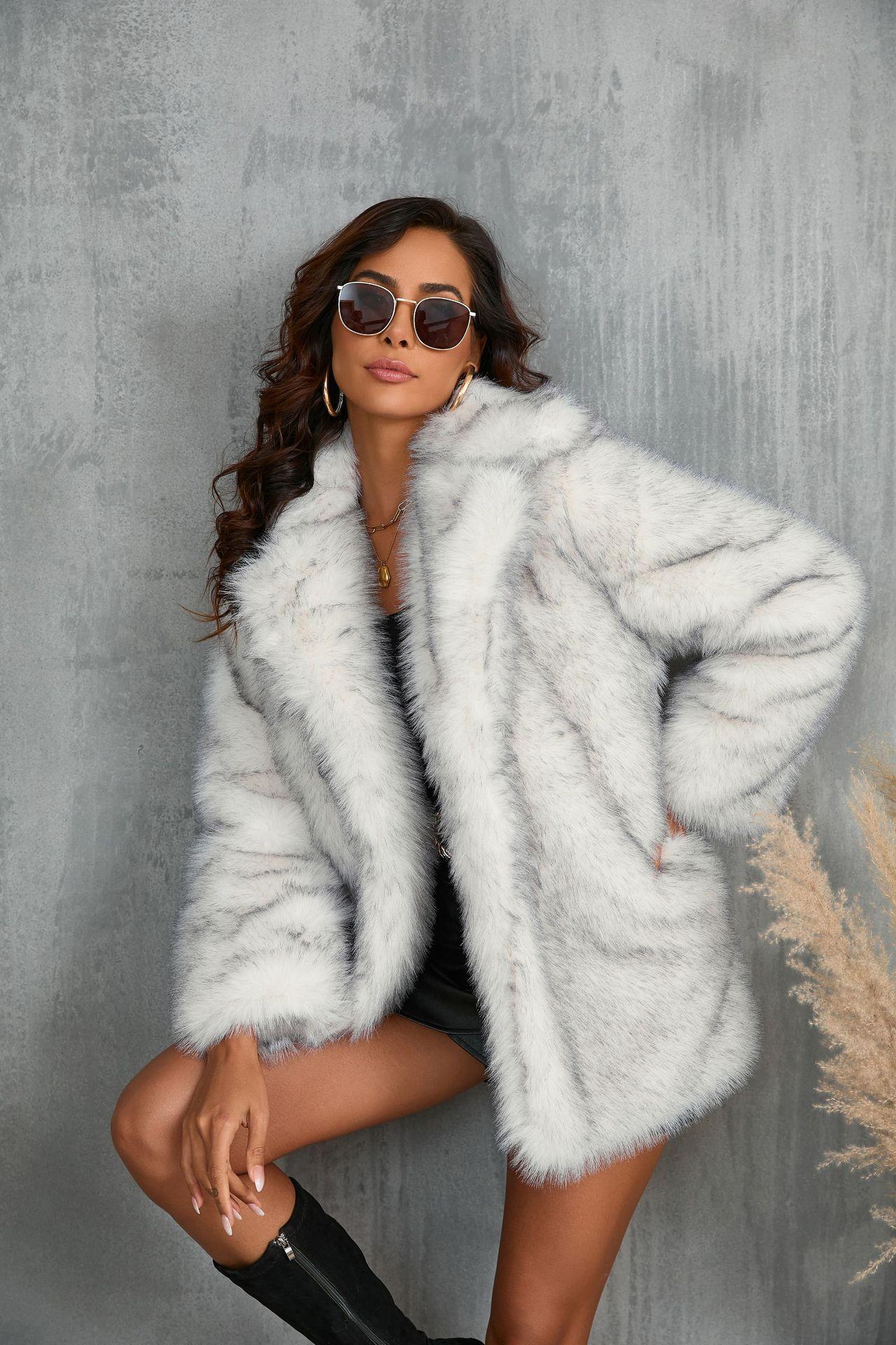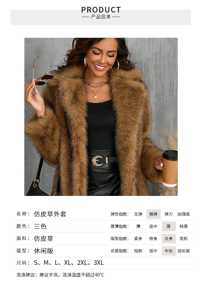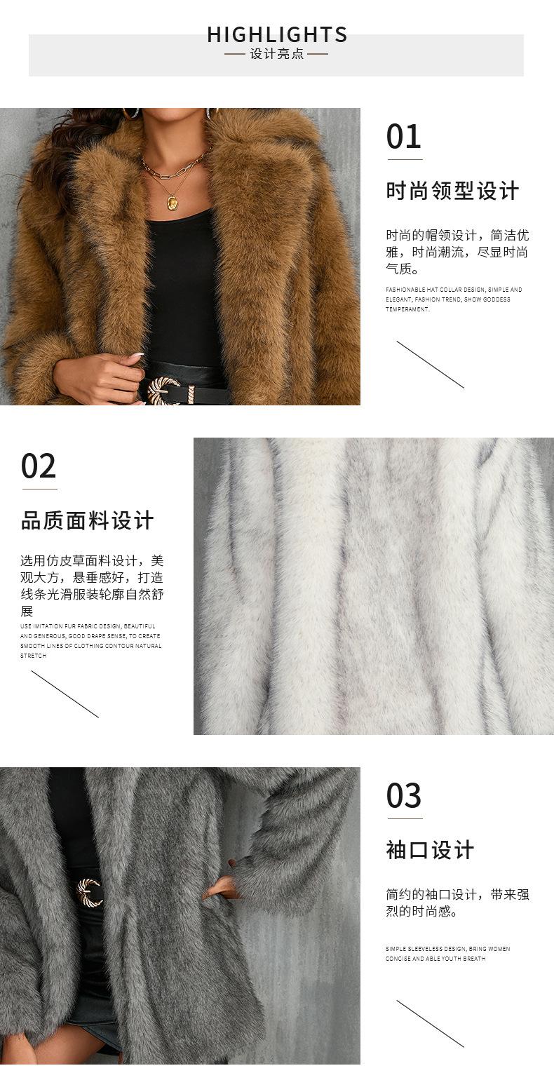 Abrigo de piel sintética con cuello de piel de Toca para mujer europea y americana para otoño e invierno de 2024