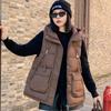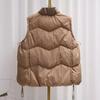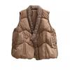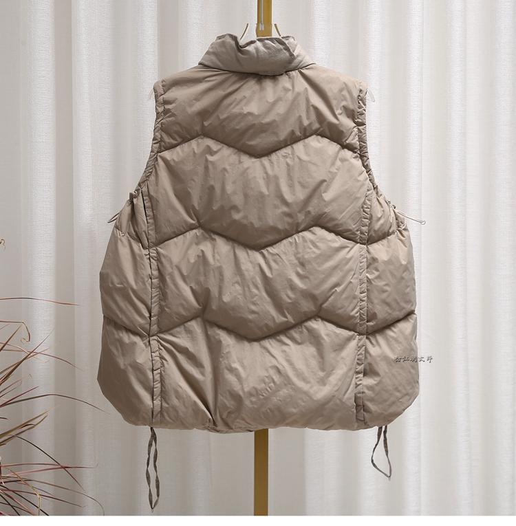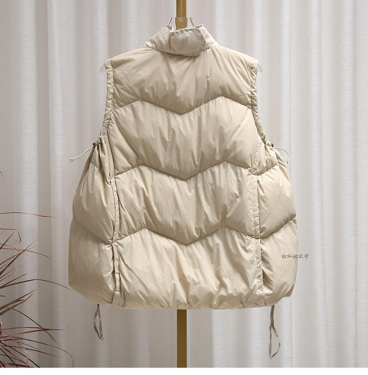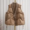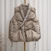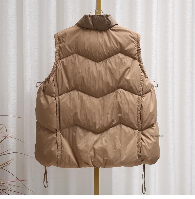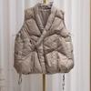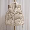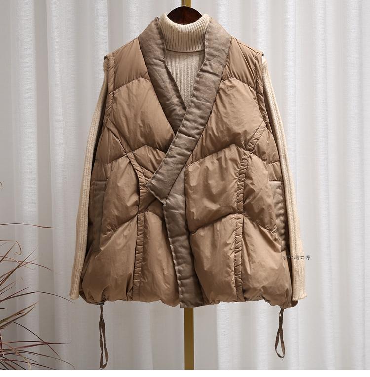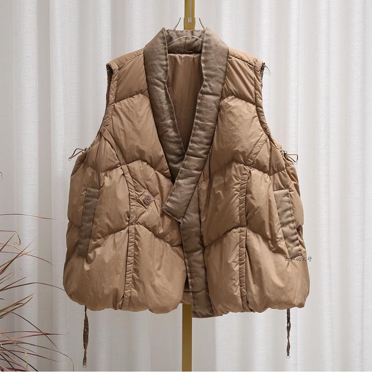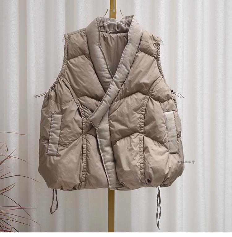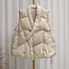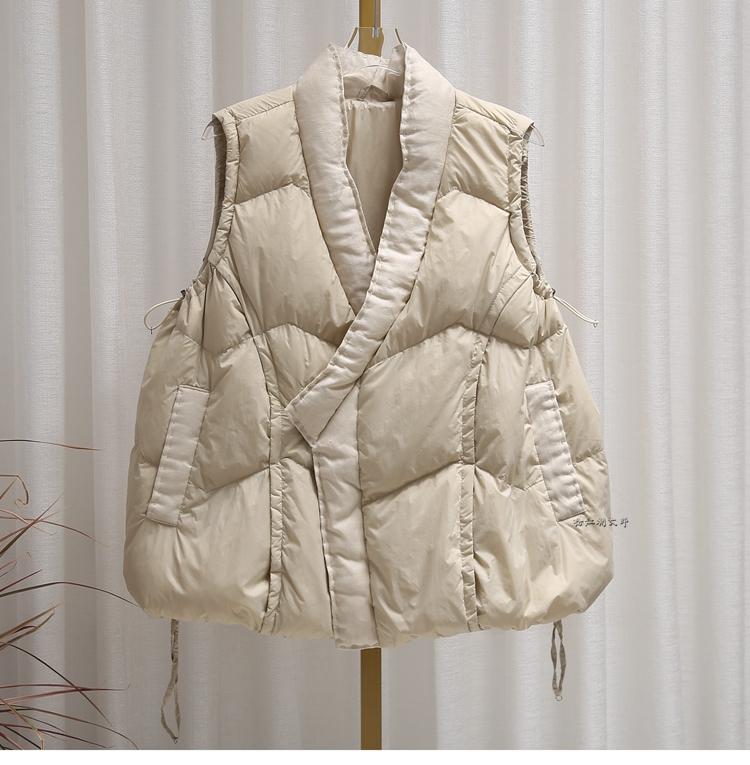 Nuevo Otoño e Invierno 2024 Chaleco Acolchado Vintage con Solapa Oblicua Versión Holgada Grande Cuello de Plumón de Pato Blanco Chaleco Abrigo de Mujer