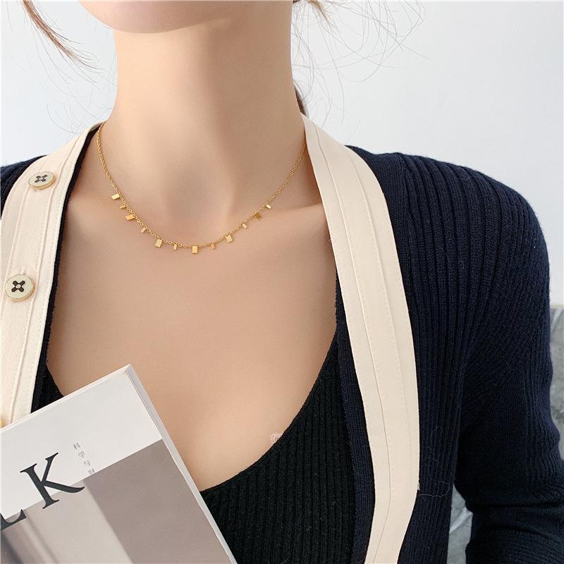 Collar pequeño rectangular con borlas para mujer, cadena de clavícula de verano, joyería de alta gama para San Valentín, 2024