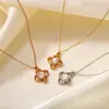 Nuevo Collar de Trébol de Cuatro Hojas de Zircón, Colgante de Acero de Titanio con Flor Simple de Nicho, Joyería de Mujer Versátil de Alta Gama al por Mayor