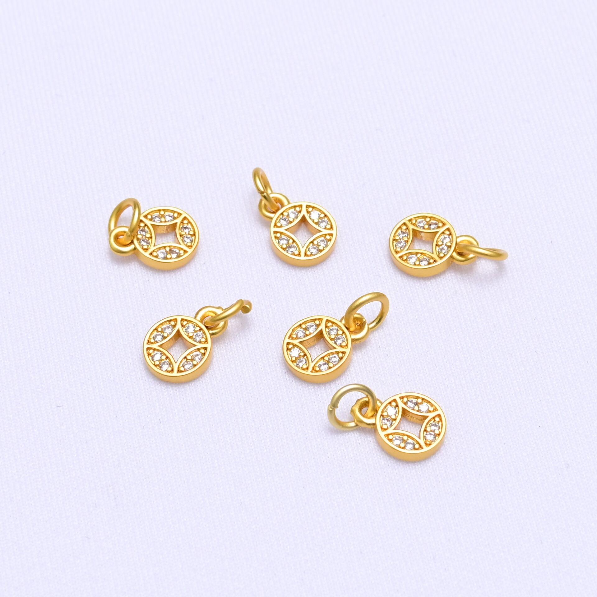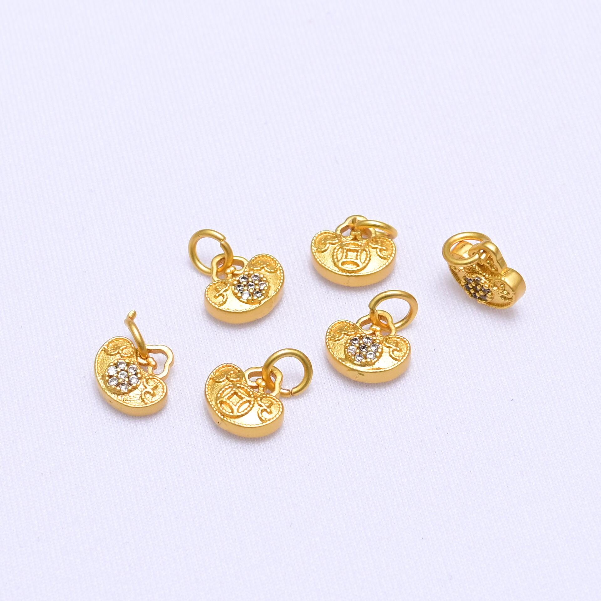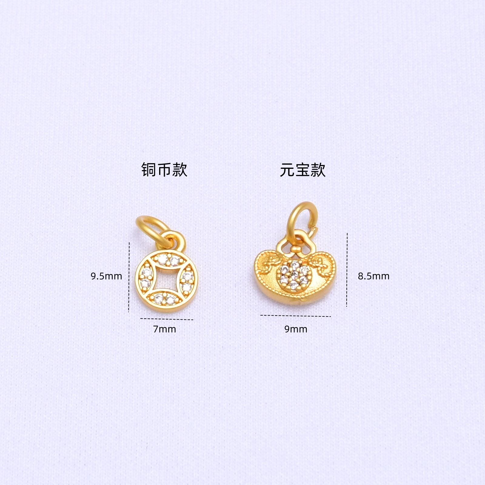 ~ Pulsera colgante de oro antiguo que conserva el color, incrustada con circonita, lingote de plata, dinero, moneda de cobre, accesorios colgantes para pulsera, accesorios con cuentas DIY ~