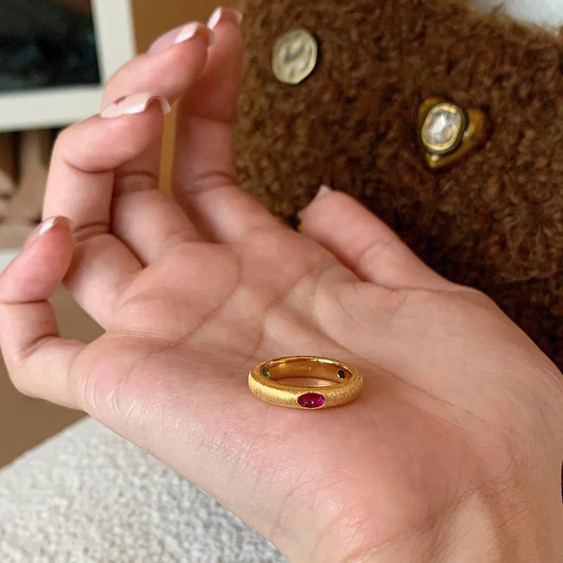 Anillo Abierto Ajustable Vintage Cepillado Tricolor para Mujer, Nicho de Alta Gama Lujo Ligero Versátil Nuevo Accesorio Joyería