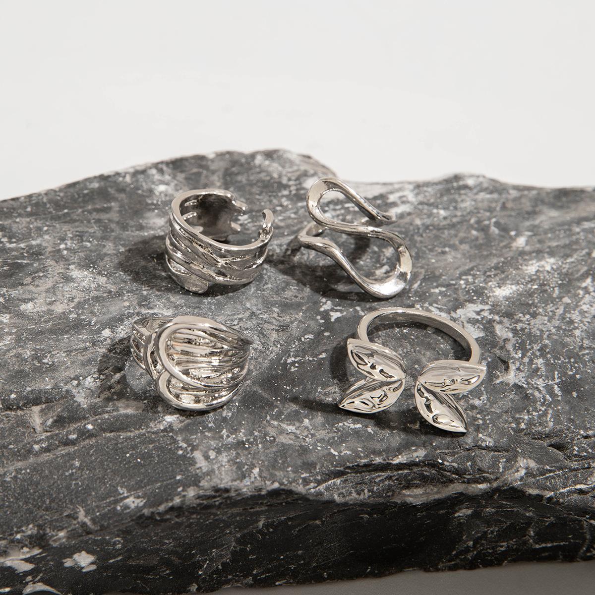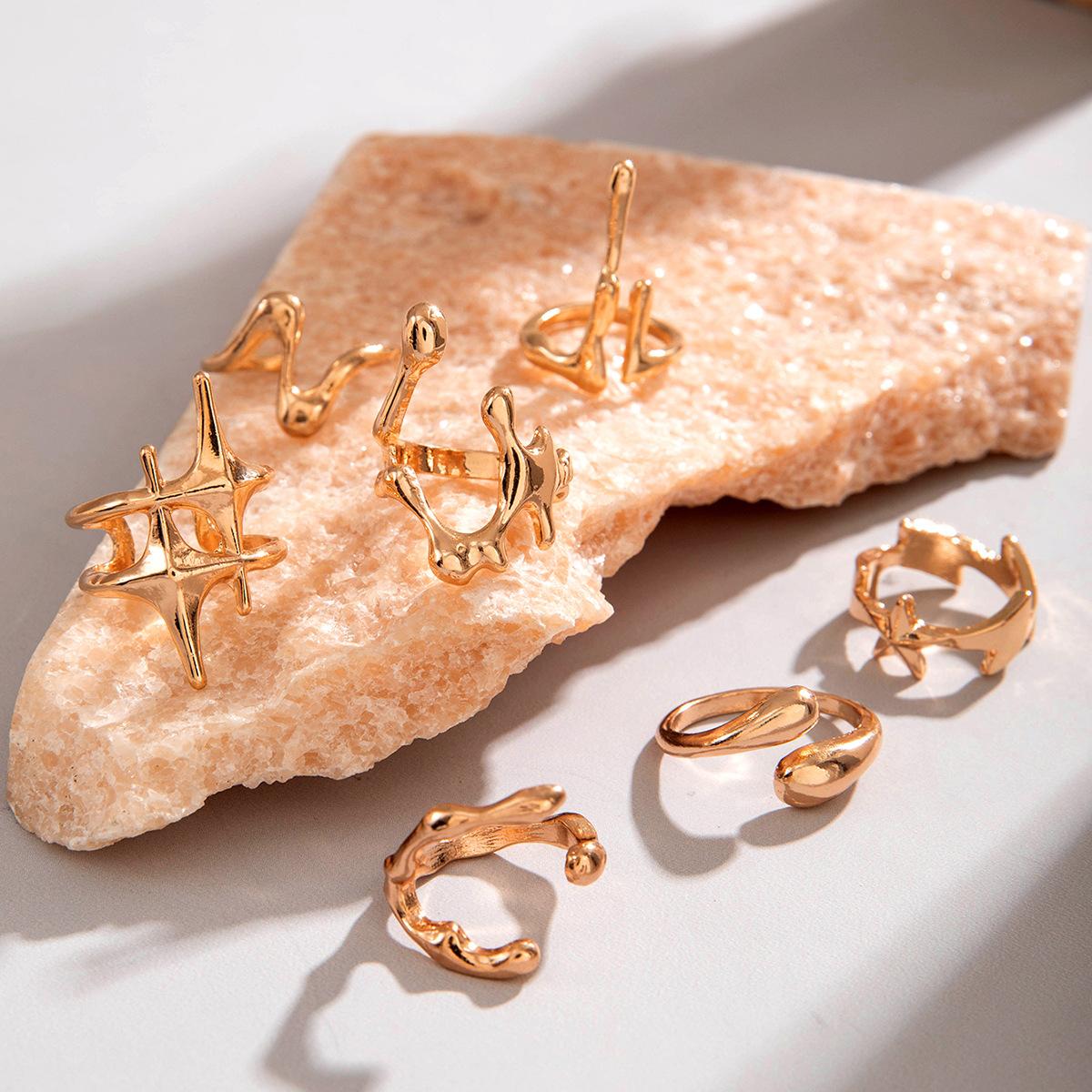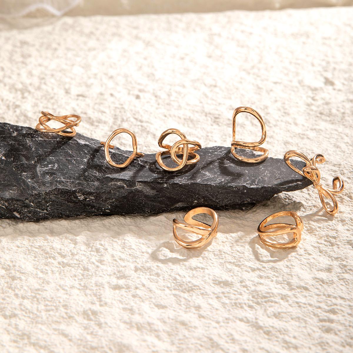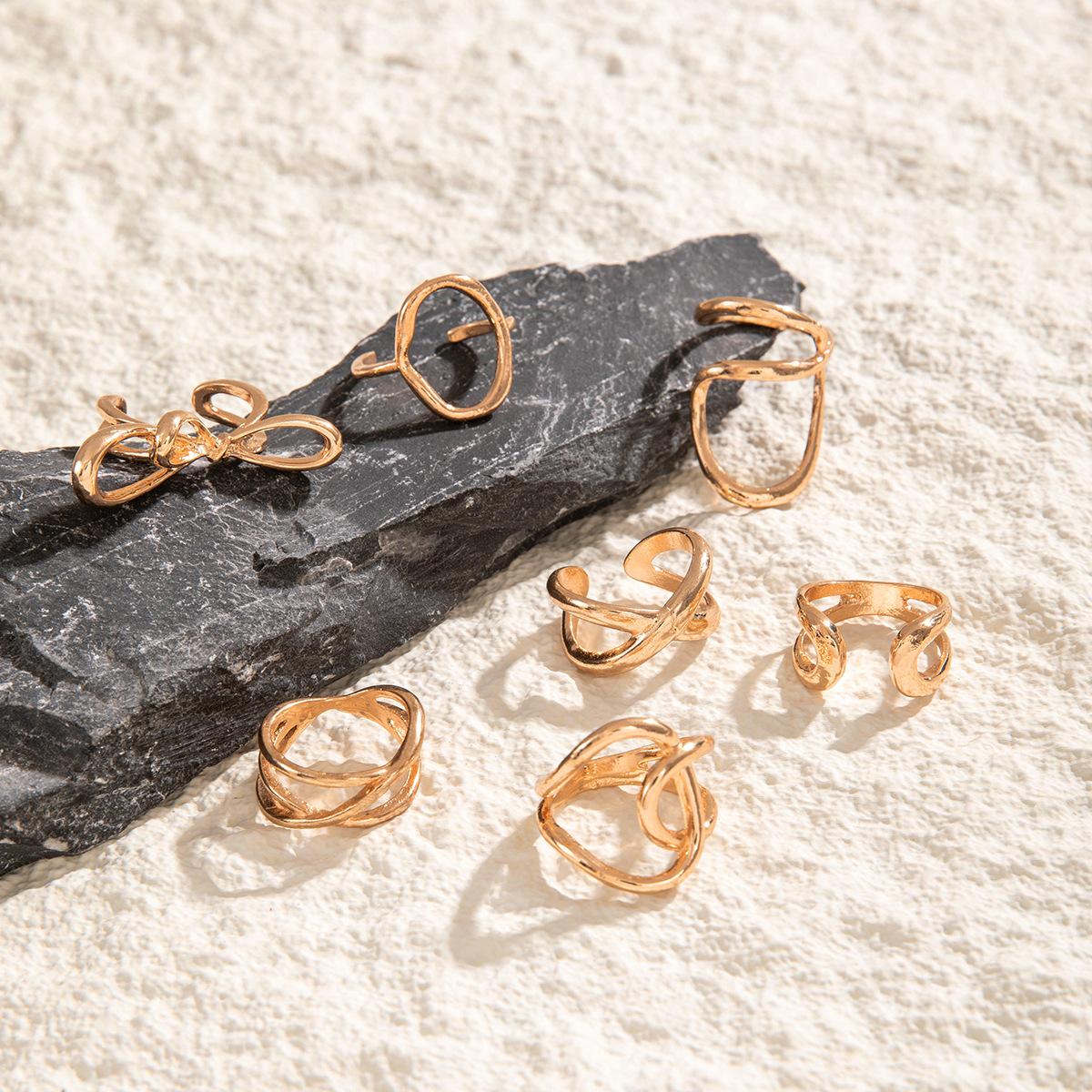 Anillo Irregular Geométrico Hueco de Moda Transfronteriza Europea y Americana con Sentido del Diseño, Set de Anillos Abiertos de Mariposa Corazón de Durazno