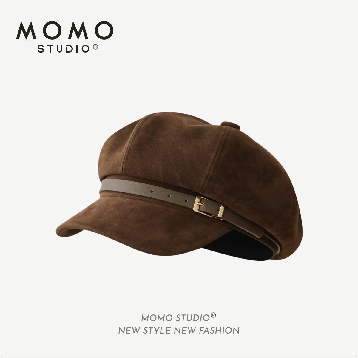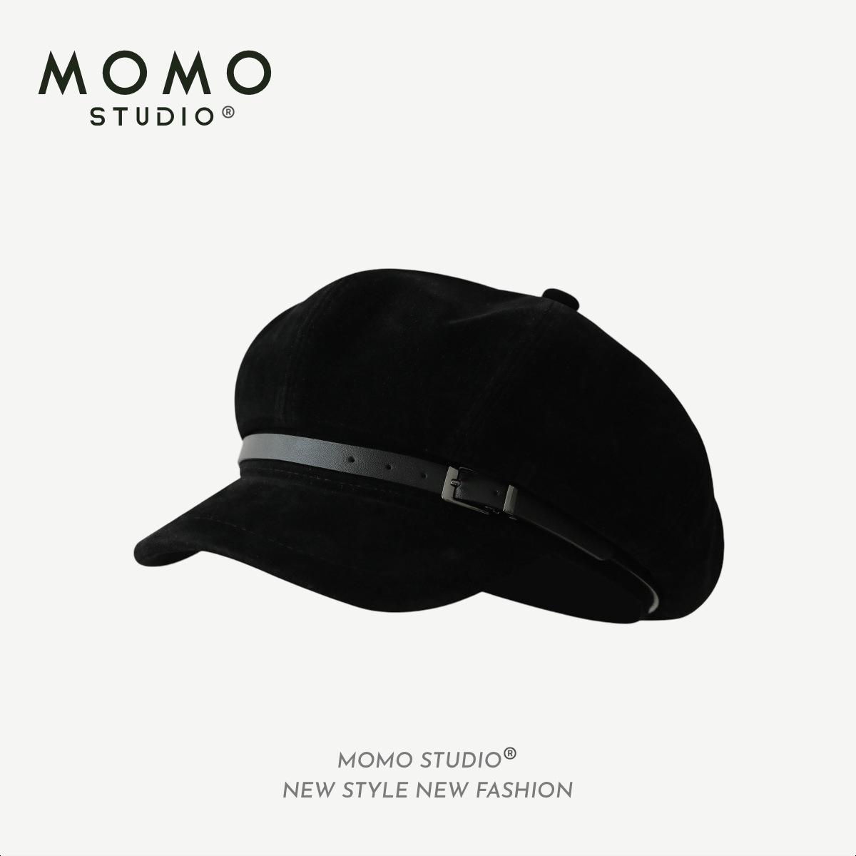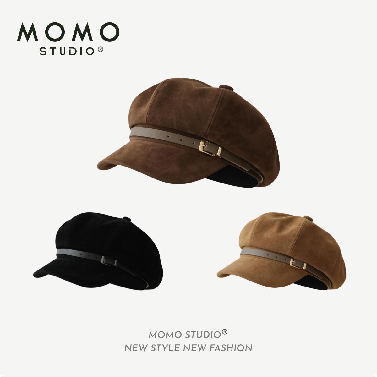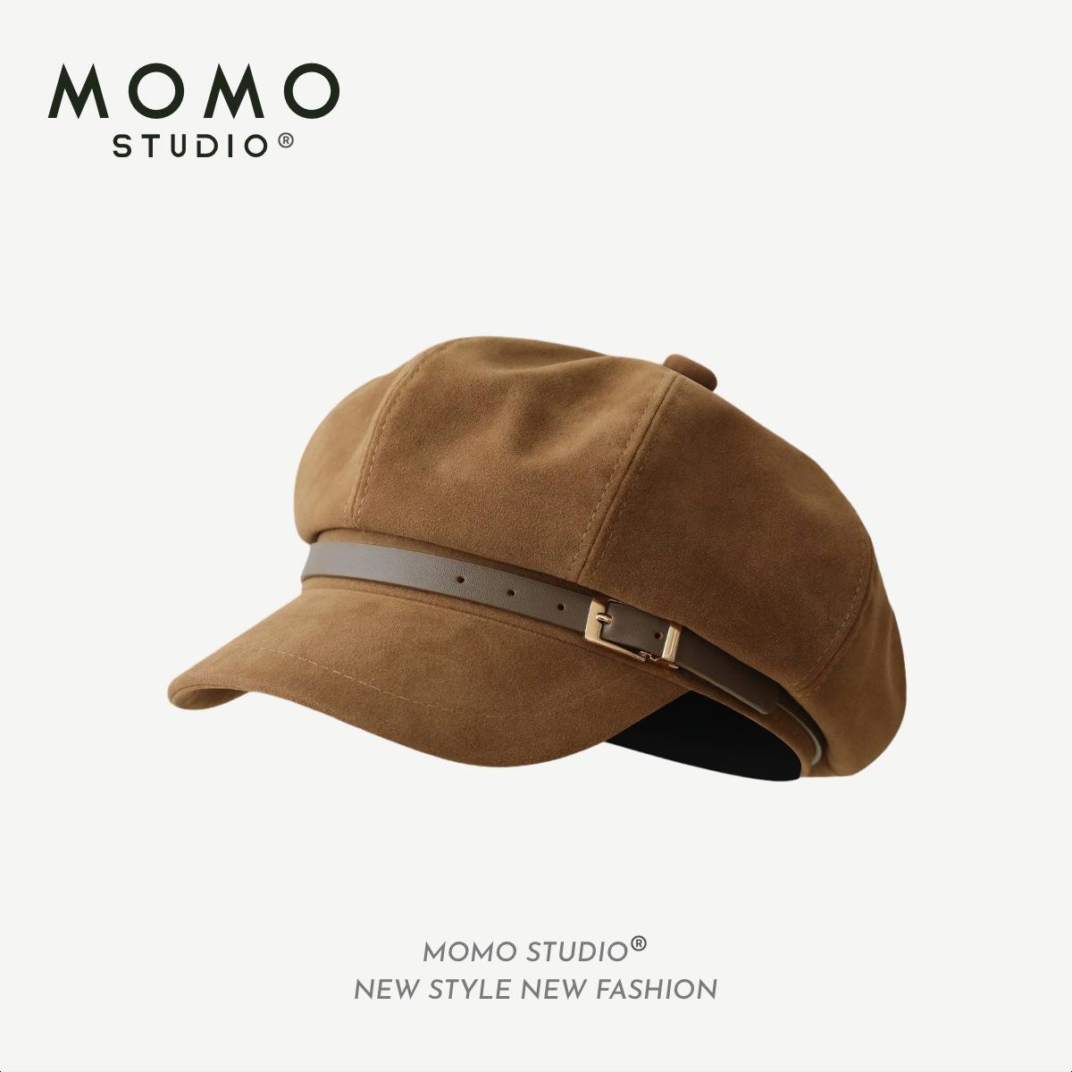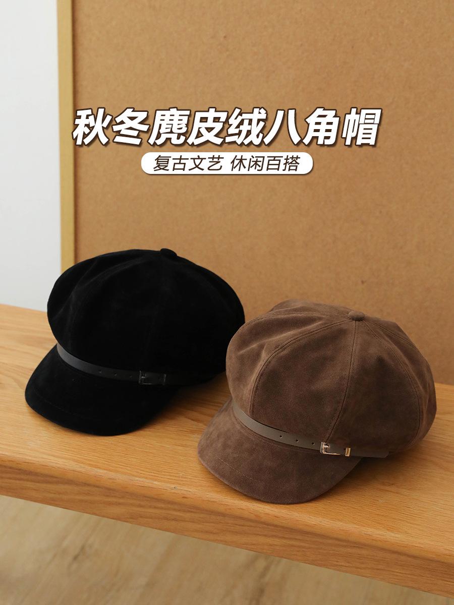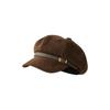 Elegante sombrero octogonal combinable de estilo coreano para mujer, sombrero de vendedor de periódicos con hebilla de cinturón de moda de otoño e invierno, sombrero de pintor de gamuza vintage de alta calidad.