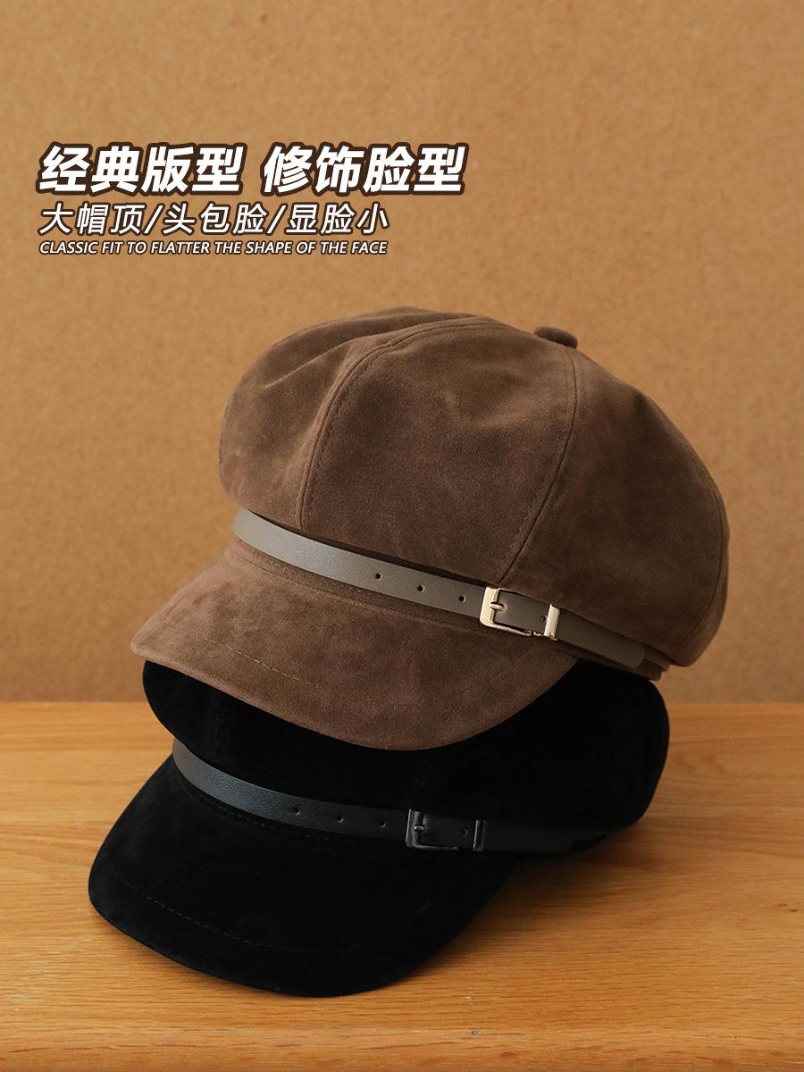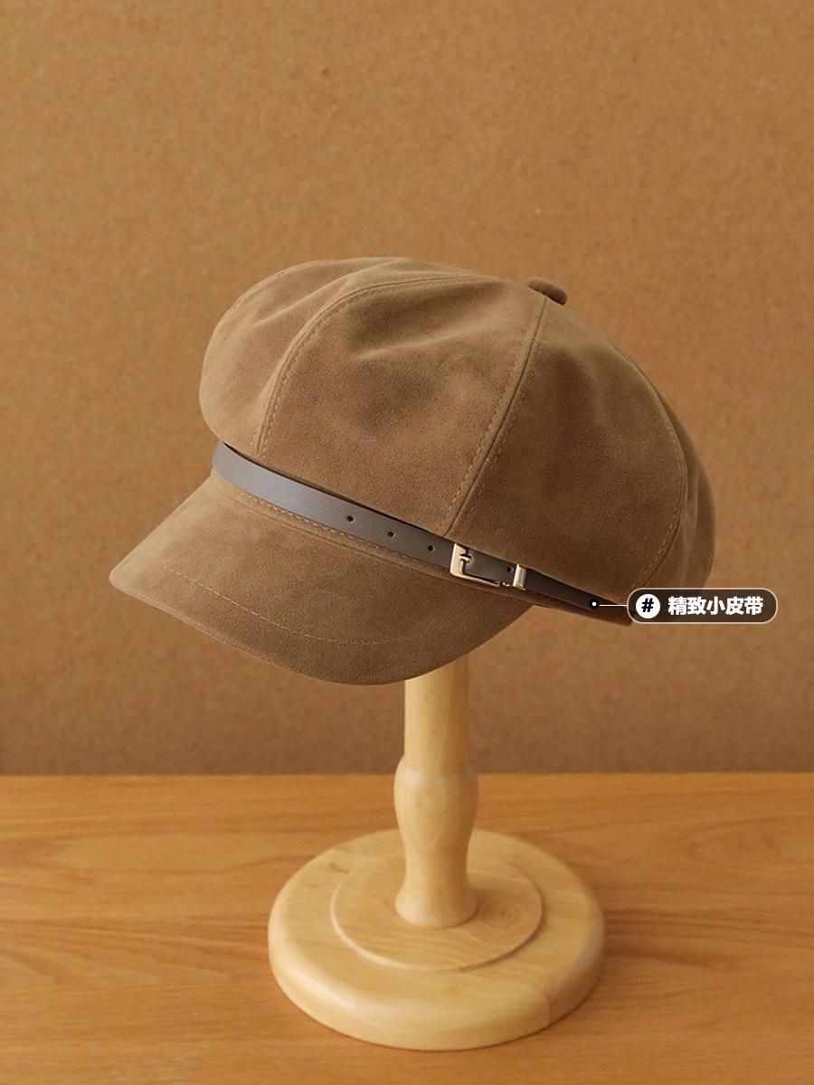Compra Elegante sombrero octogonal combinable de estilo coreano para mujer, sombrero de vendedor de periódicos con hebilla de cinturón de moda de otoño e invierno, sombrero de pintor de gamuza vintage de alta calidad. al por mayor en Joom.pro