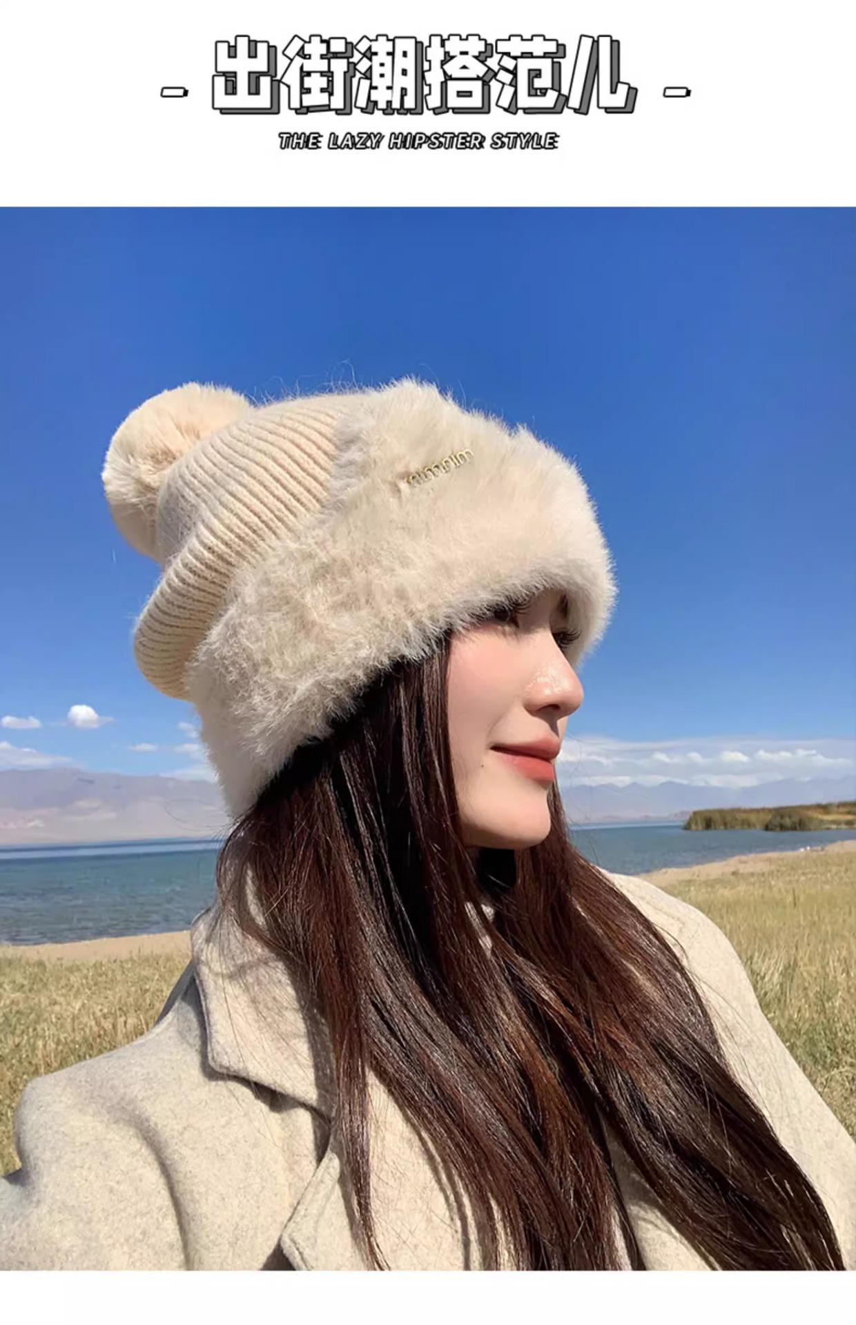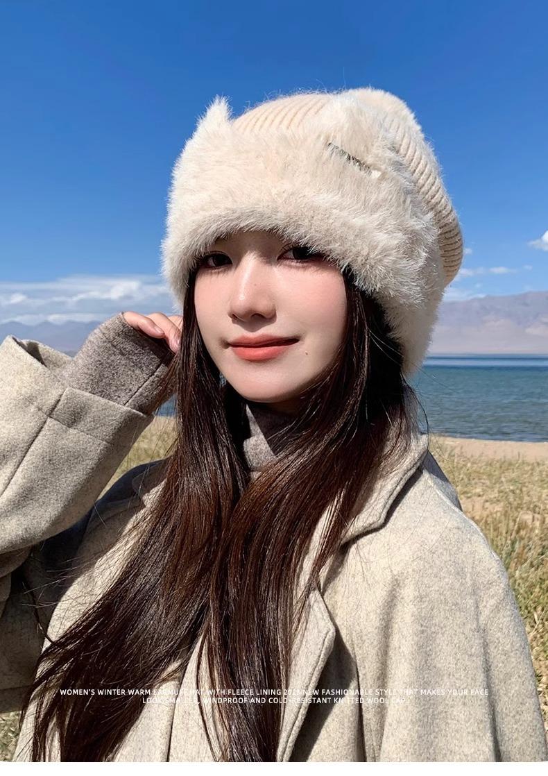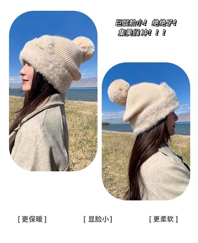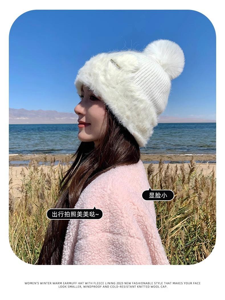 Sombrero de Mujer 2024 Invierno Cálido Ciclismo Cortavientos Protección Frío para Orejas Sombrero Frío Combinable Muestra Rostro Pequeño Sombrero de Lana Tejido