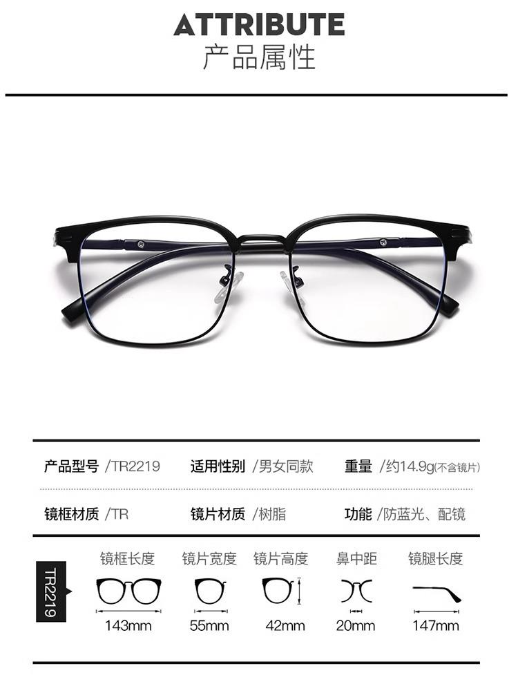 Nuevo marco de cejas personalizado, caja retro simple, gafas de moda con marco anti-luz azul que se pueden combinar con marcos para miopía