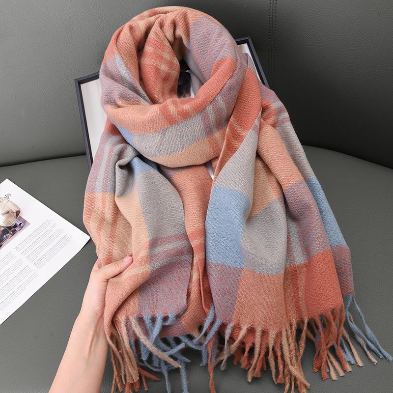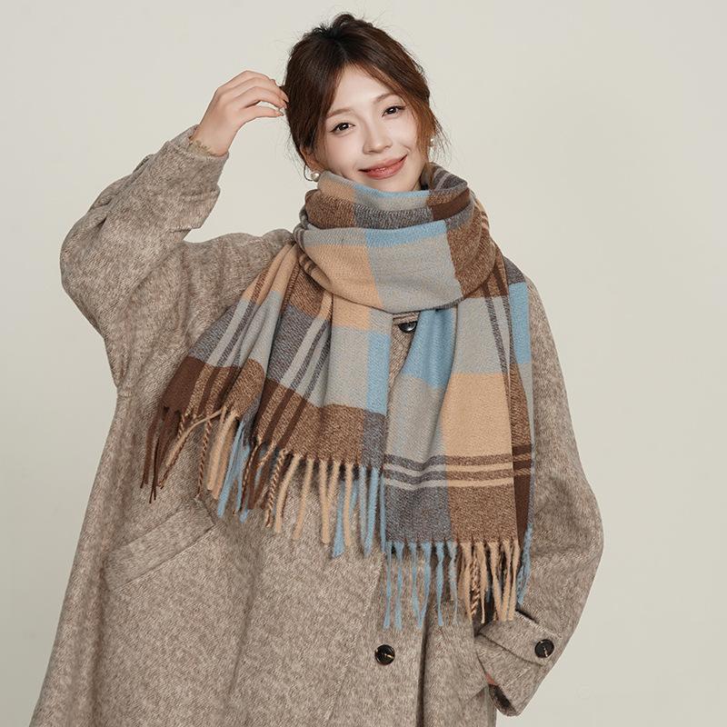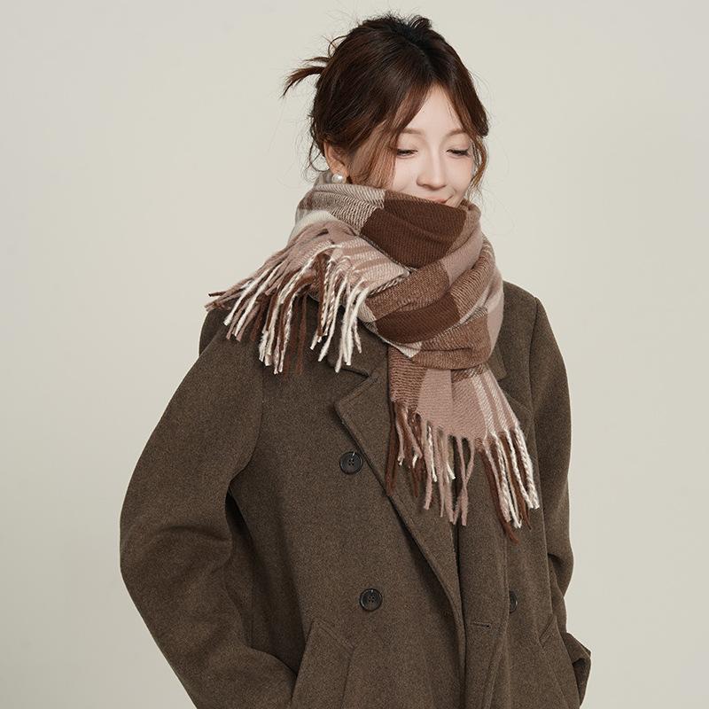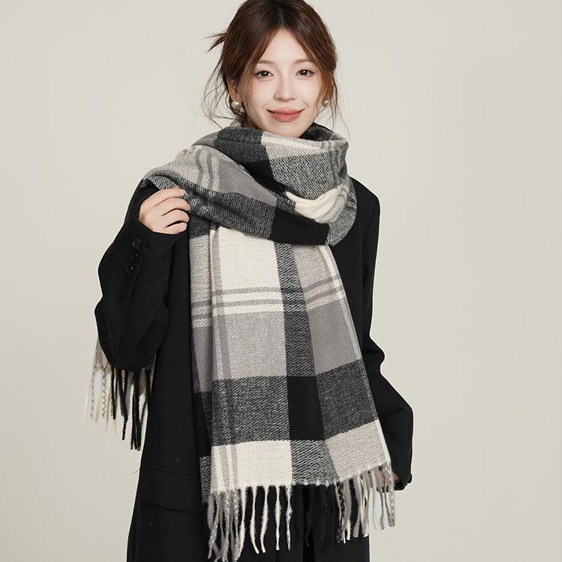 Bufanda nueva para mujer que combina con todo, invierno 2024, nueva bufanda gruesa y cálida al por mayor, chal retro de cachemira con borlas