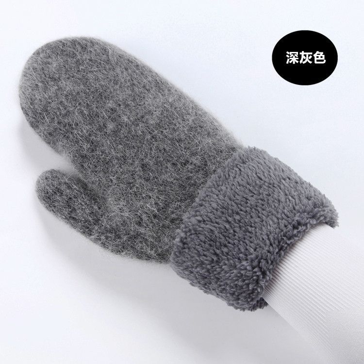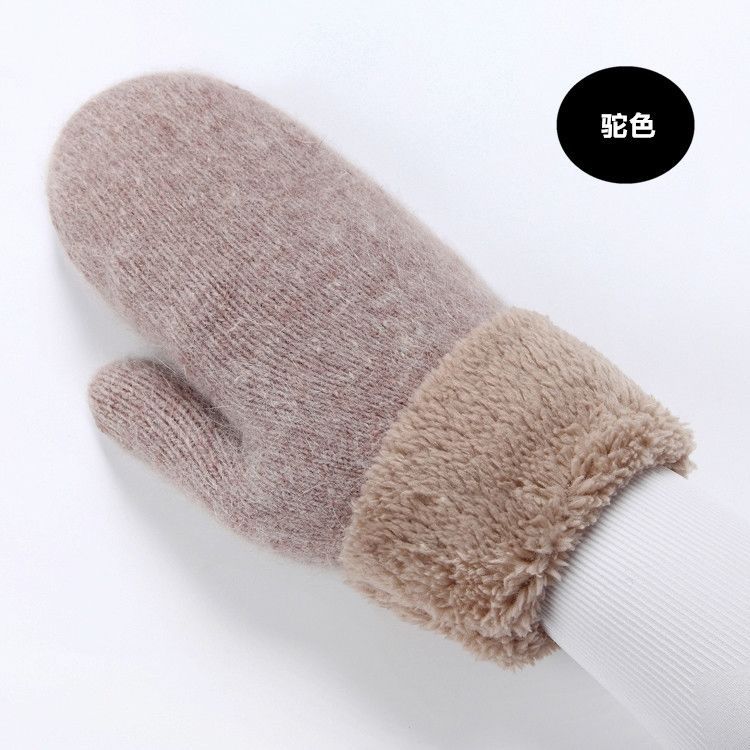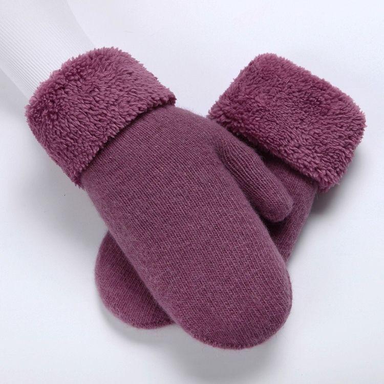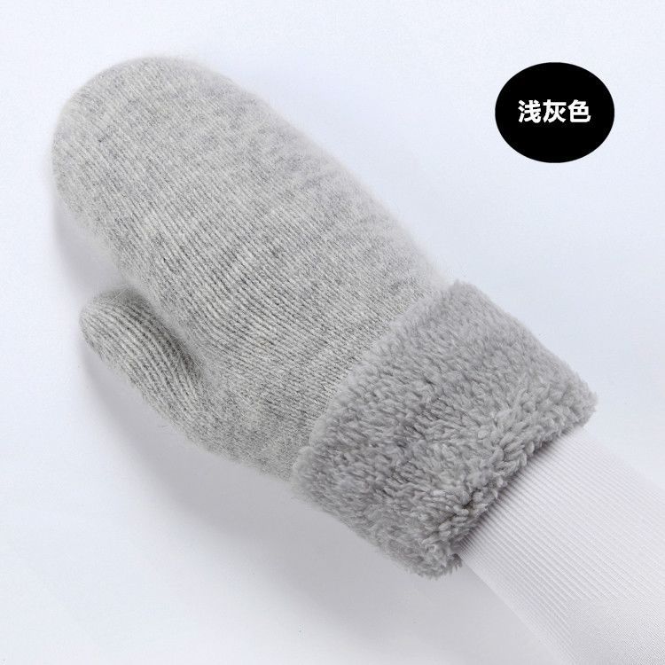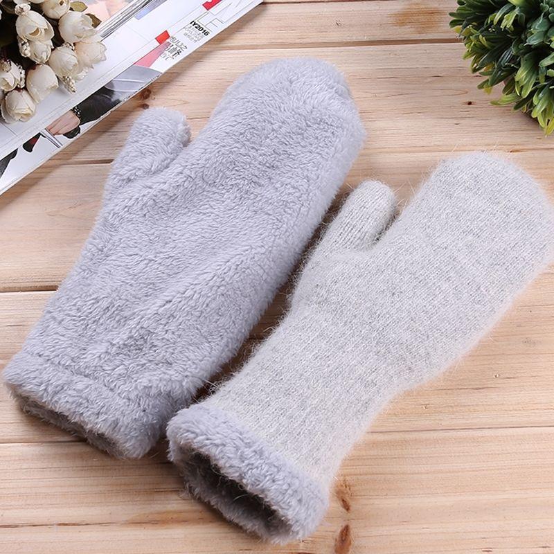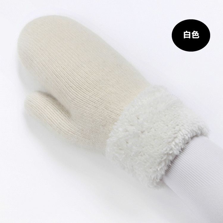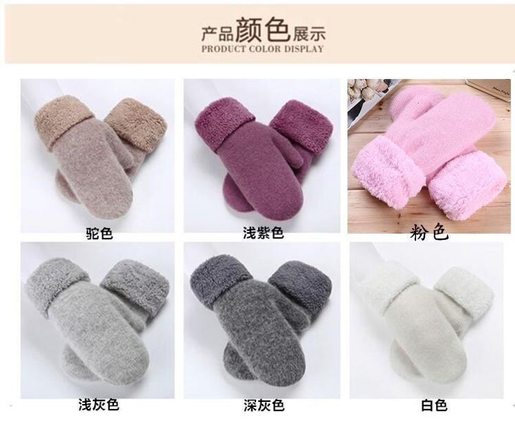 Guantes de Dedos Bolsa Cálida Engrosada para Mujer Invierno Engrosado Cálido Doble Capa Felpa Lana Estudiante Lindo Estilo Coreano Dedo Completo Color Sólido