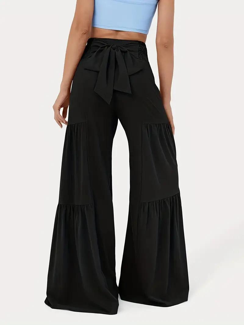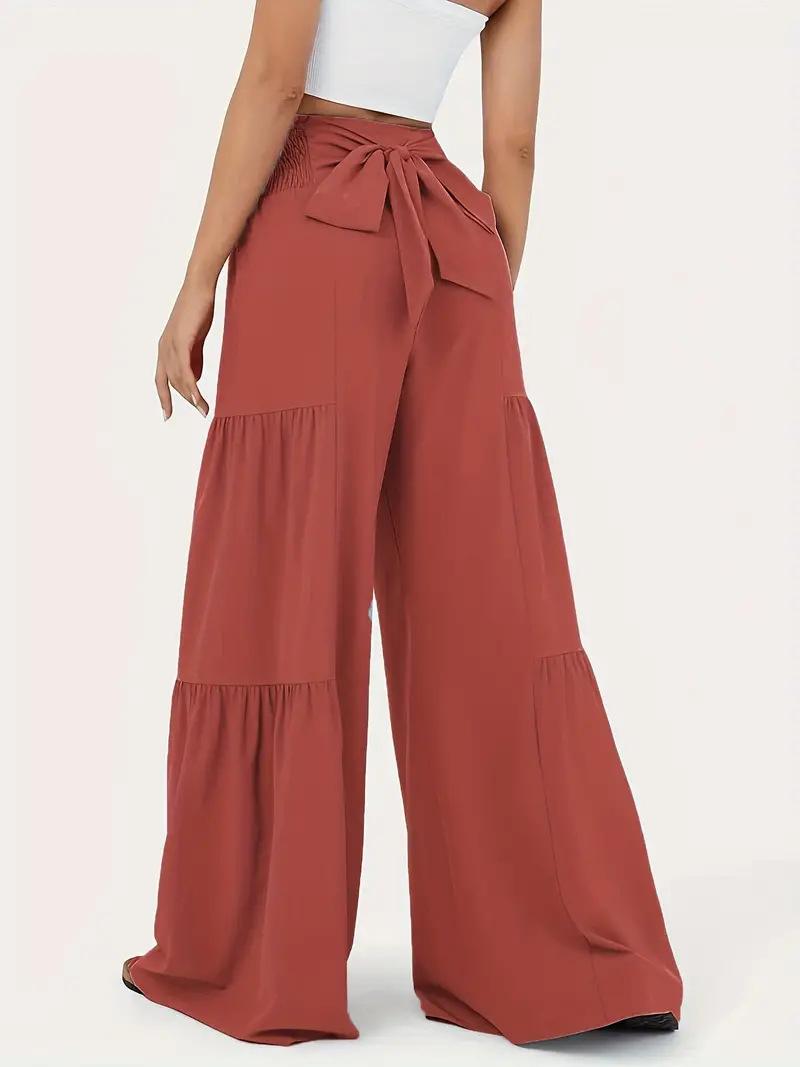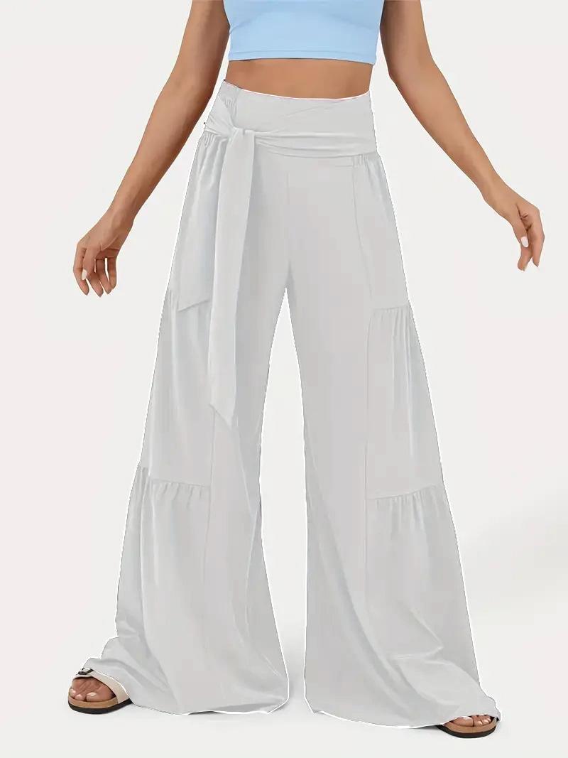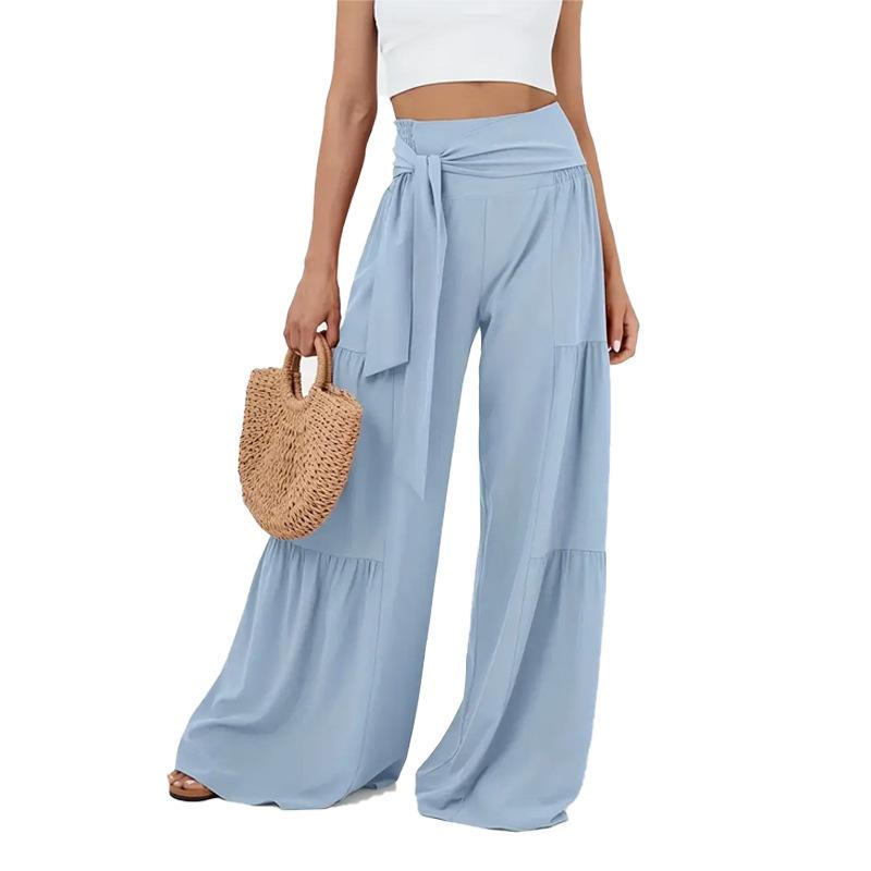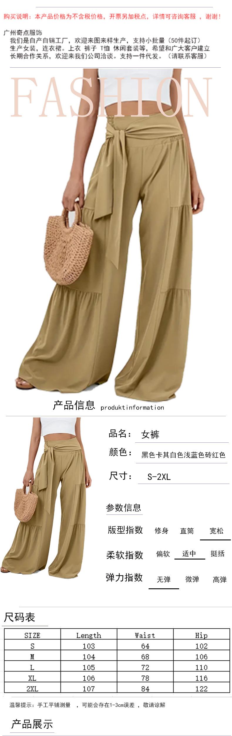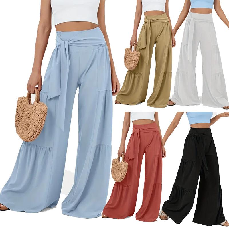 2024 nuevo éxito de ventas transfronterizo pantalones de mujer europeos y americanos de moda que combinan con todo elásticos con cordones pantalones de pierna ancha holgados casuales elásticos