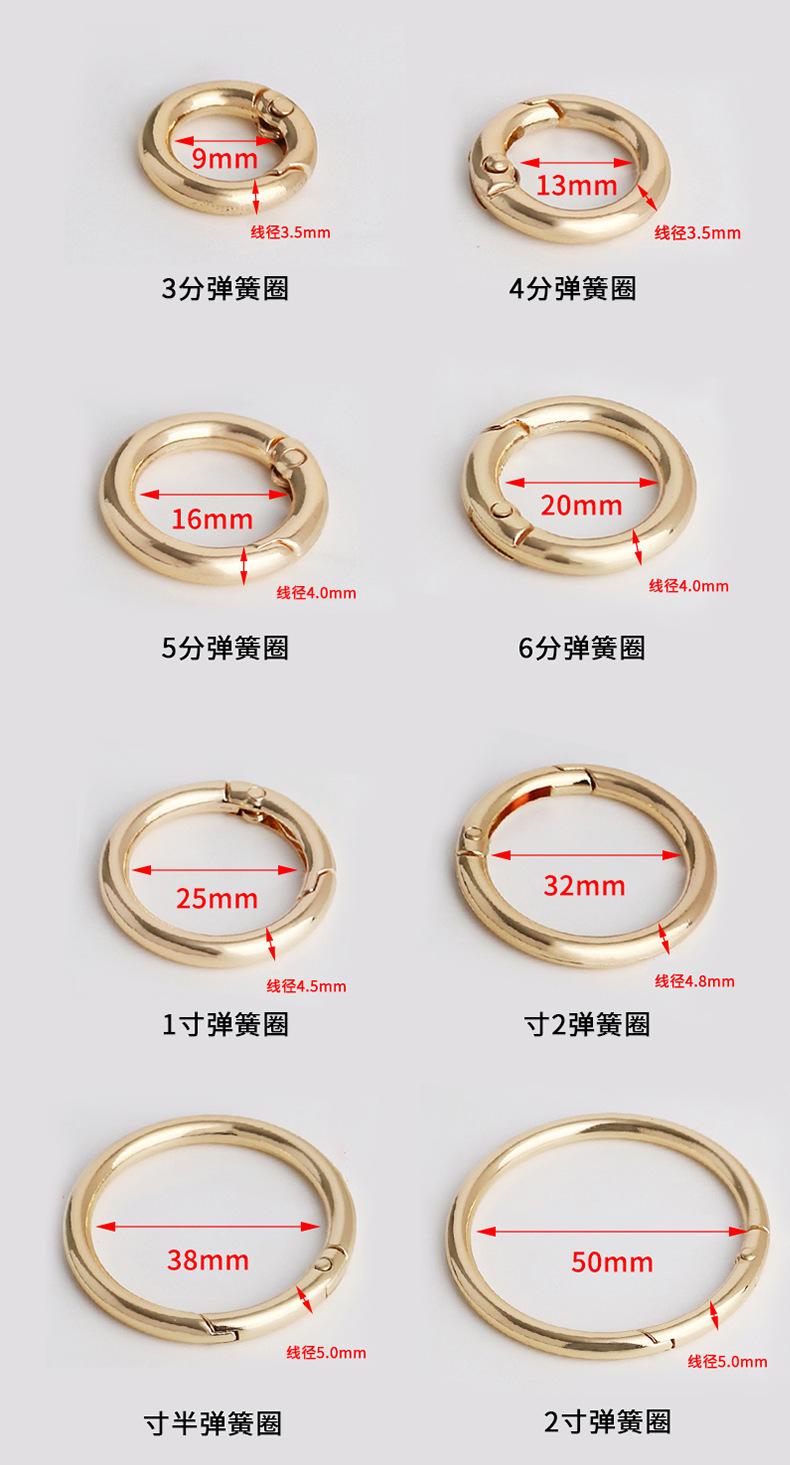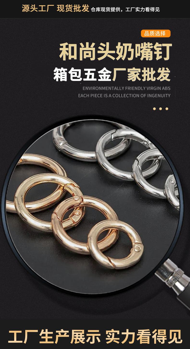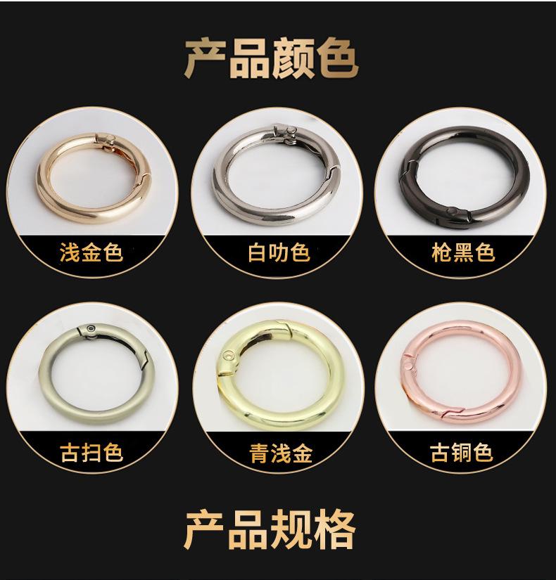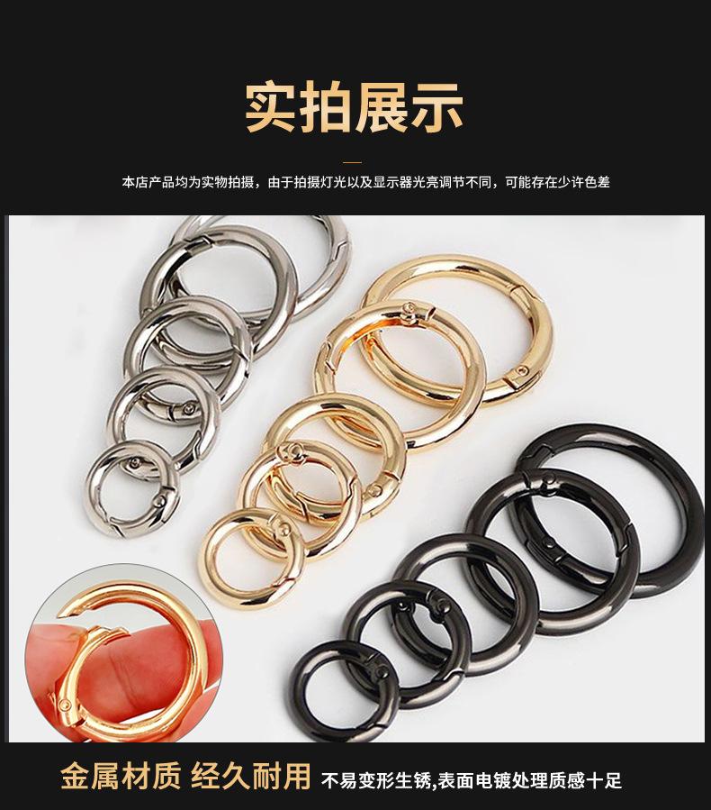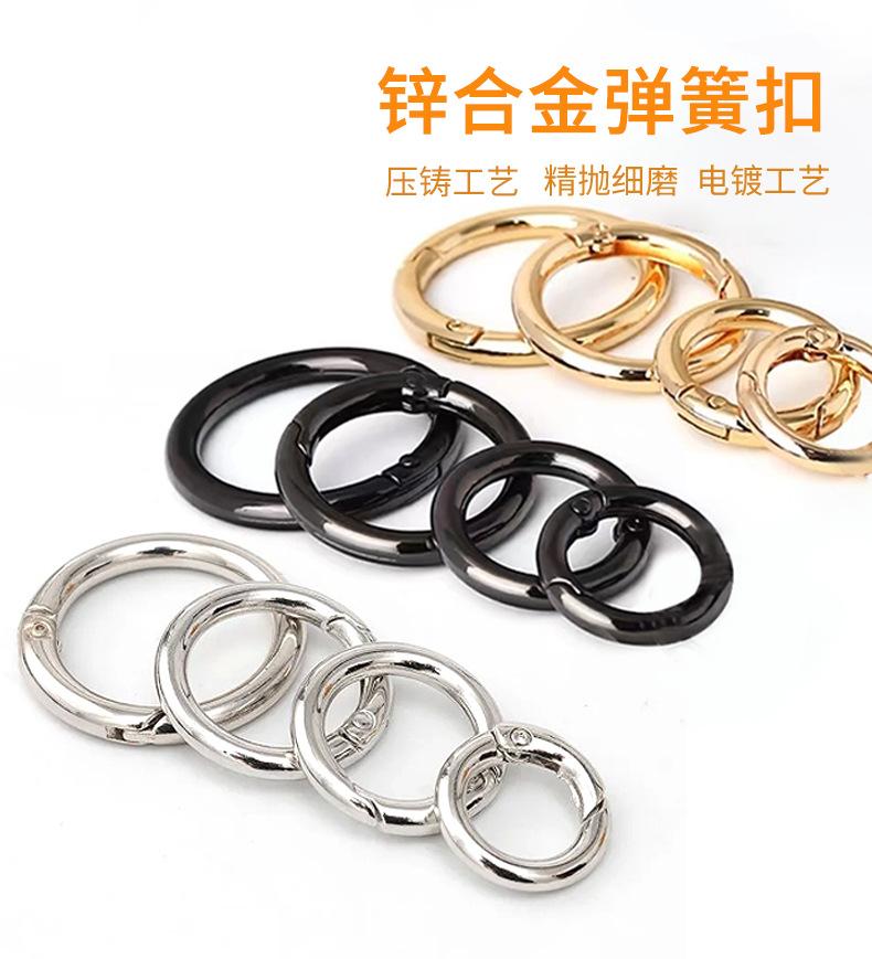 Hebilla de metal para equipaje, anillo de resorte, anillo abierto, llavero con hebilla de metal, venta al por mayor, disponible en stock