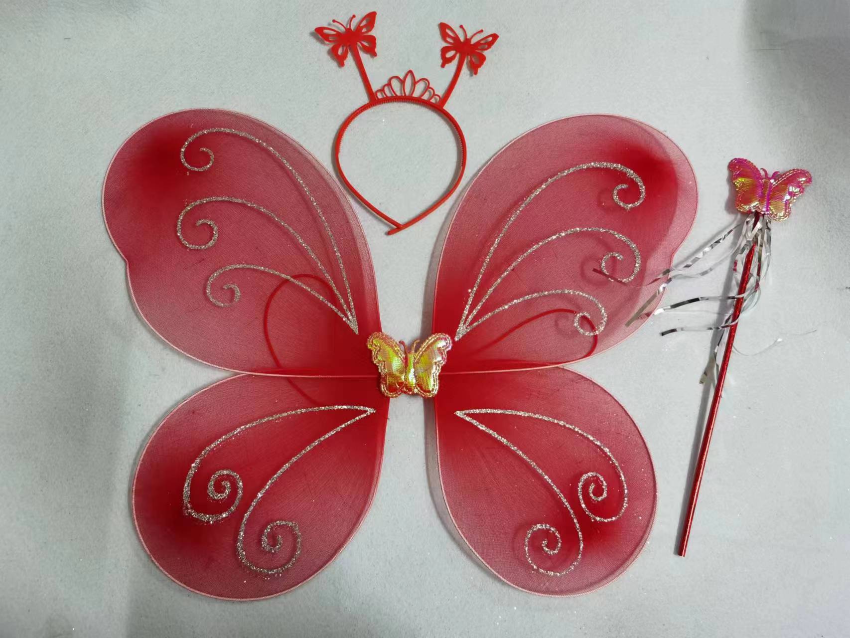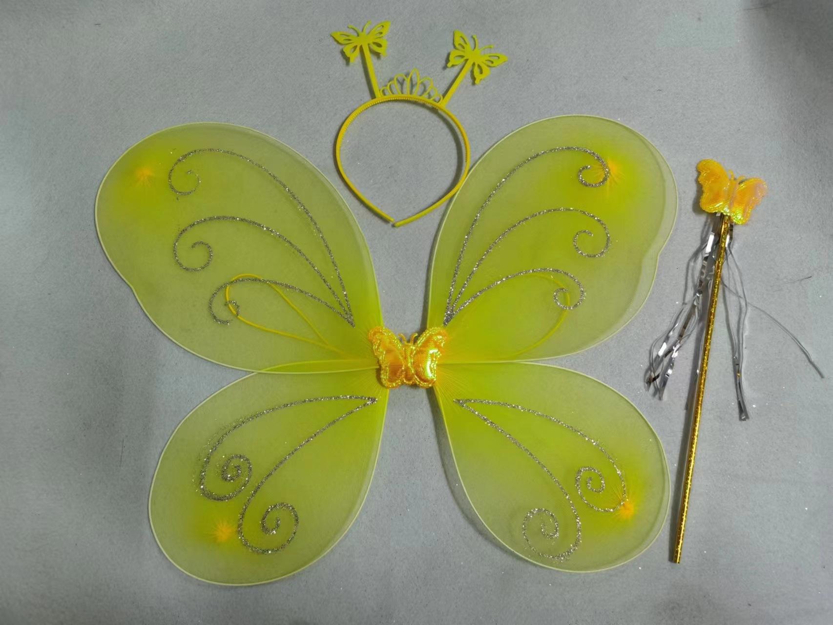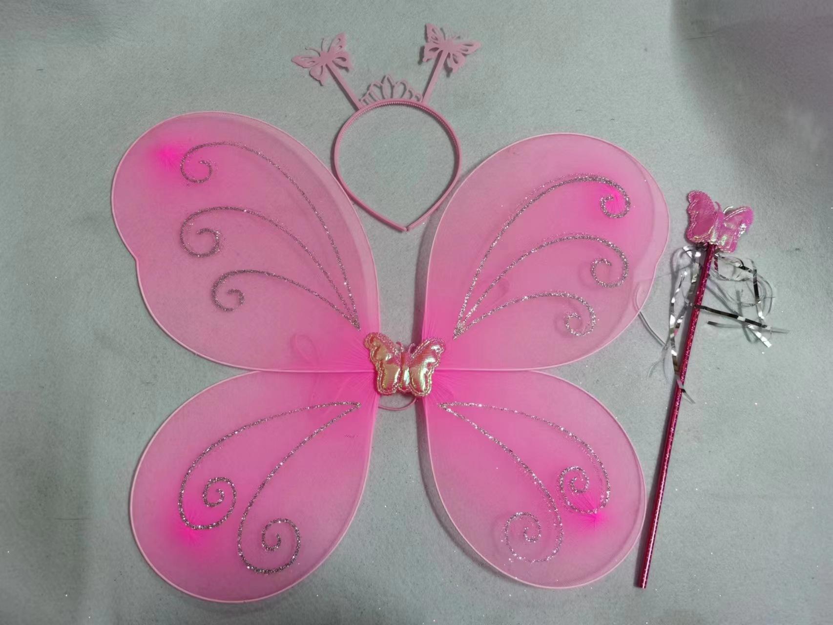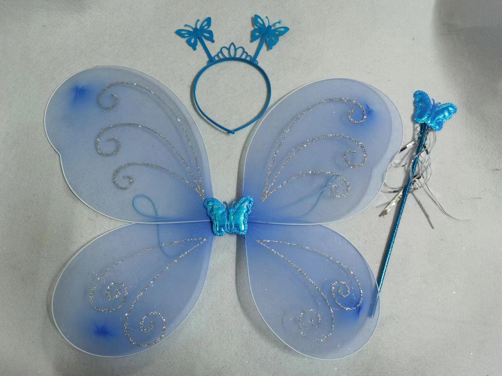 Nuevo disfraz de alas para niños, accesorios de actuación, alas de mariposa, tocado mágico, conjunto de tres piezas en stock