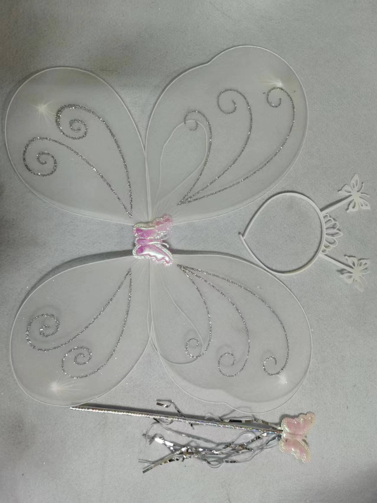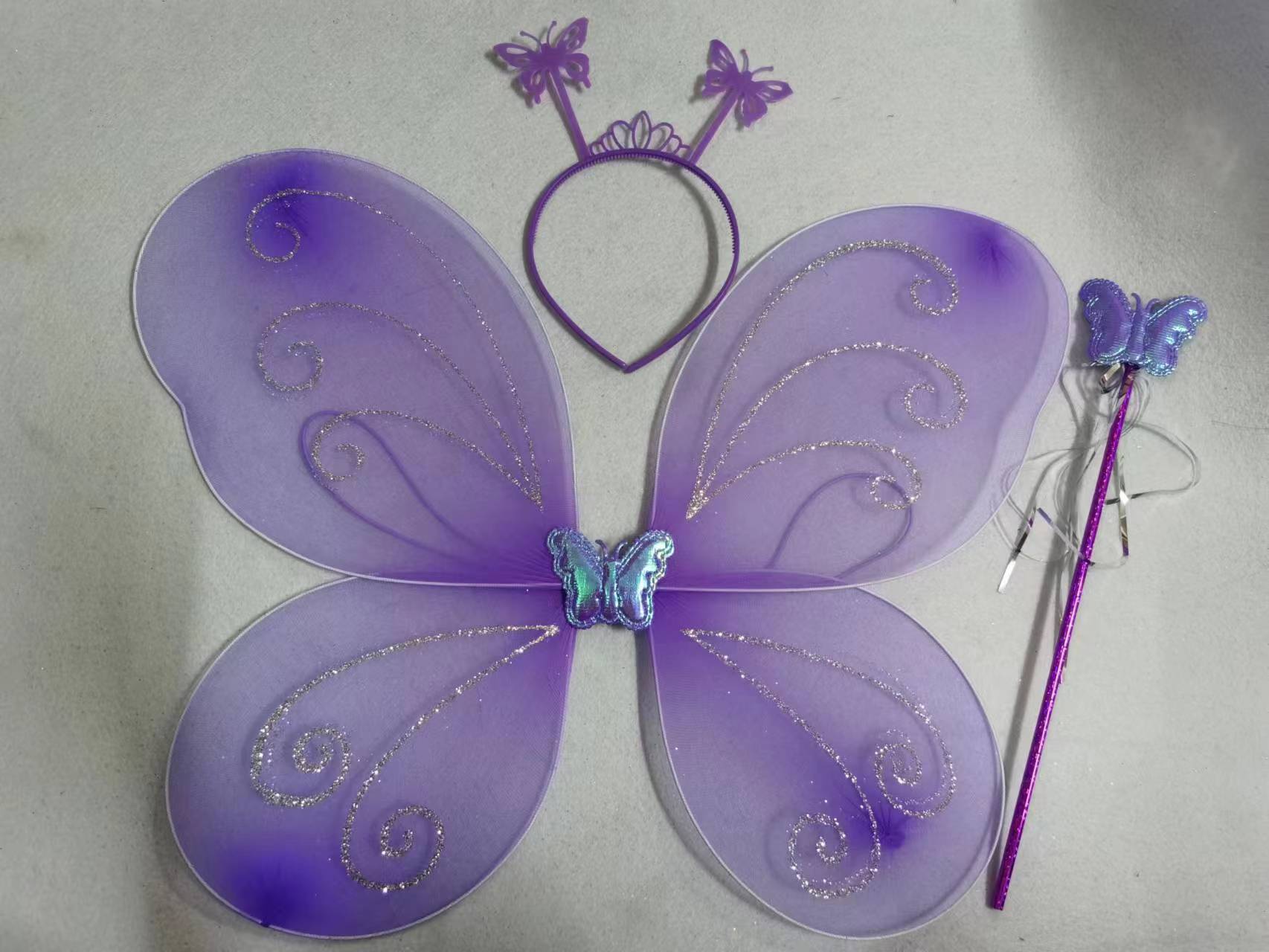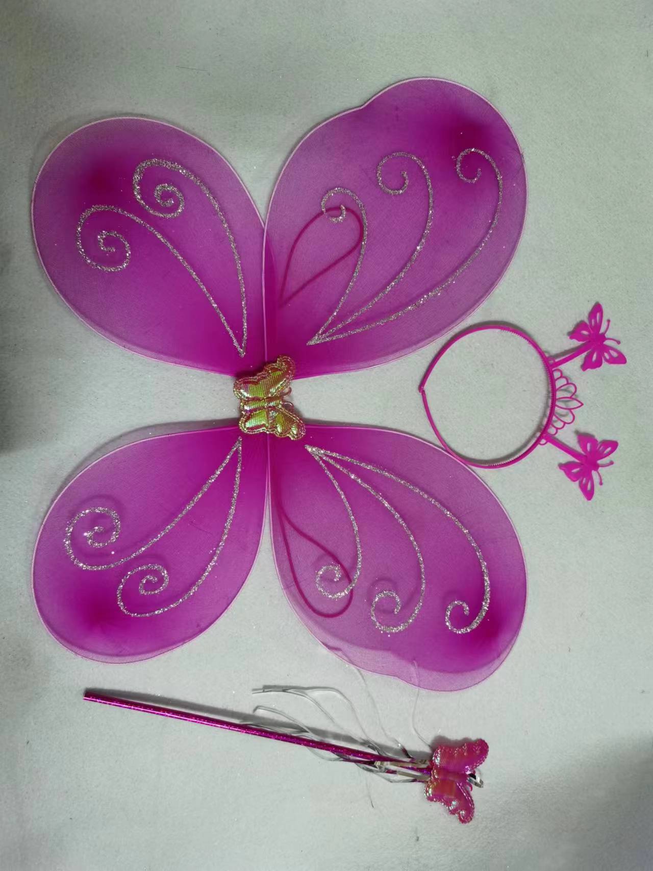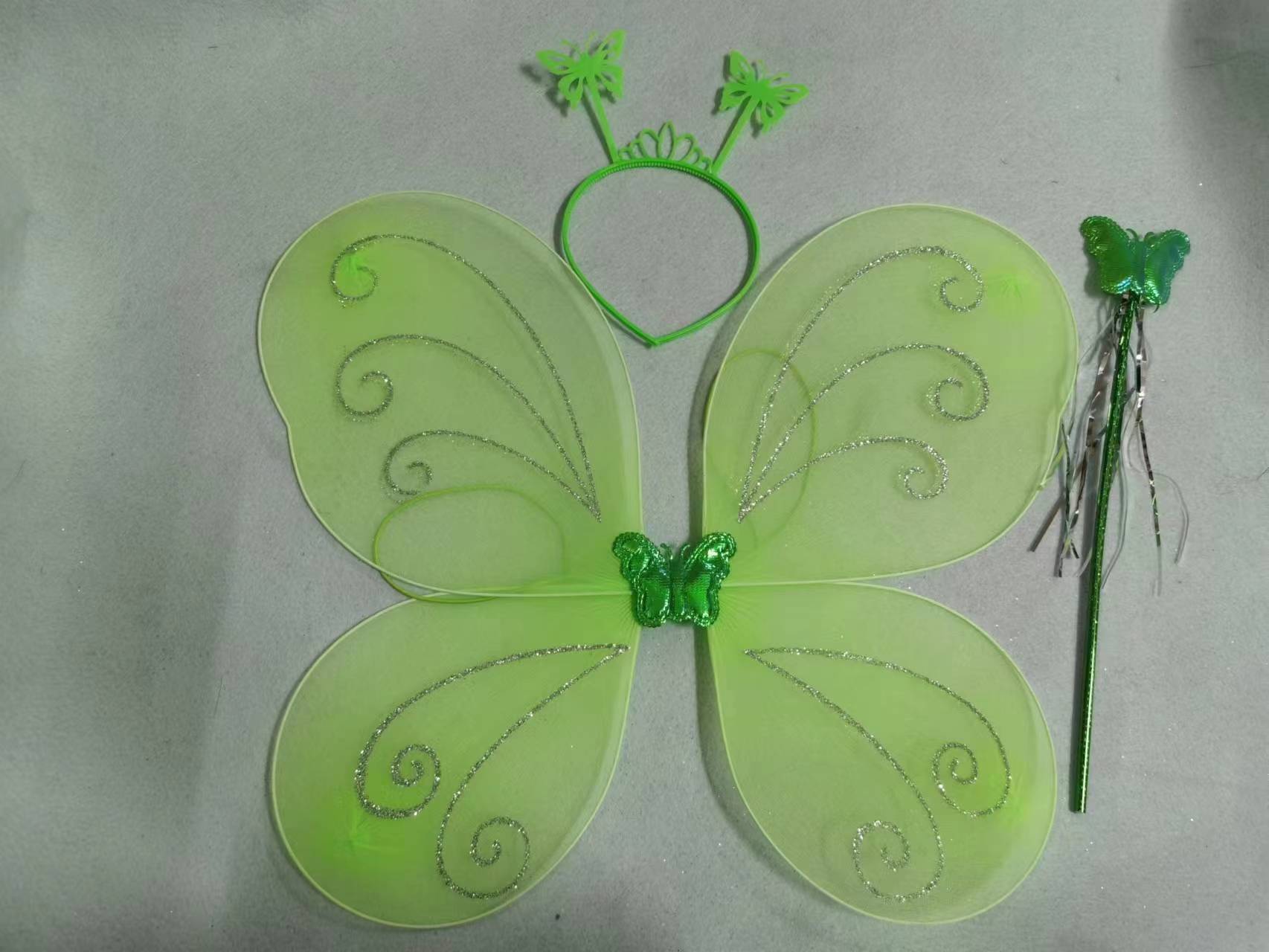 Nuevo disfraz de alas para niños, accesorios de actuación, alas de mariposa, tocado mágico, conjunto de tres piezas en stock