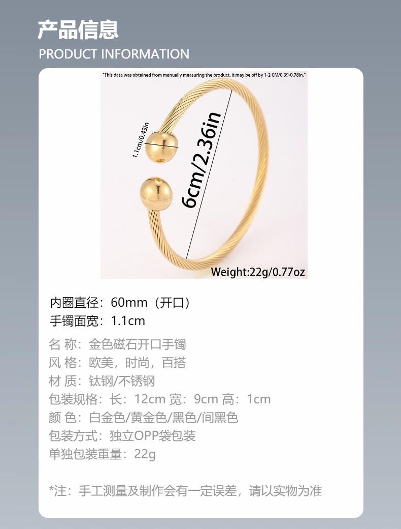 Gold magnet open bracelet, Silver magnet open bracelet, Black magnet open bracelet, Silver head black magnet open bracelet