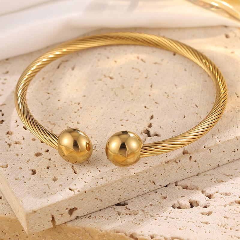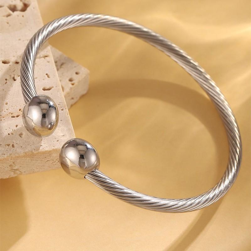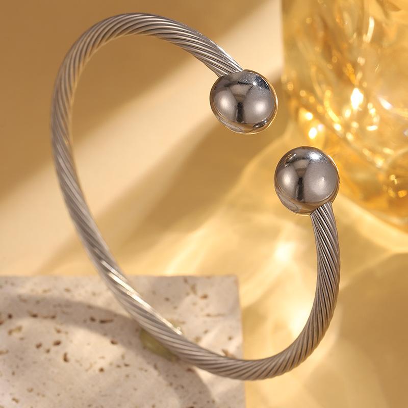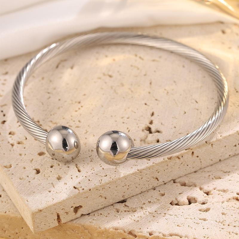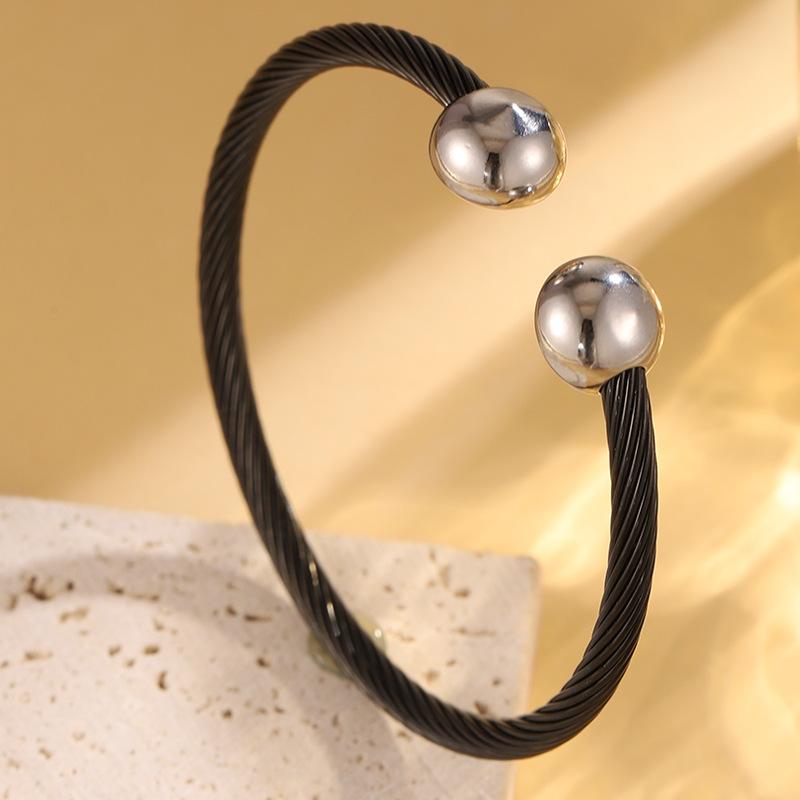 Pulsera de Acero de Titanio, Cabeza de Cuentas Redondas Abiertas Personalizada, Cierre Magnético Giratorio, Diseño Simple, Joyería de Pulsera para Parejas que no se Desvanece