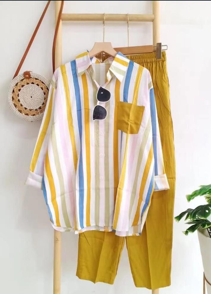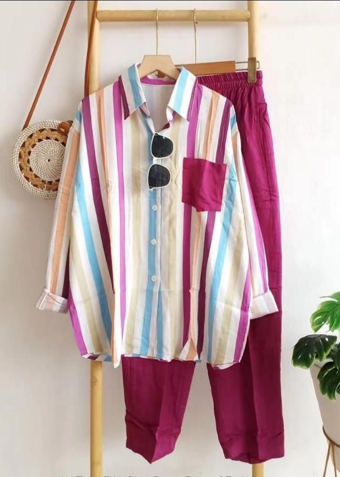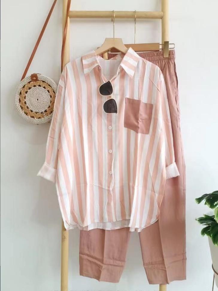 Traje de mujer, novedad de verano 2024, moderno, holgado, adelgazante, cómodo, informal, a rayas, conjunto de dos piezas