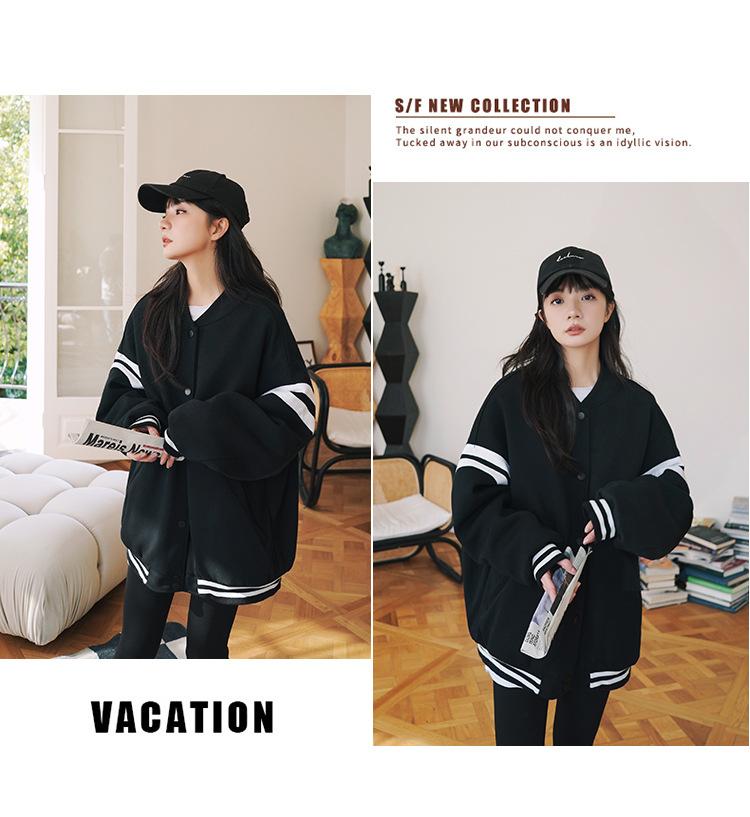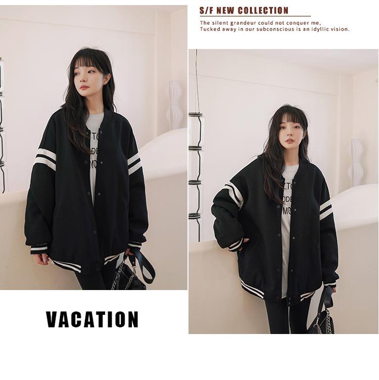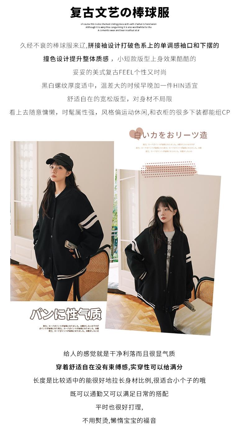 [380g Engrosado] Abrigo de Béisbol para Mujer Primavera y Otoño Nuevo Retro Caliente Chaqueta Urbana Top Casual