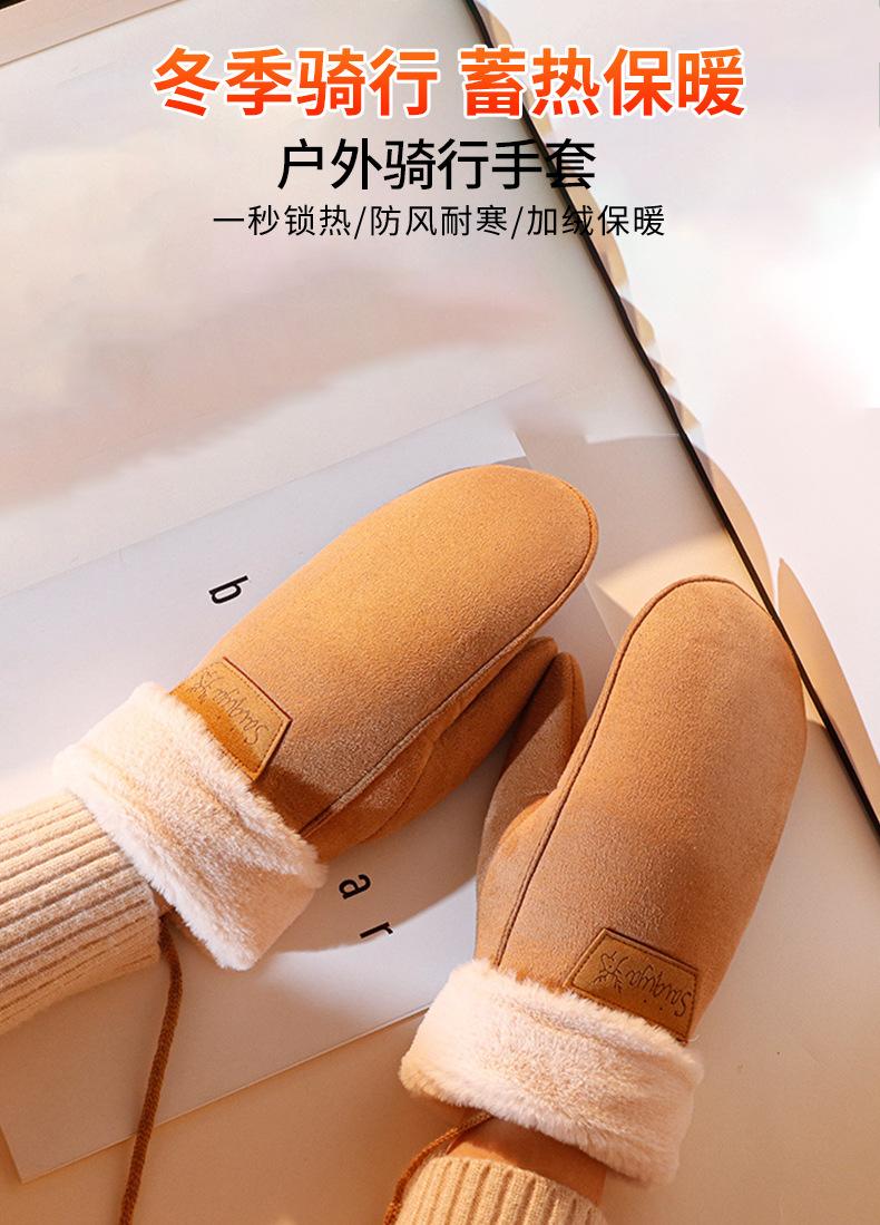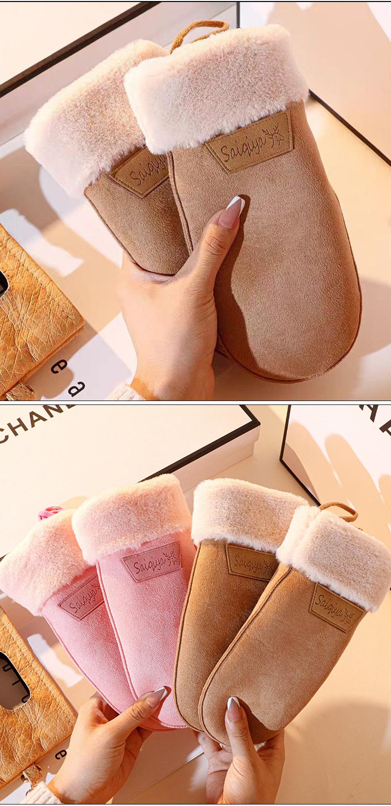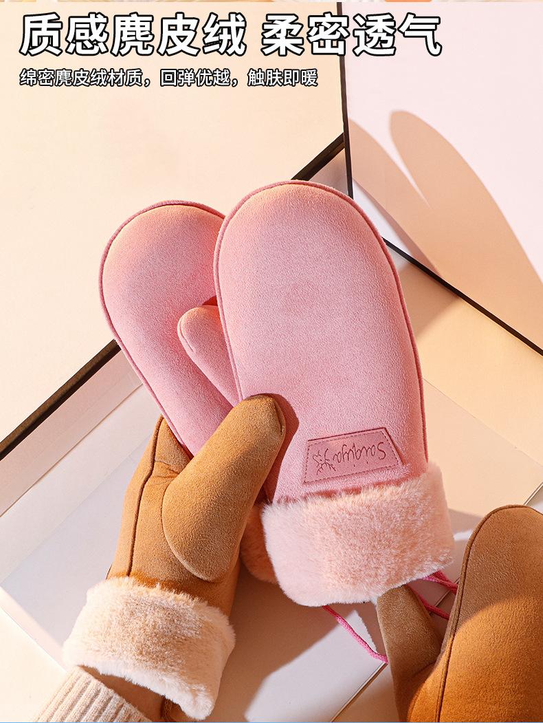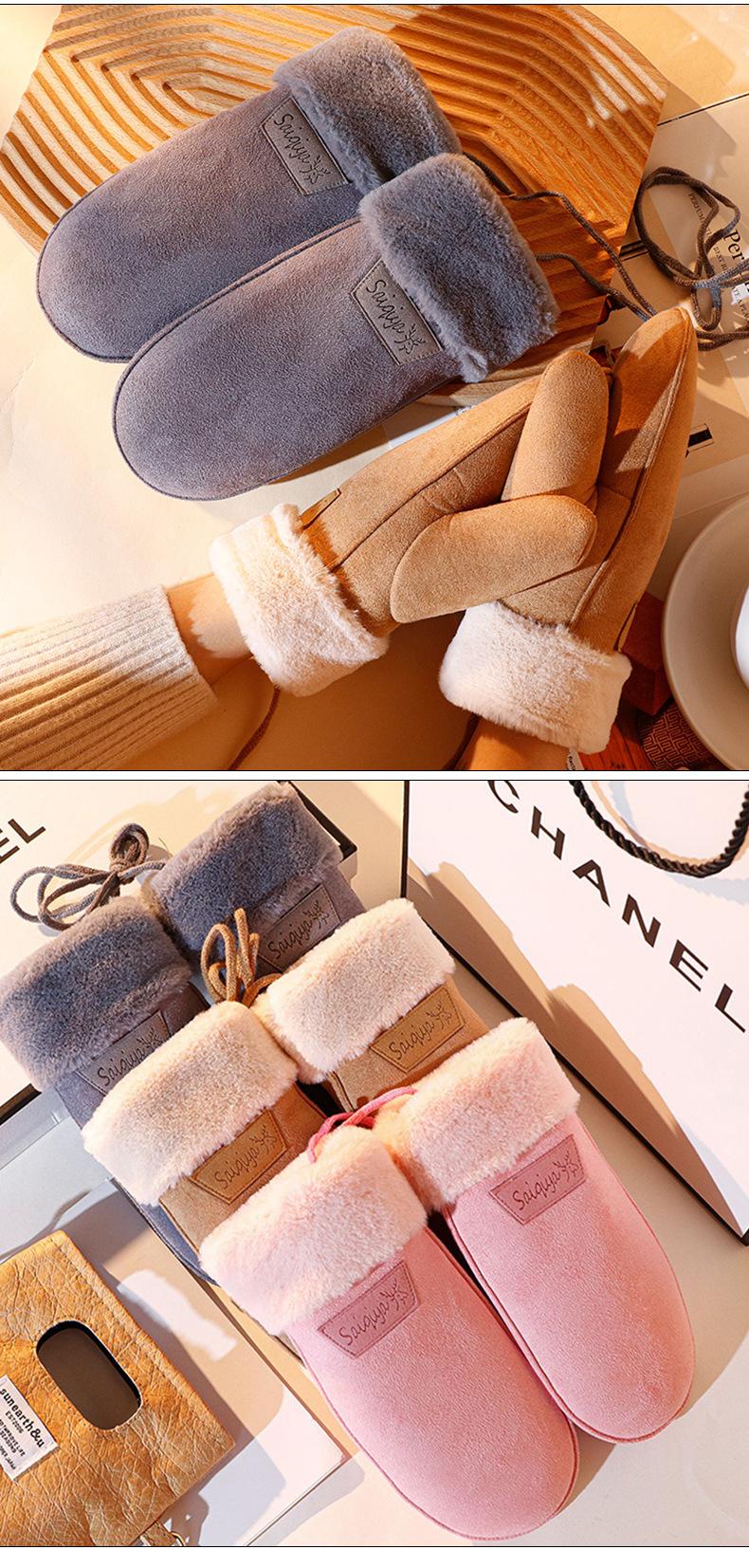 Guantes de gamuza cálidos al por mayor para deportes de invierno al aire libre, guantes resistentes al frío, de color sólido, para mujer.