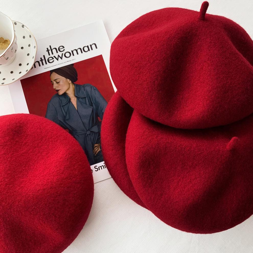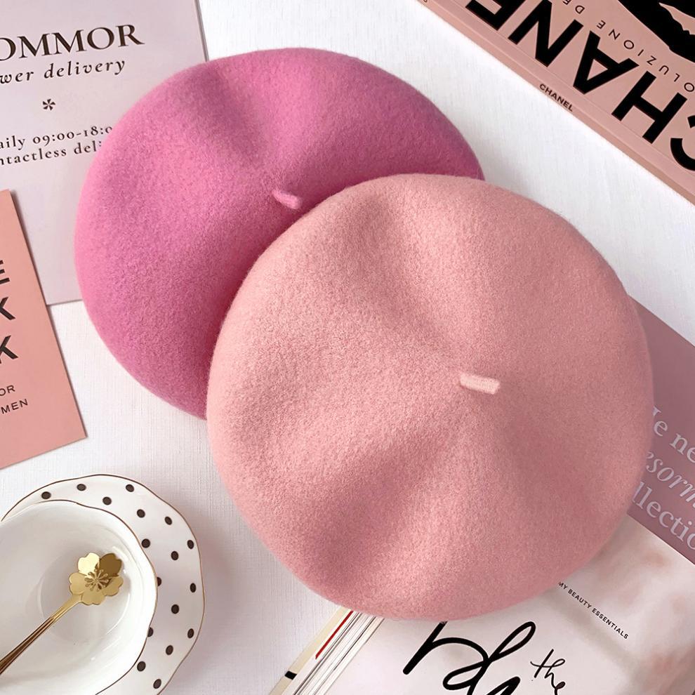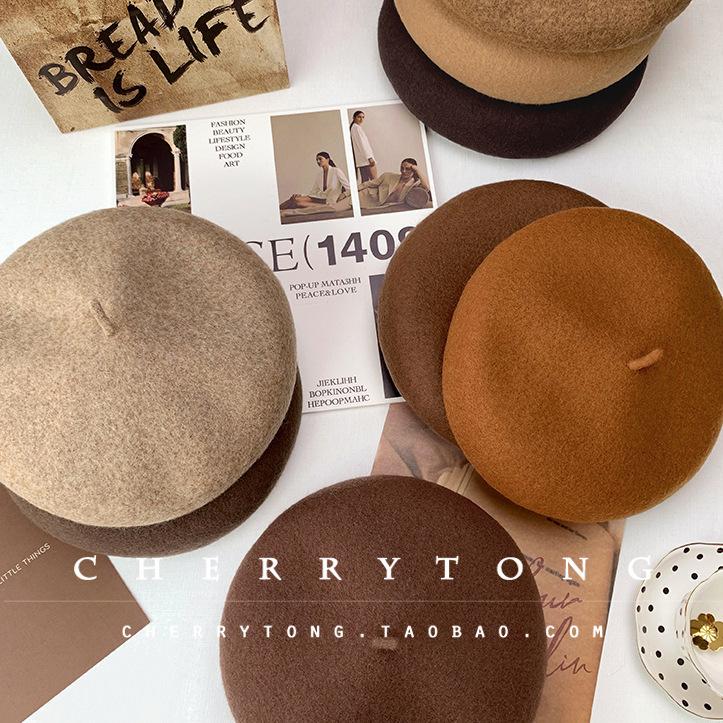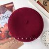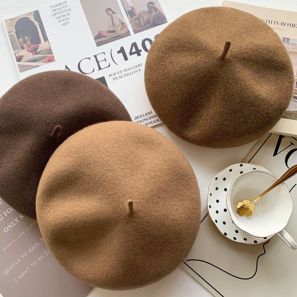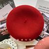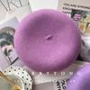 Boina de cachemira de otoño e invierno de color sólido de lana de invierno retro cálida sombrero de pintor boina de lana para niños