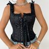 Nuevo corsé de tubo negro transfronterizo con tirantes para el hombro, hermosa ropa moldeadora de espalda, top de corsé sexy fruncido en el pecho de palacio, venta al por mayor