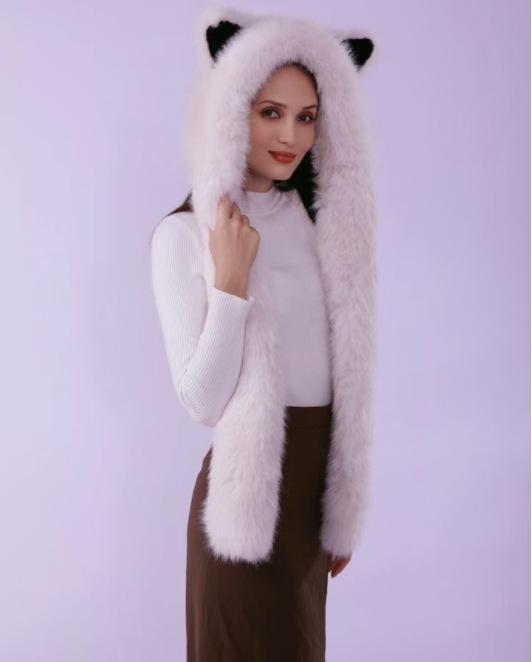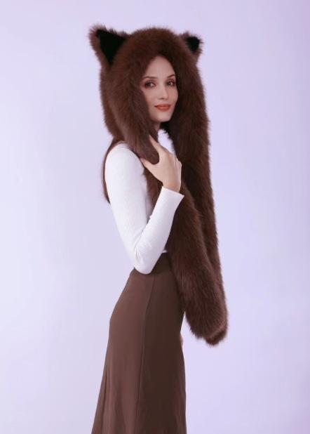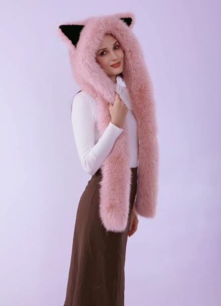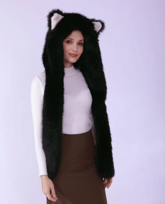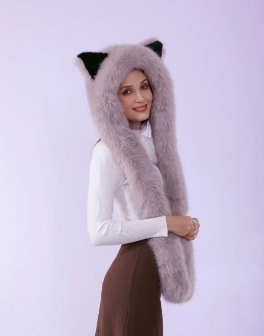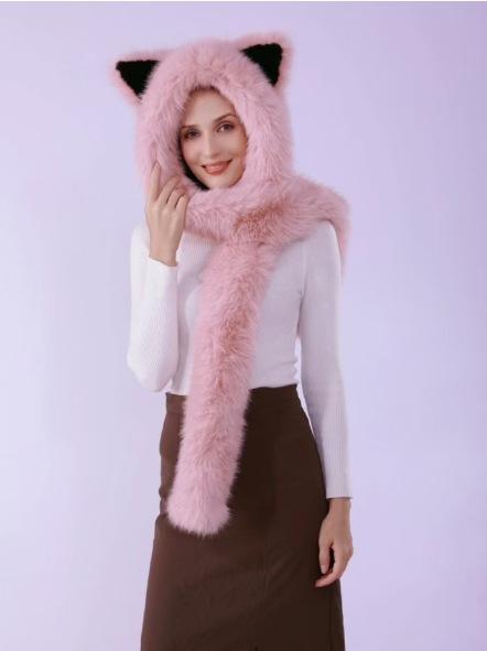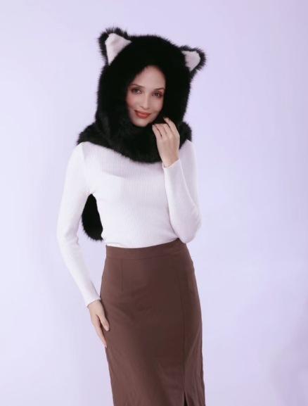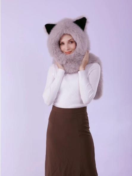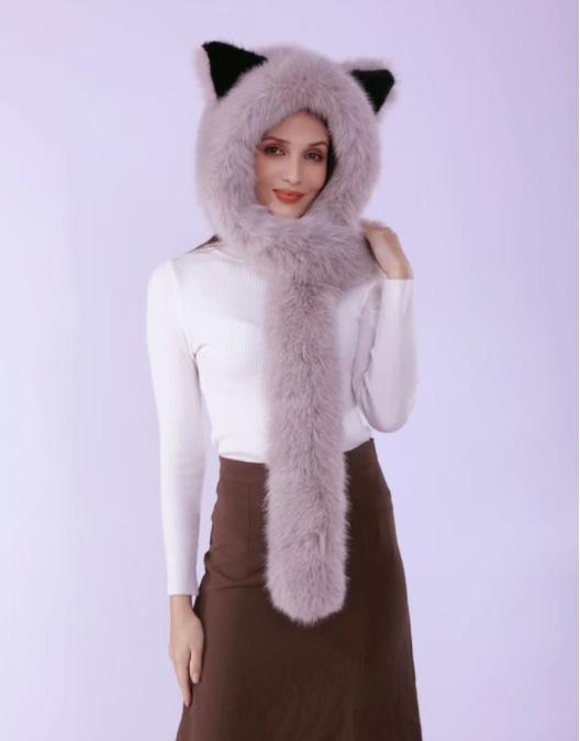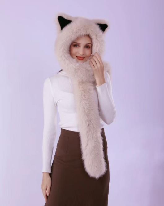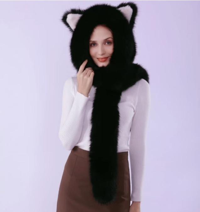 Hy fox ears hat and scarf integrated-black, Hy fox ears hat and scarf integrated-brown, Hy fox ears hat and sc...
