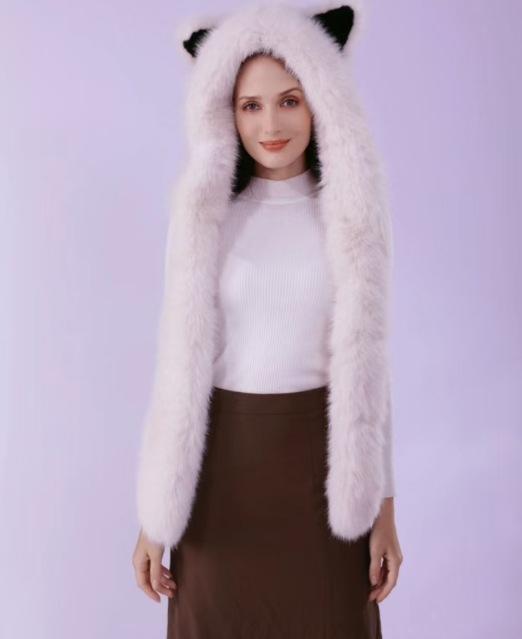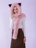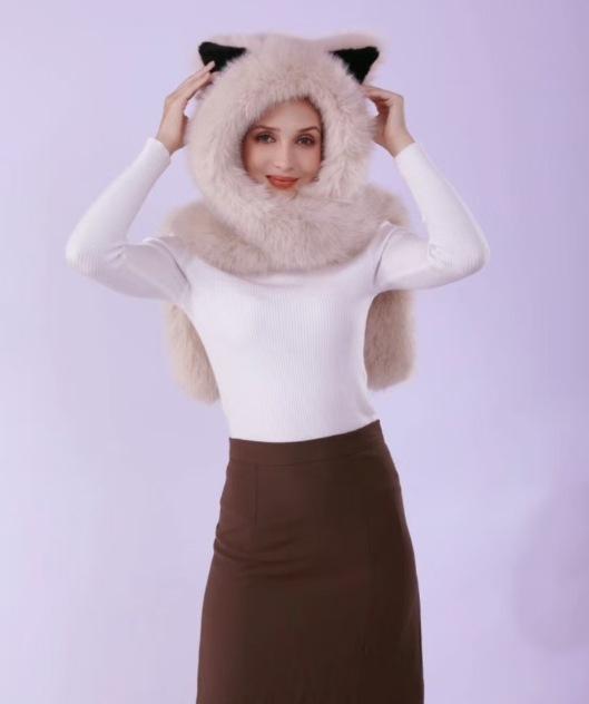 Sombrero Invierno Nuevo Bufanda de Piel Sintética de Zorro de una Pieza con Capucha para Mujer a Prueba de Frío Grueso Cálido Gorro con Protección para las Orejas